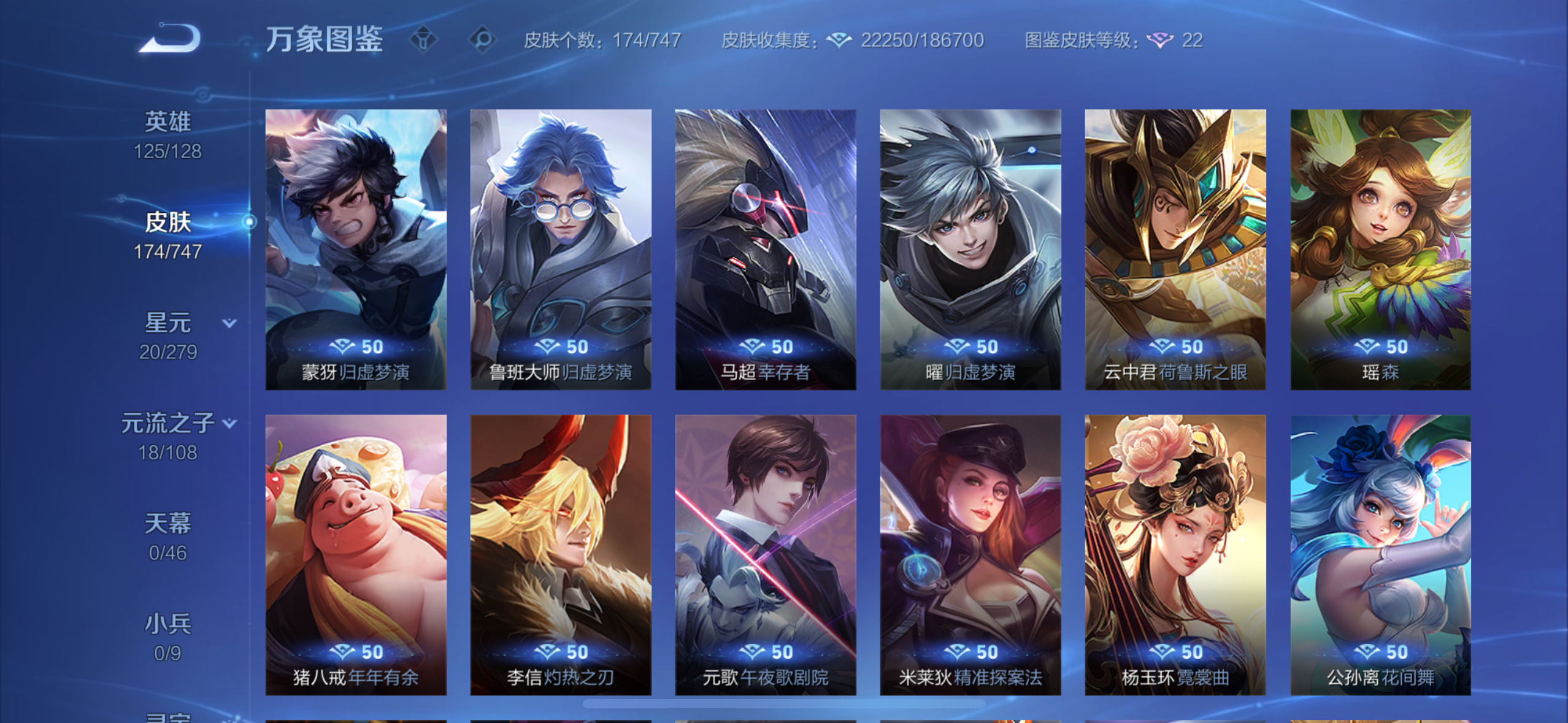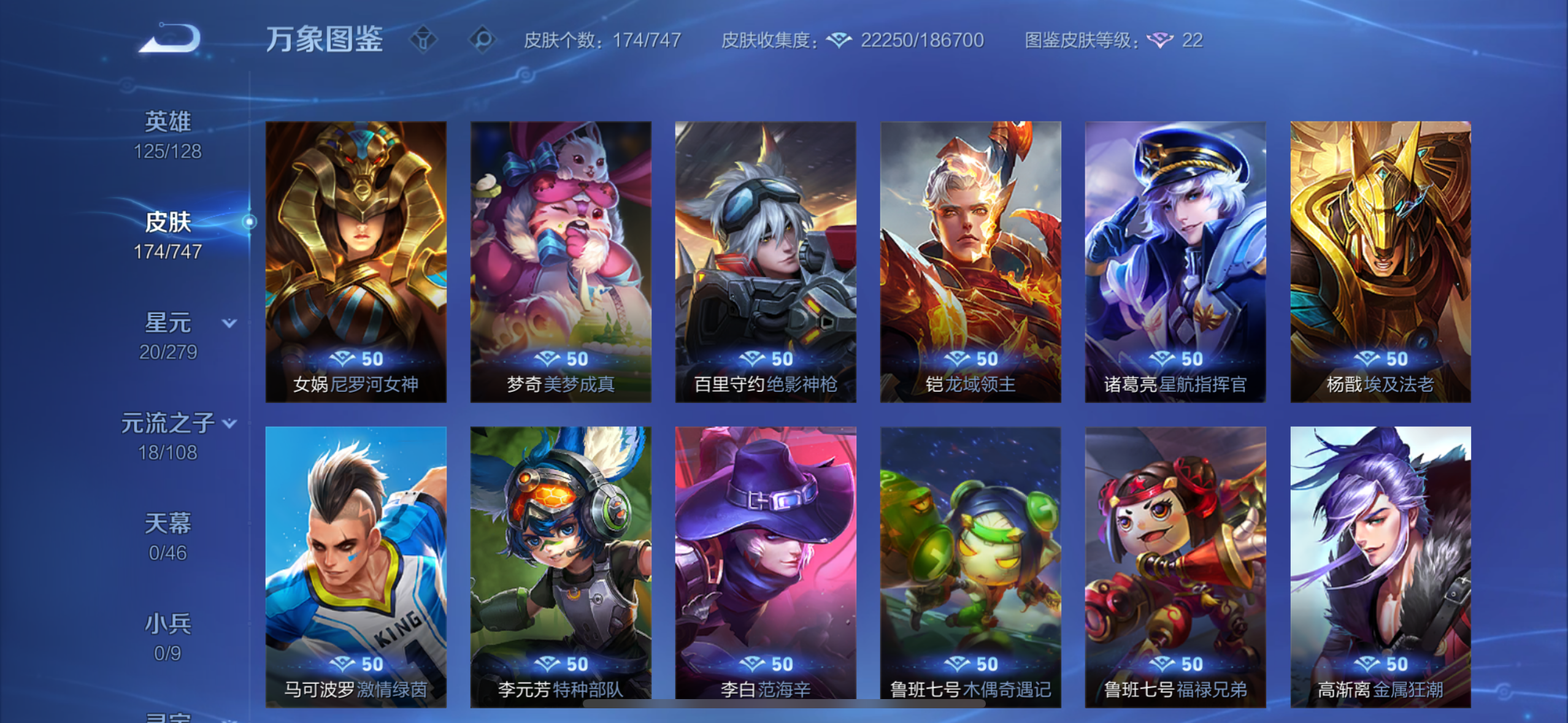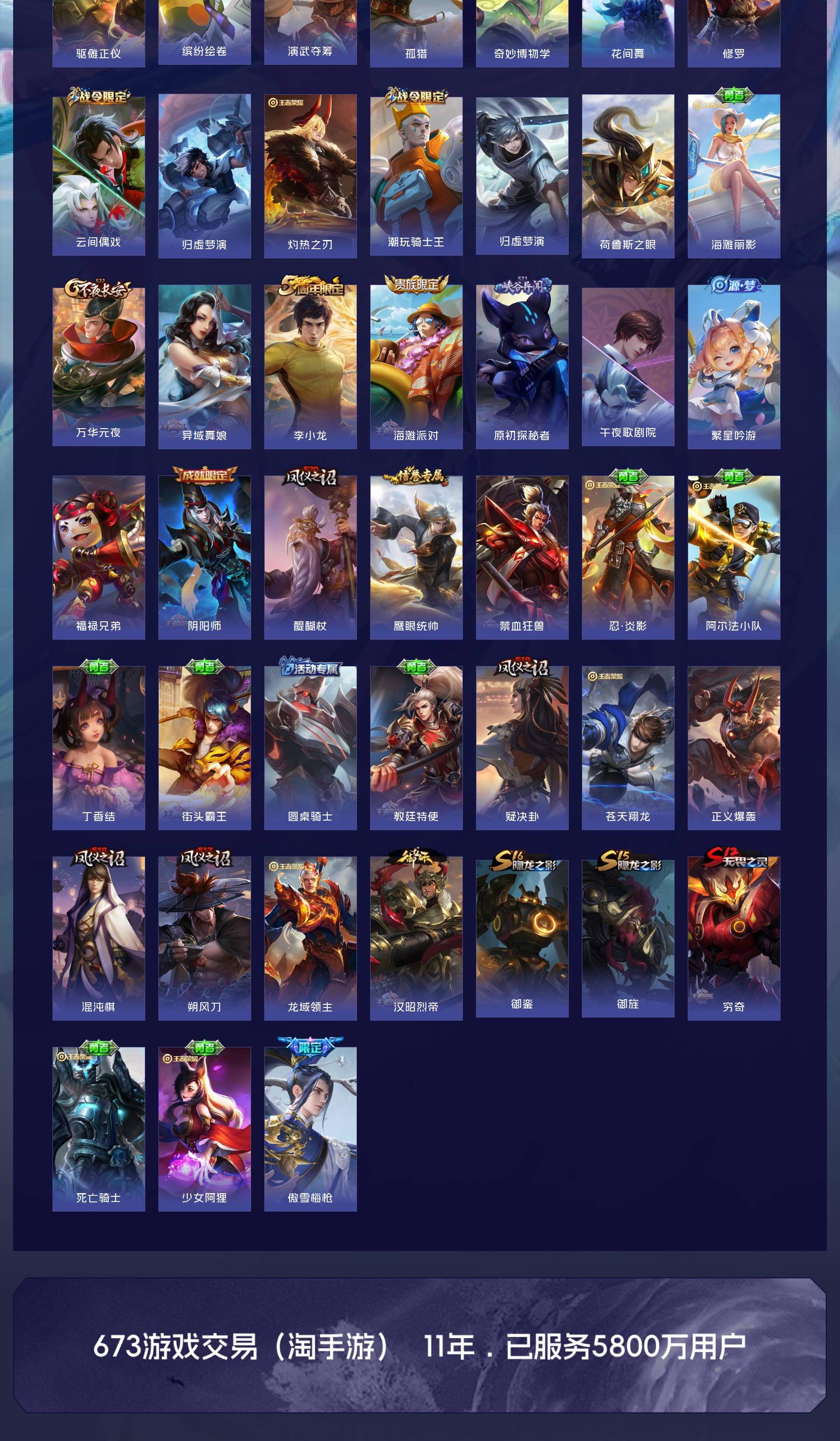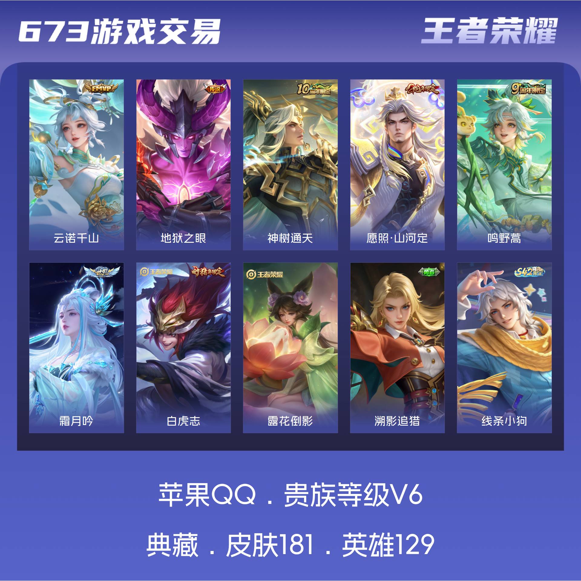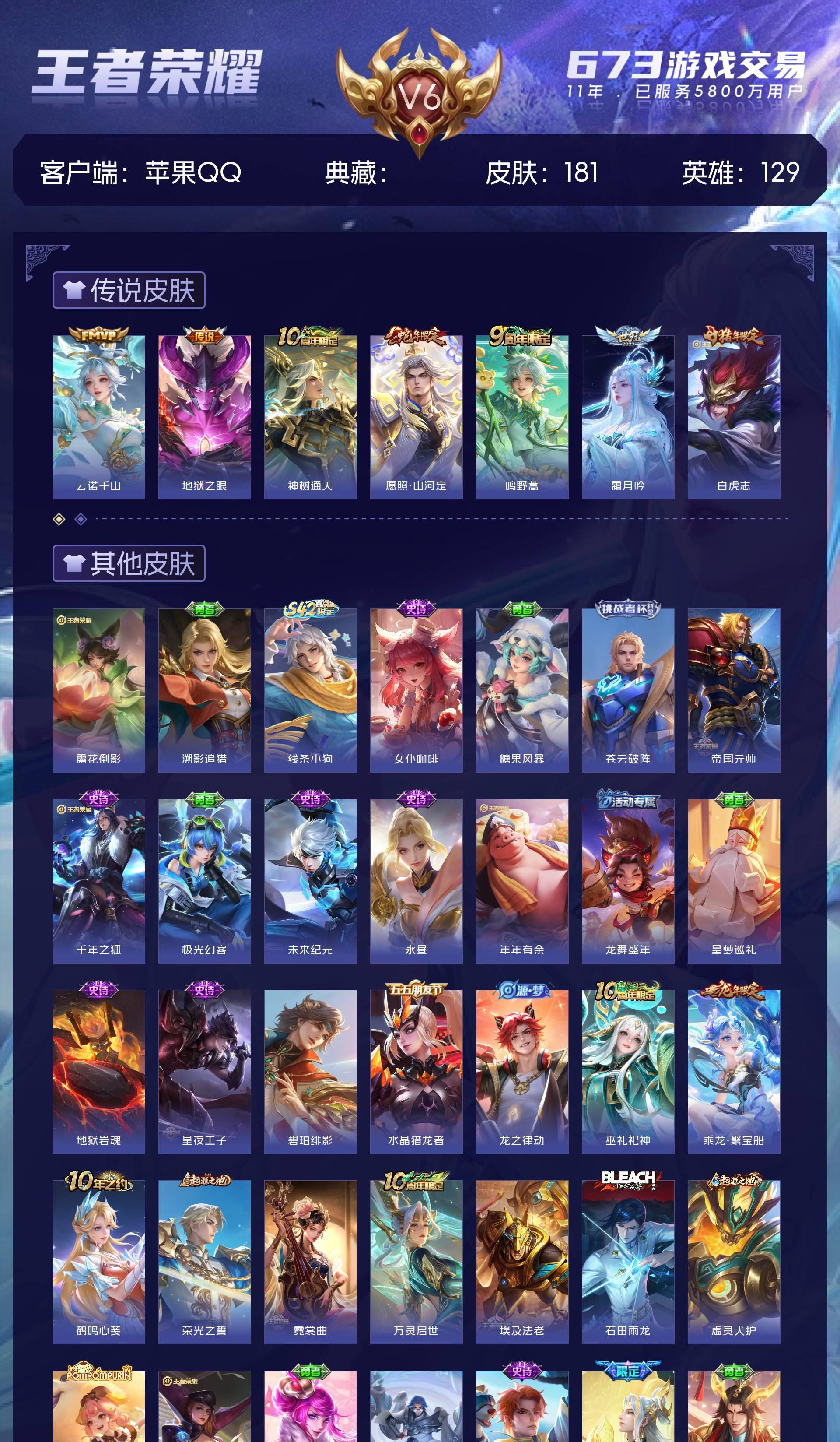 V6 皮肤181 英雄129 无双王者 传说7 其他皮肤178