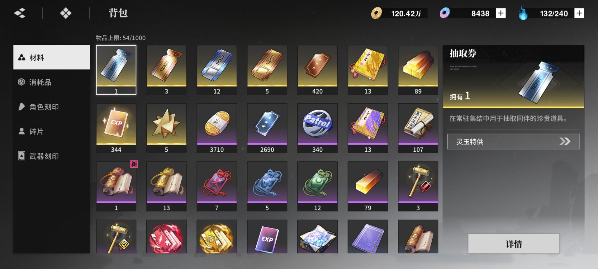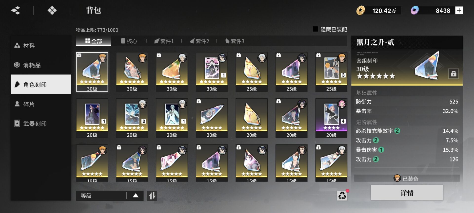 全限定角色除了银是0+1 其他都是1+1,加上付费玉有9千多材料多,完完整整的3个队