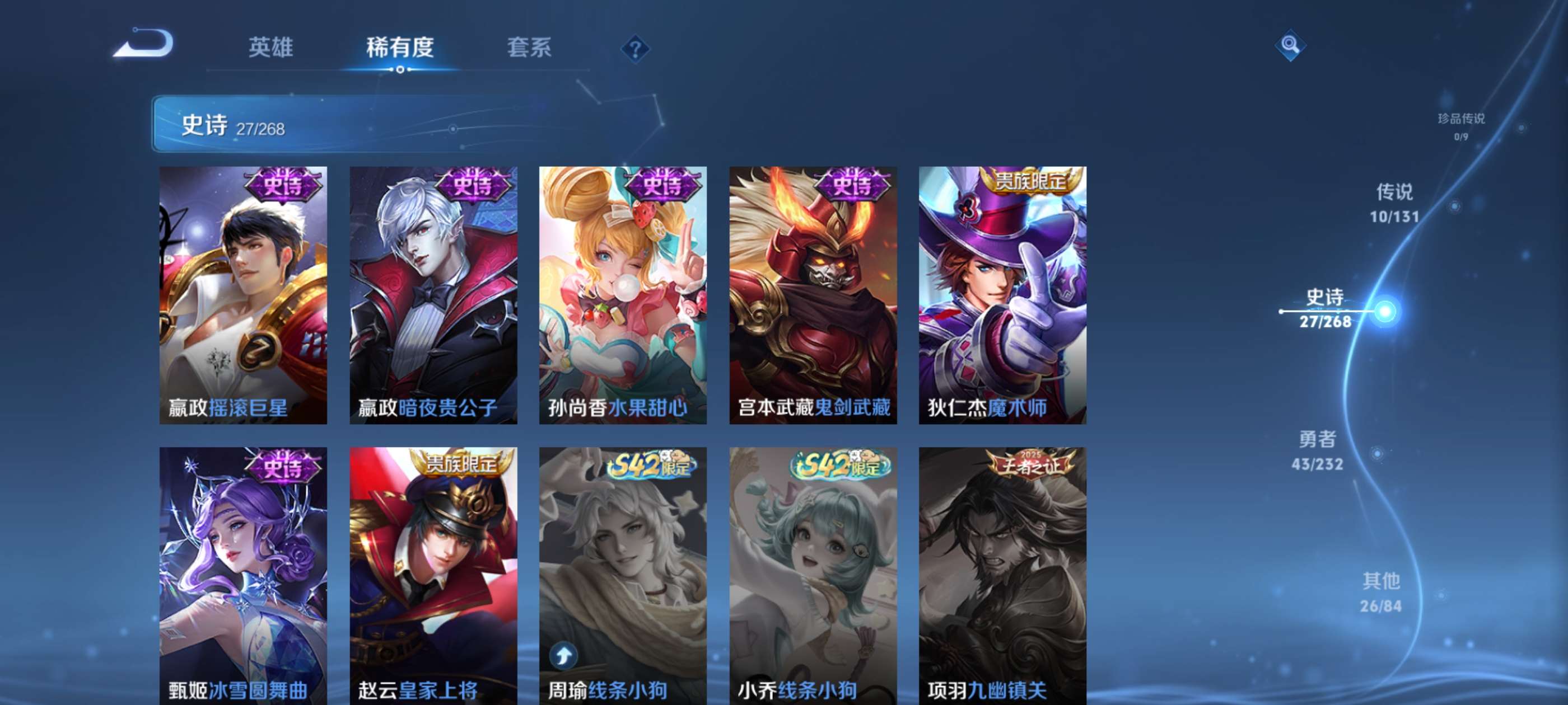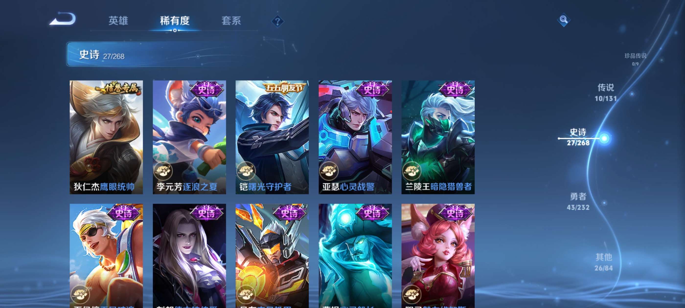 V7 皮肤106 英雄129 尊贵铂金 传说10 其他皮肤101