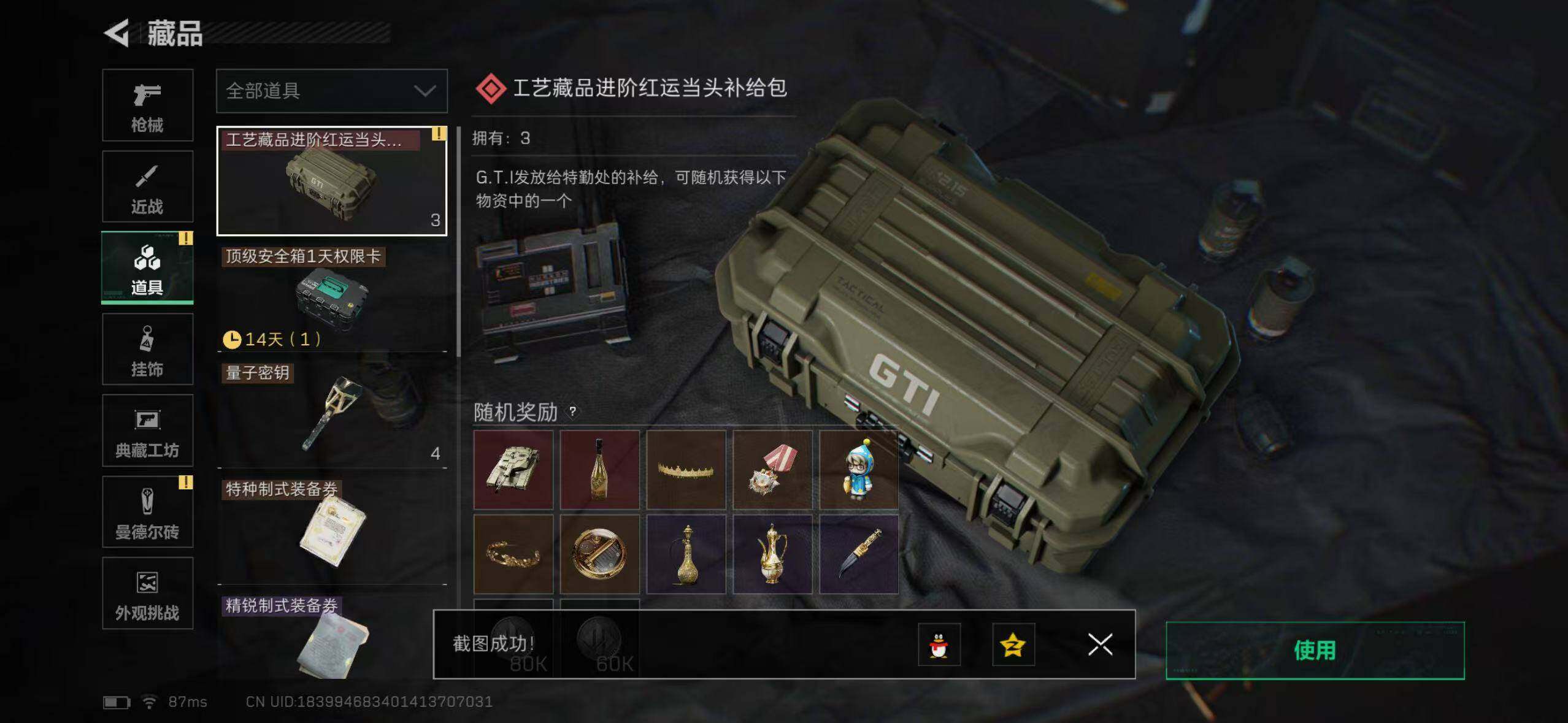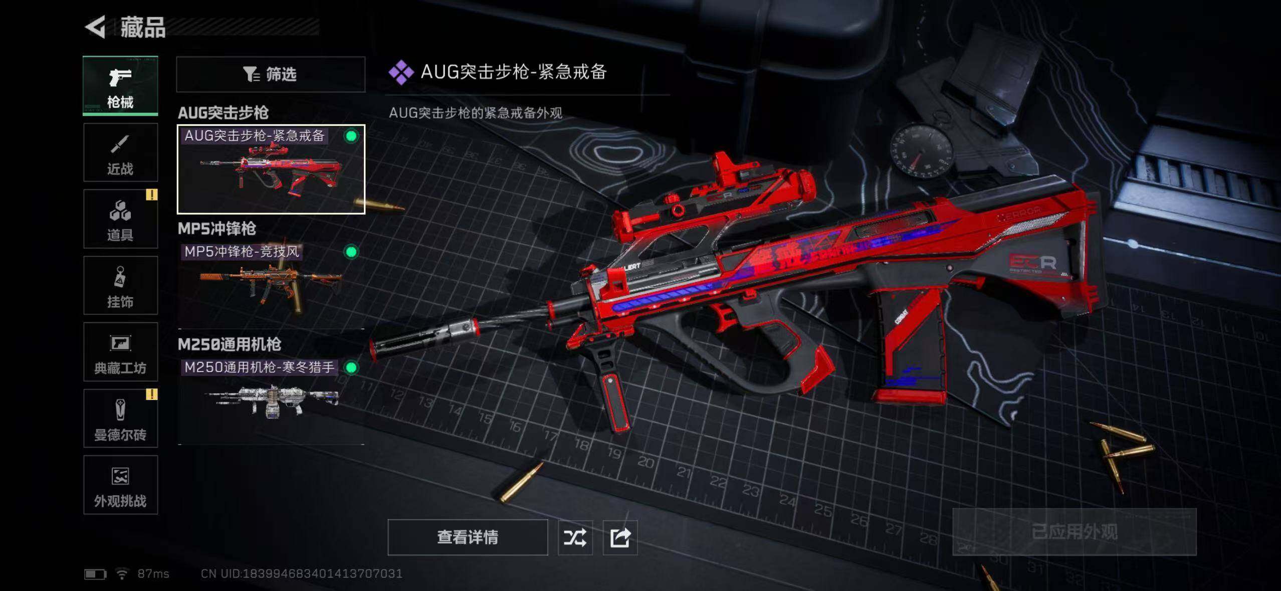 【稀有外观】:AKM突击步枪-肃杀,M7战斗步枪-捣蛋鬼,腾龙突击步枪-冰天雪地,MP5冲锋枪-弄臣,UZI冲锋枪-亚特兰蒂斯,SMG-45-行动开启,SV-98狙击步枪-星链科技,SV-98狙击步枪-哈夫克航天,SV-98狙击步枪-精英联盟,G18-星链科技,G18-哈夫克航天