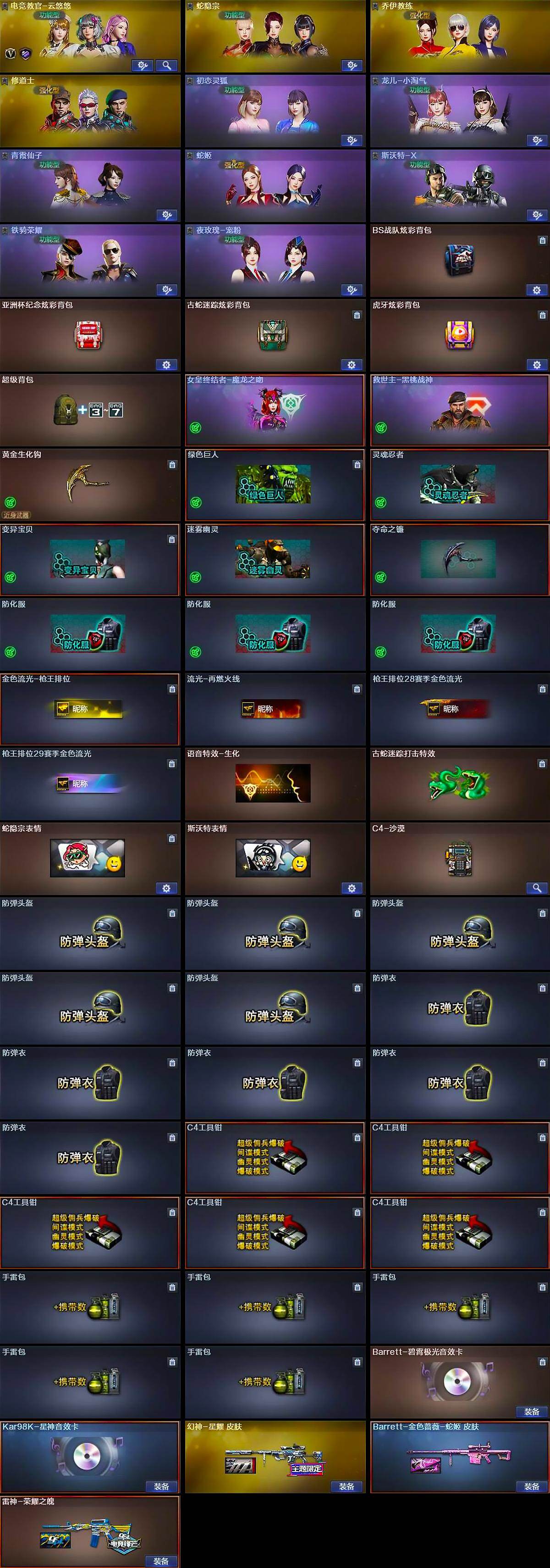【热门武器】:G36C-幻影,M200-幻神,金色蔷薇-古蛇迷踪,修罗-古蛇迷踪,M200-竞技荣光,Kar98K-星神,C.A.T,裁决-雪莉杨,炽芒蝶刃