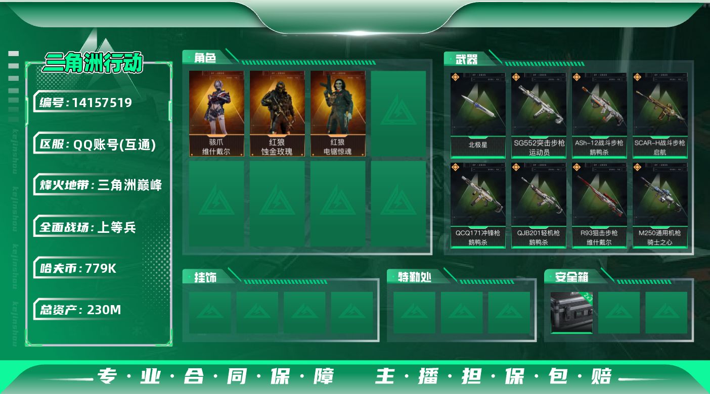 总资产(M):380M/哈夫币(K):35458K/哈夫币(K):35458K/传说枪皮数:29/全