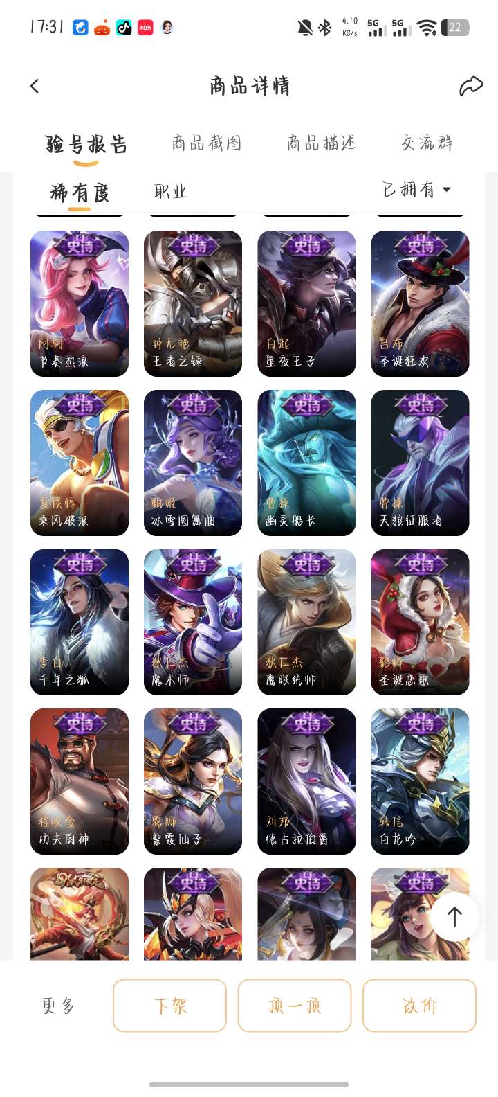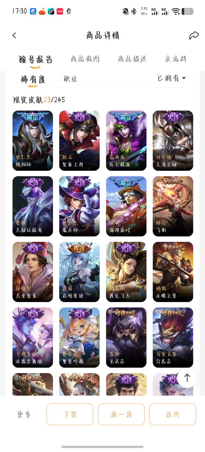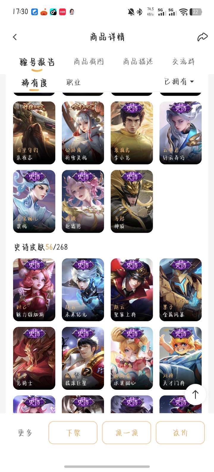 贵八小乔天鹅之梦典藏,老虎梅西,还有很多绝版限定皮肤便宜出,诚信交易可放心,屠龙刀滚远点