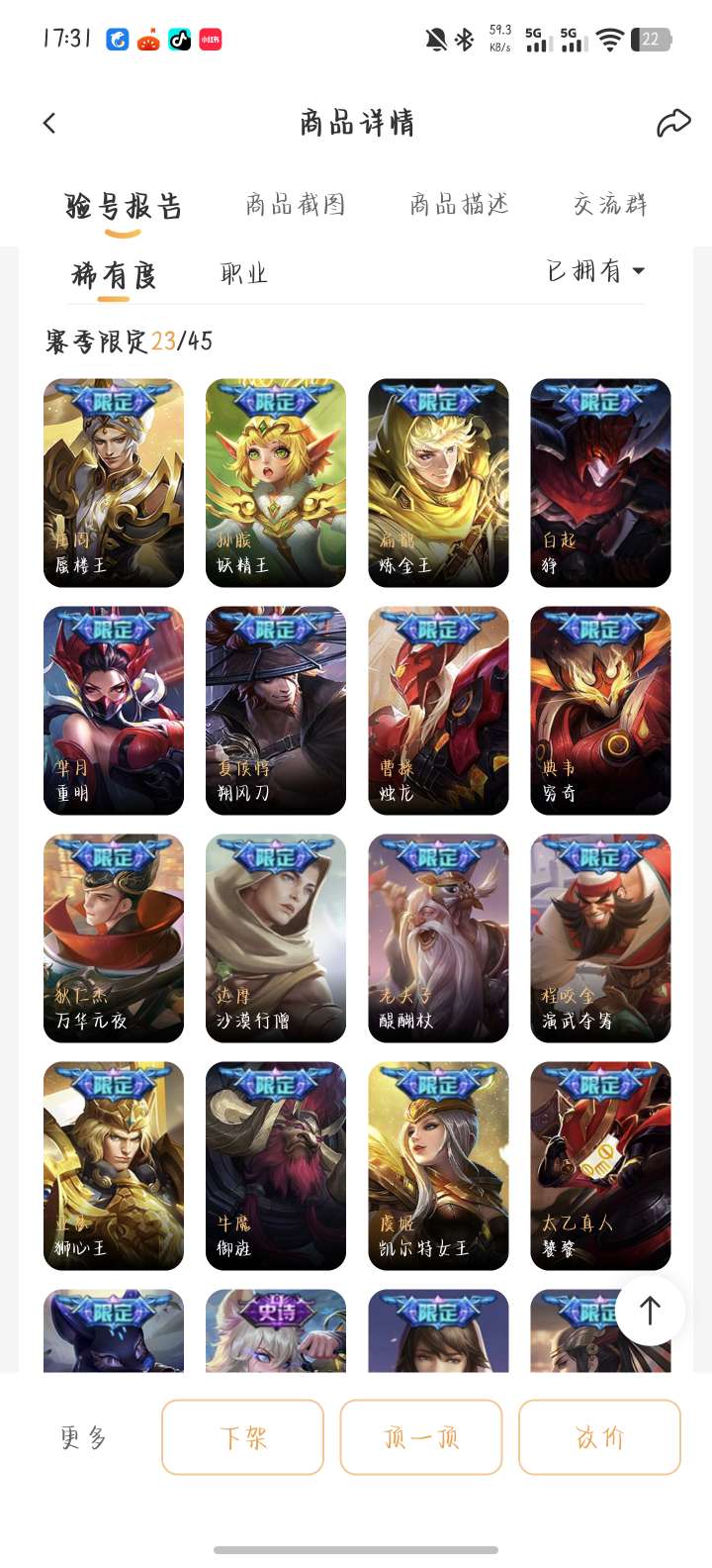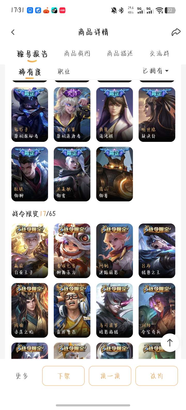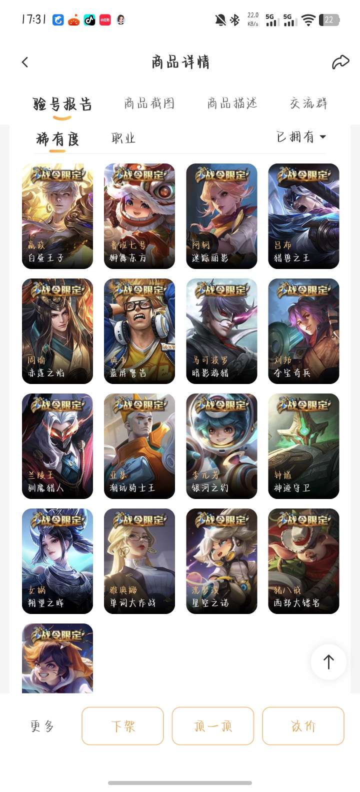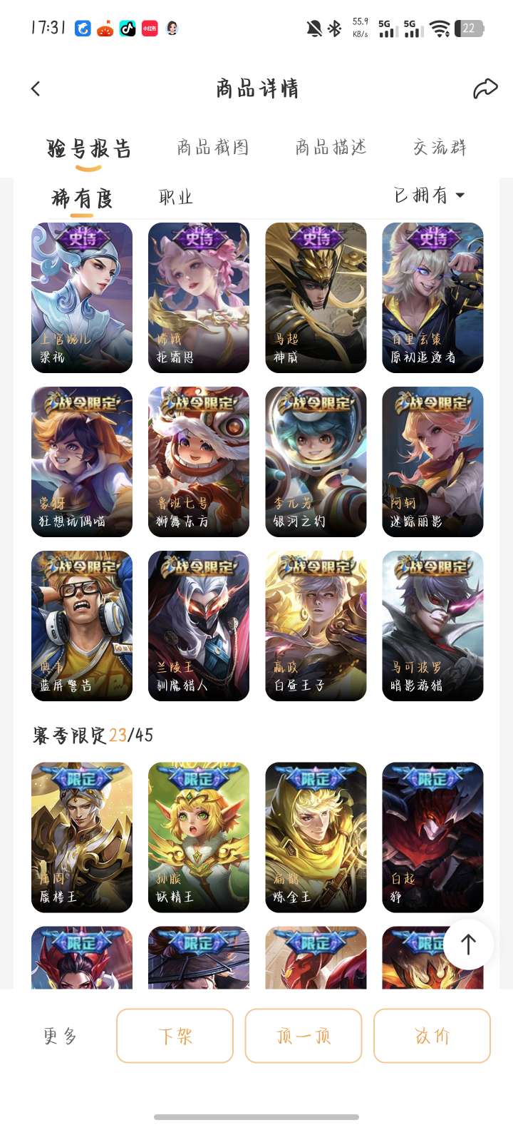 贵八小乔天鹅之梦典藏,老虎梅西,还有很多绝版限定皮肤便宜出,诚信交易可放心,屠龙刀滚远点