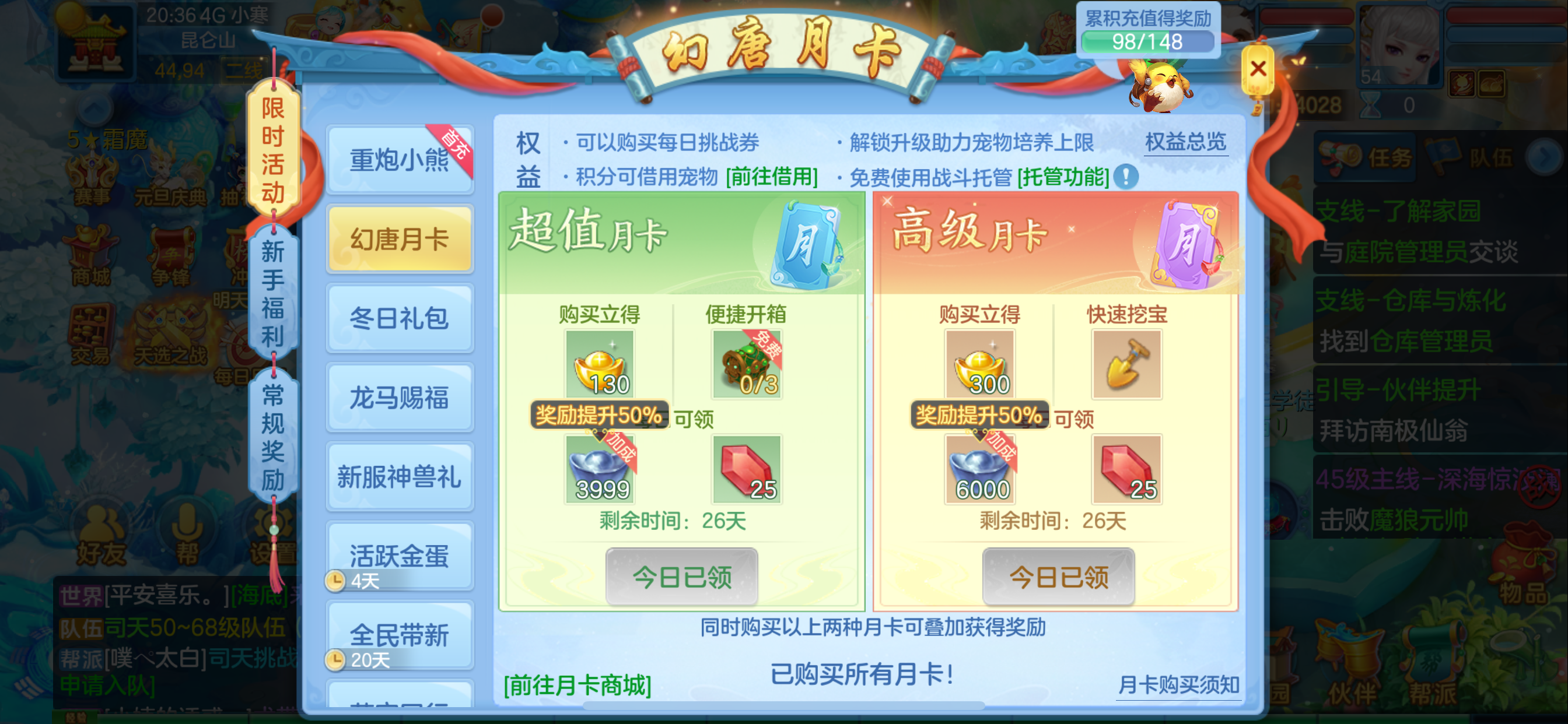 合体账号兽神珍兽月卡 130龙宫超有性价比带时装 129医生特技齐全通刷上号就能玩不用再投资
