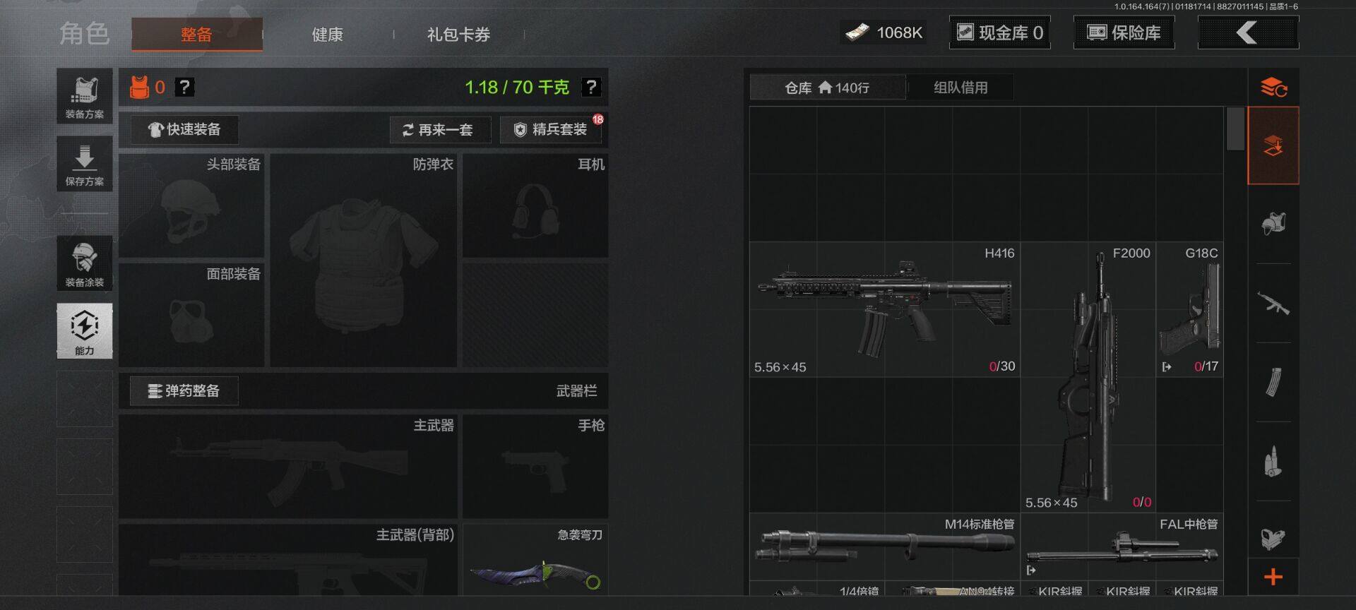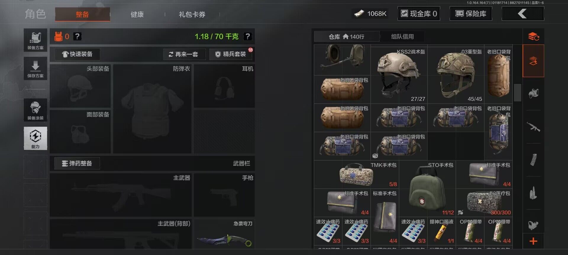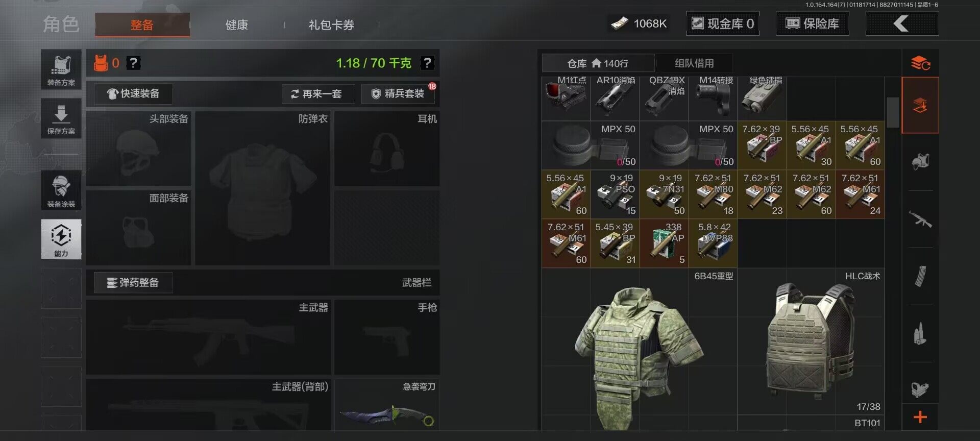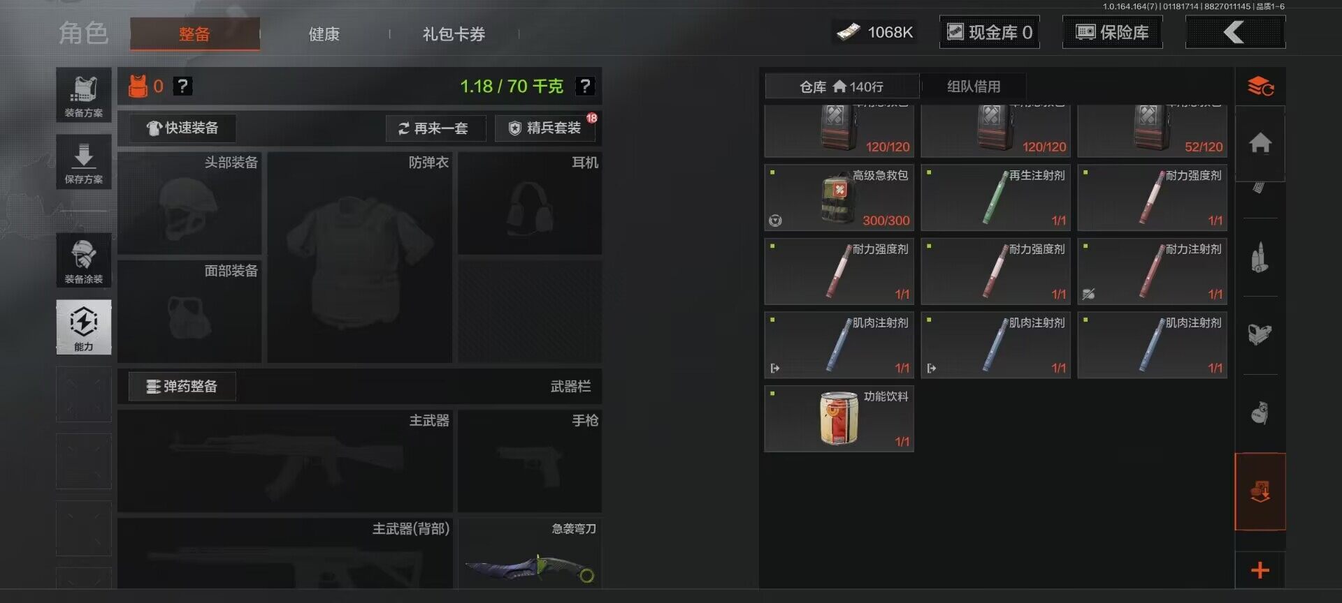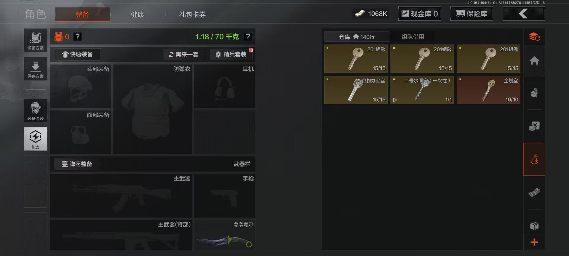 仓库价值(百万):6.1/柯恩币:1068000/工兵铲/急袭弯刀