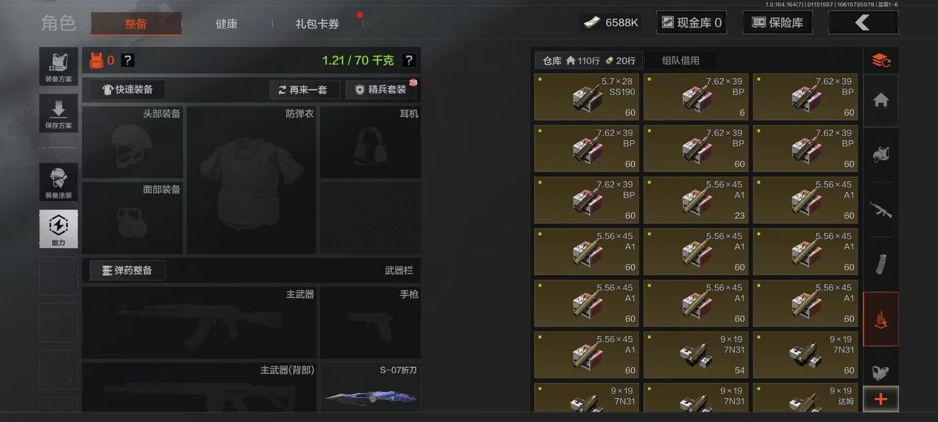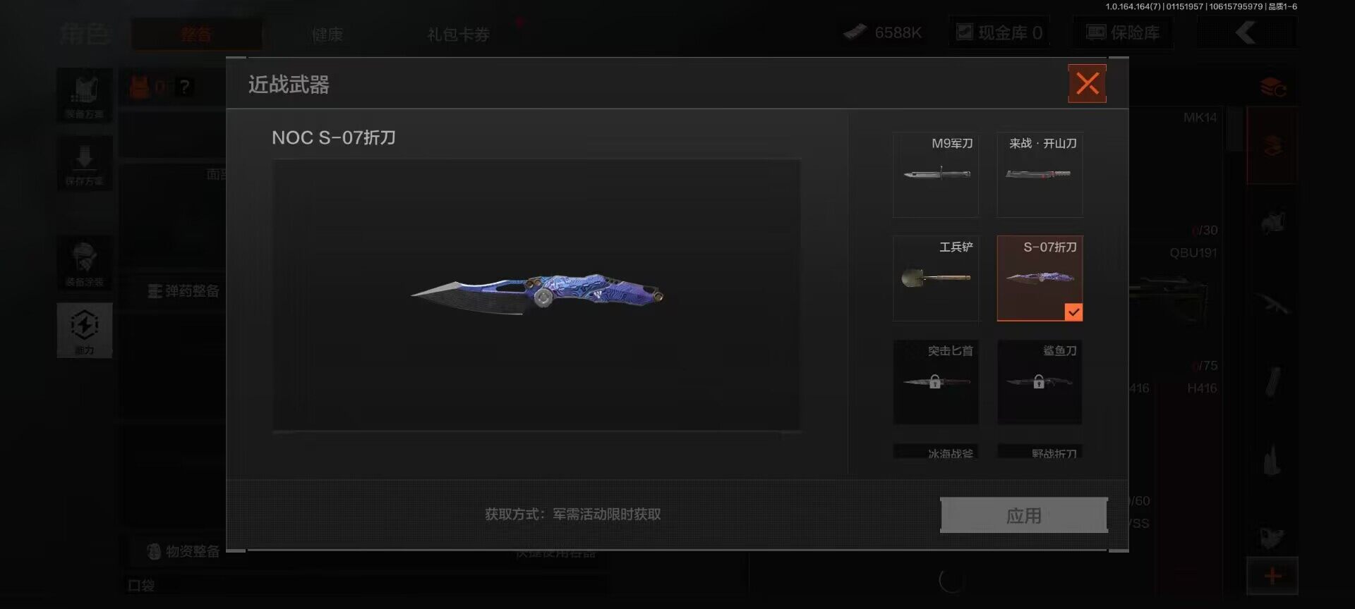【AQZG990】等级:30/段位:尖兵/仓库价值(百万):26.5/柯恩币:6588000/NOCs-7折刀