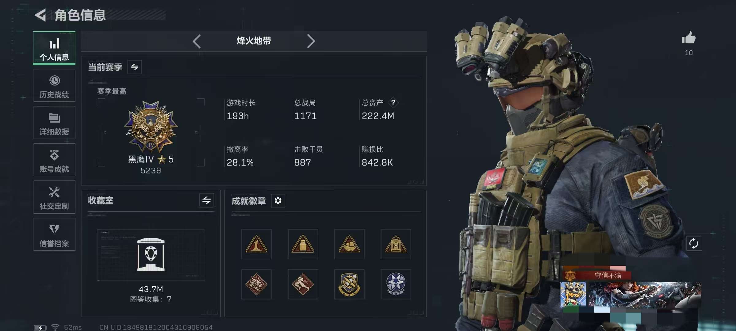 【总资产(M)】222.44【哈夫币】90,144.21【行动等级】60