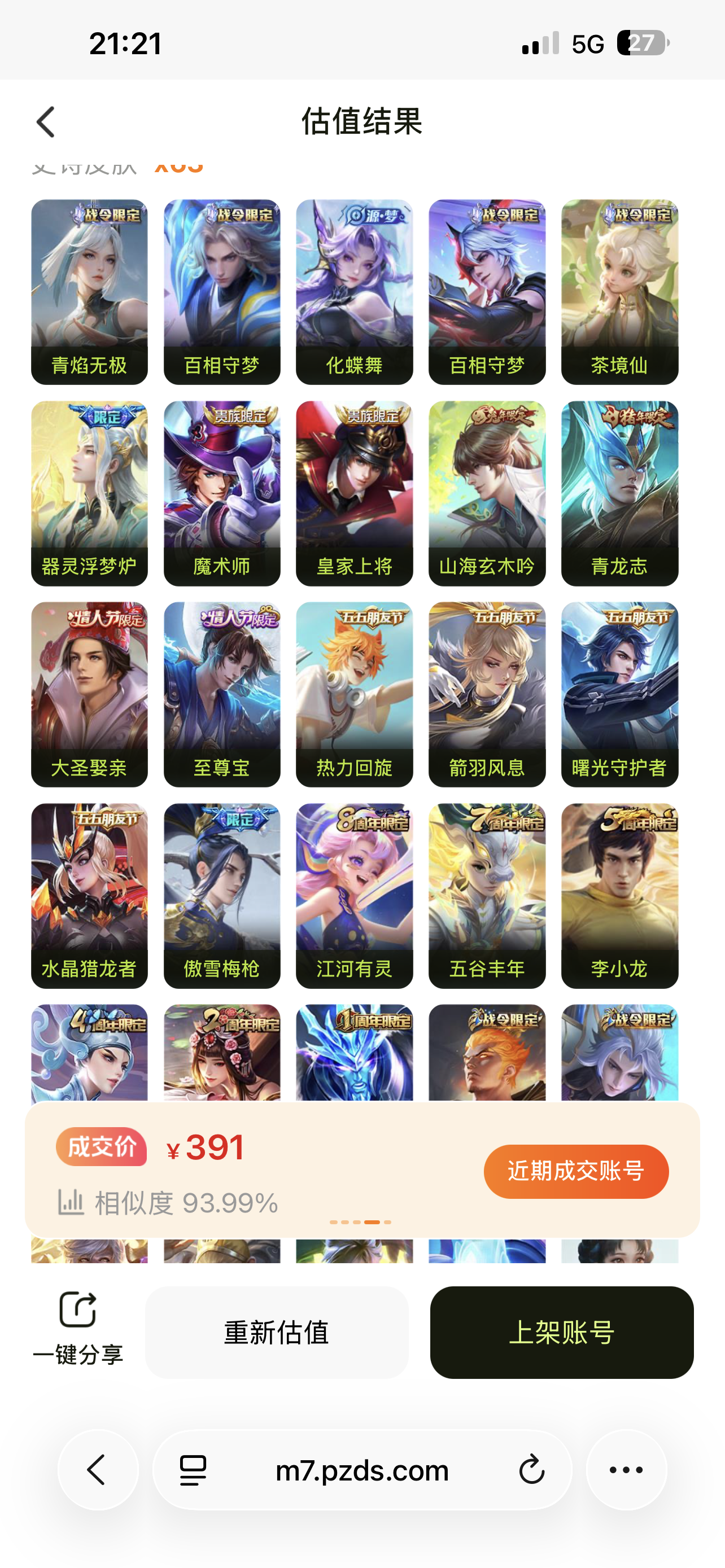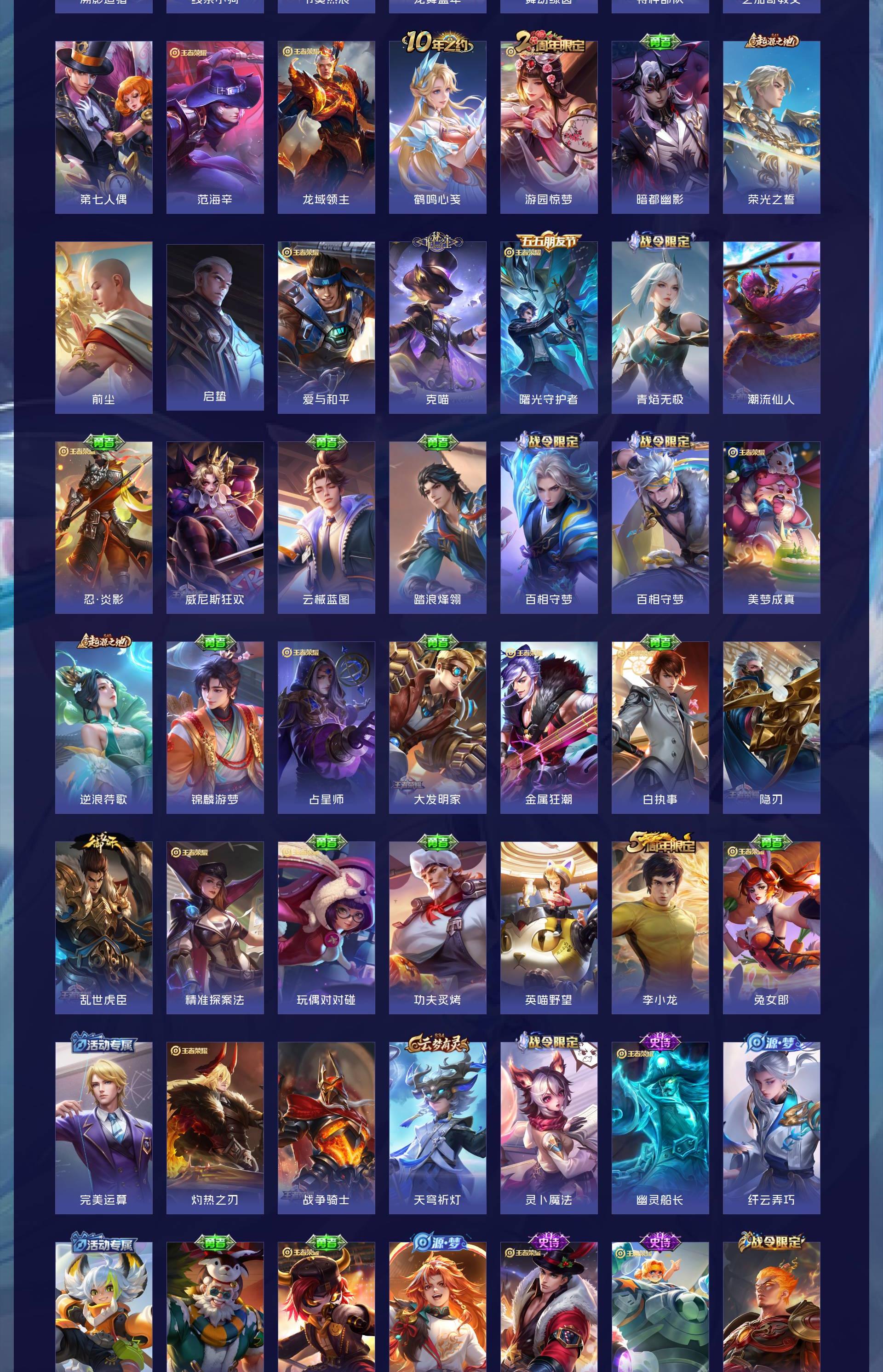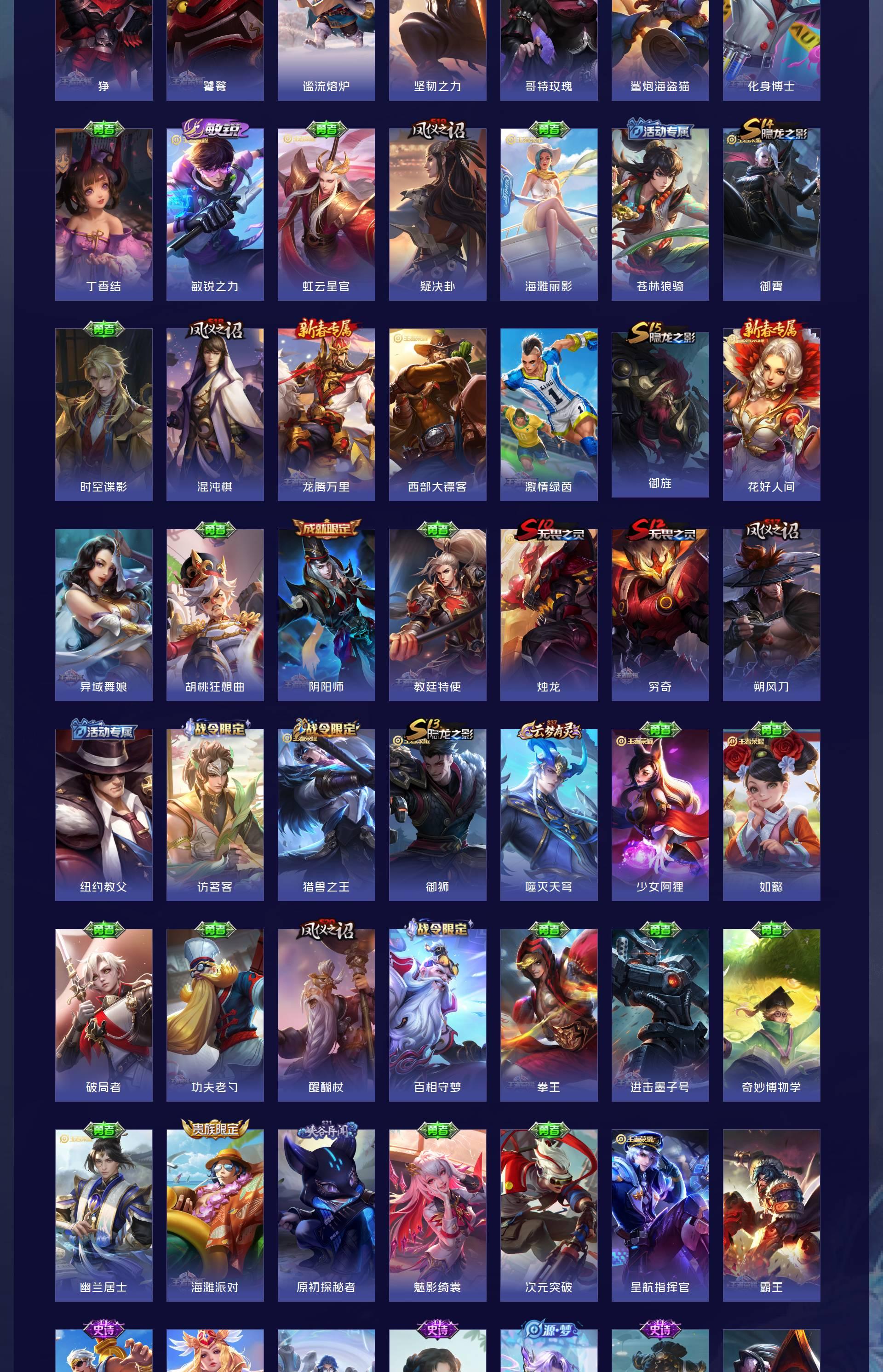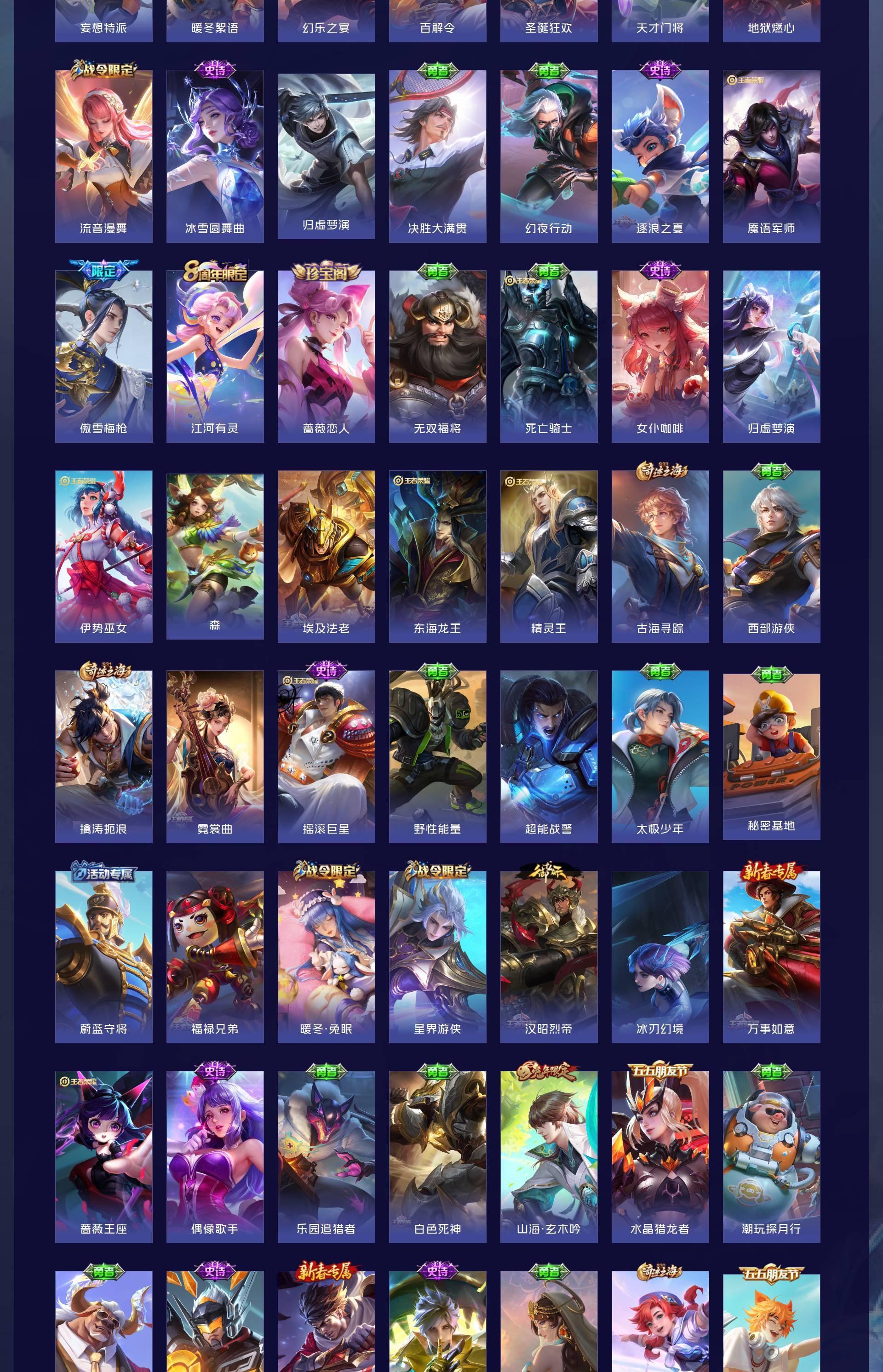 V7 皮肤240 英雄129 至尊星耀 荣耀典藏2 珍品传说1 传说6 其他皮肤235