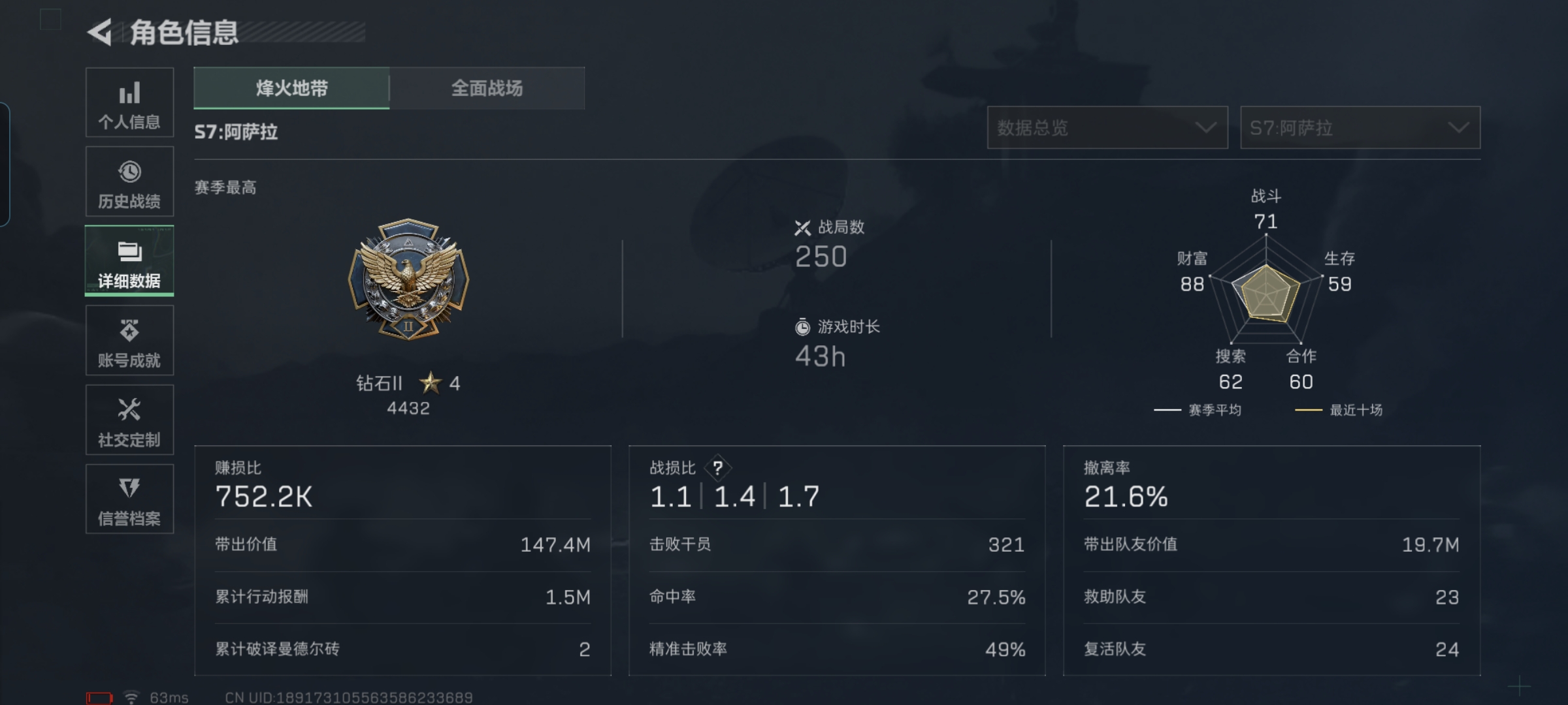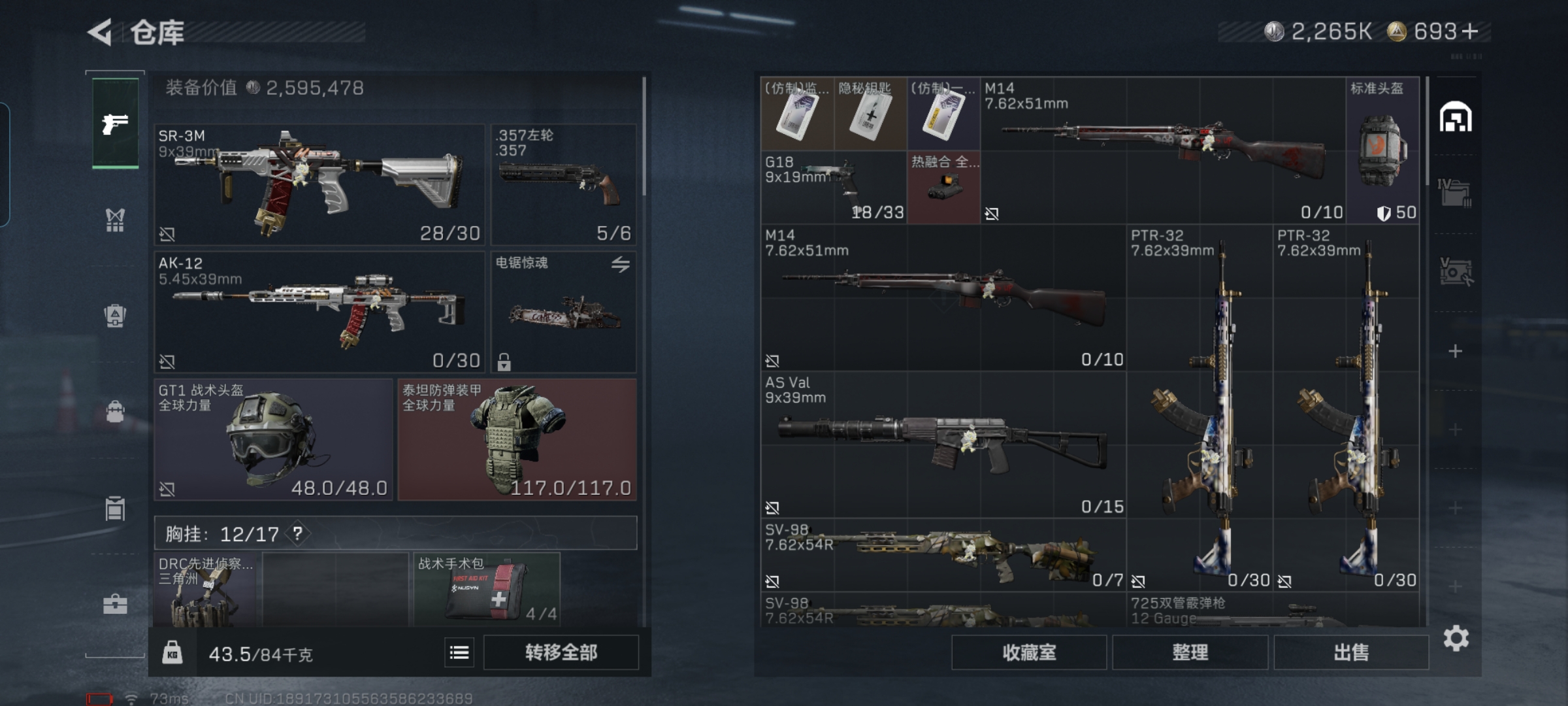 【满体满指挥高特勤 刀皮电锯】【总资产(M)】85.07【哈夫币】2265k