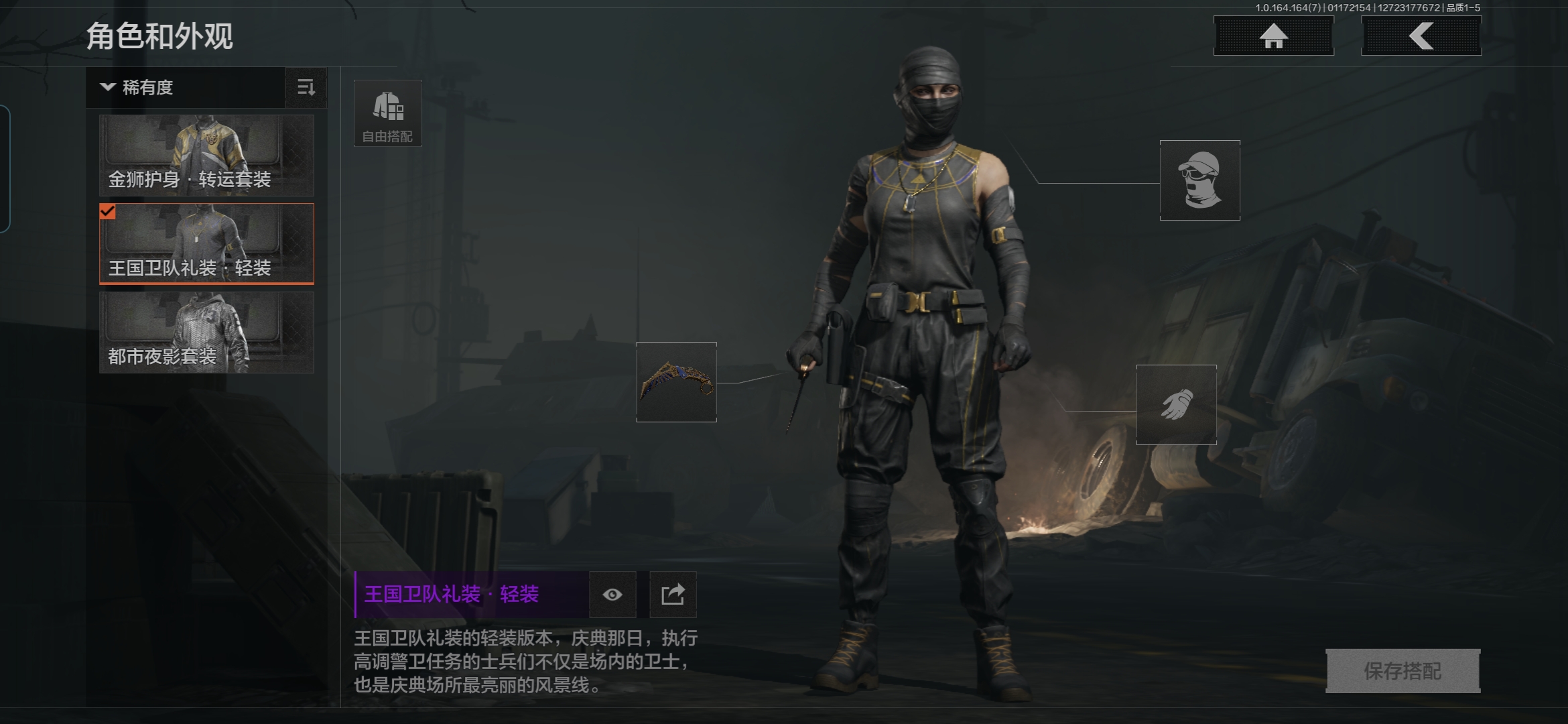 MWT4341安卓Q-等级30-仓库价值12.8M-科恩币1001K-【套装】金狮护身. 转运套装 王国卫队礼装.轻装 都市夜影套装【近战武器】苍穹利爪 工兵铲