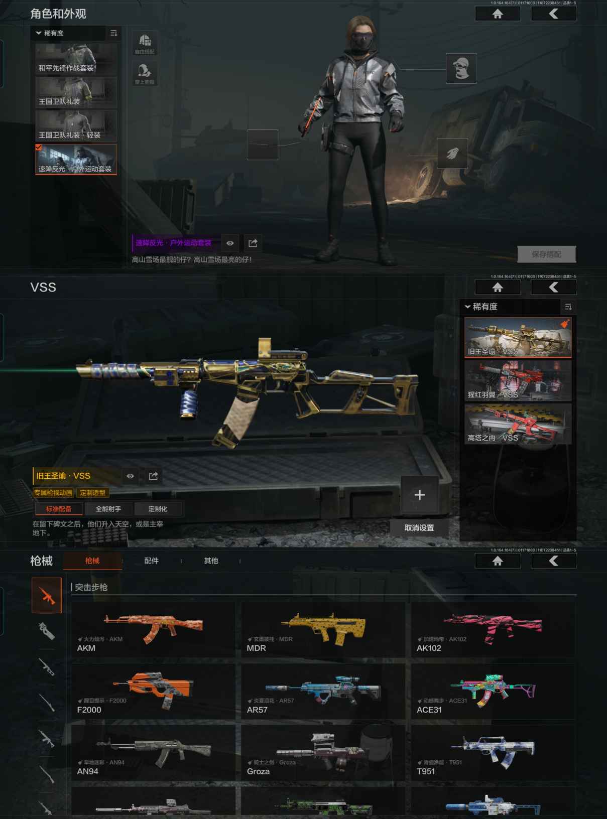 DSTW1939安卓Q-等级30-仓库价值3.8m-科恩币1793k-【套装】和平先锋作战套装 王国卫队礼装 王国卫队礼装·轻装 速降反光·户外运动套装【枪皮】旧王圣谕·VSS【近战武器】工兵铲 来战·开山刀 热能武器·补牢 【3金挂饰】狠活就位 【1金投掷物】瓷蒺藜·T13手榴弹