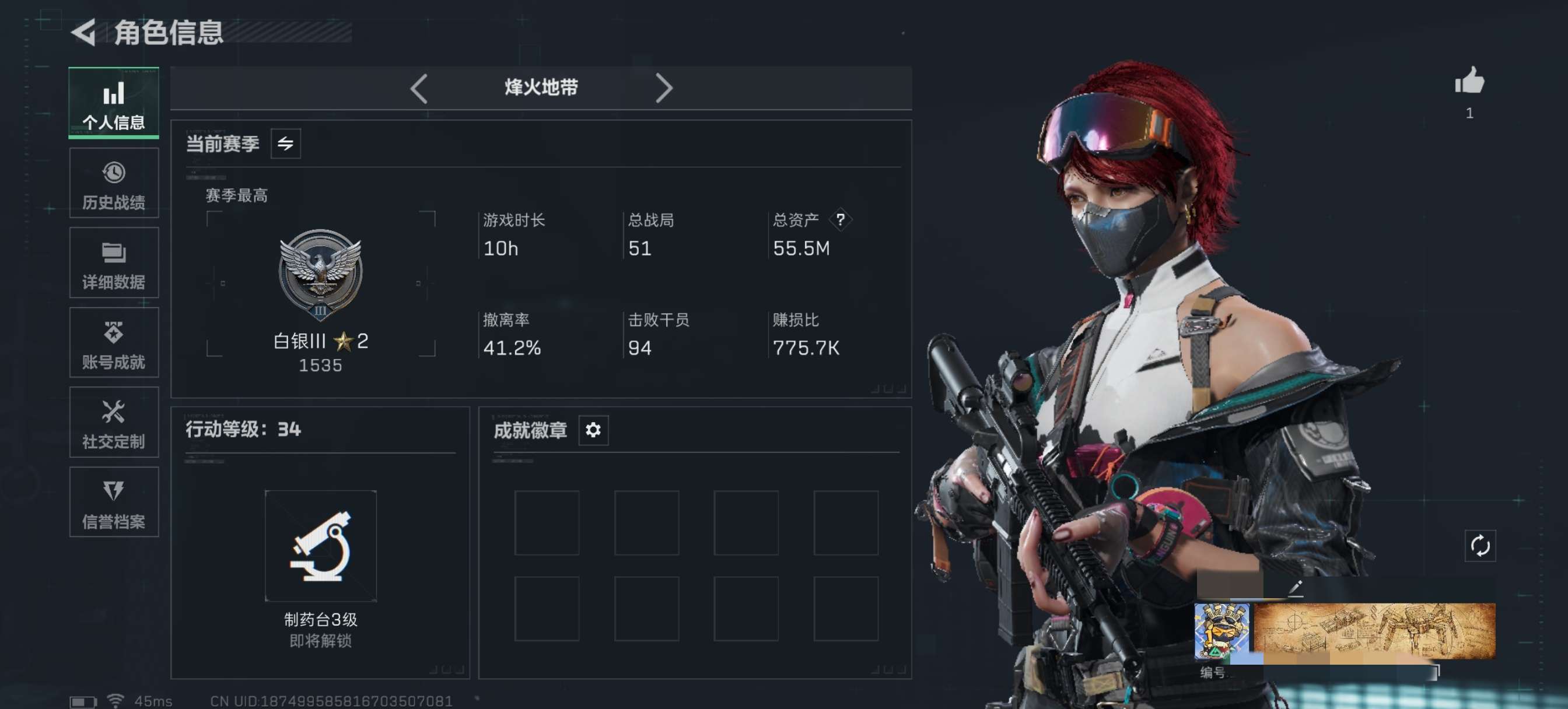 【总资产(M)】55.5【哈夫币】23,252.41【行动等级】34