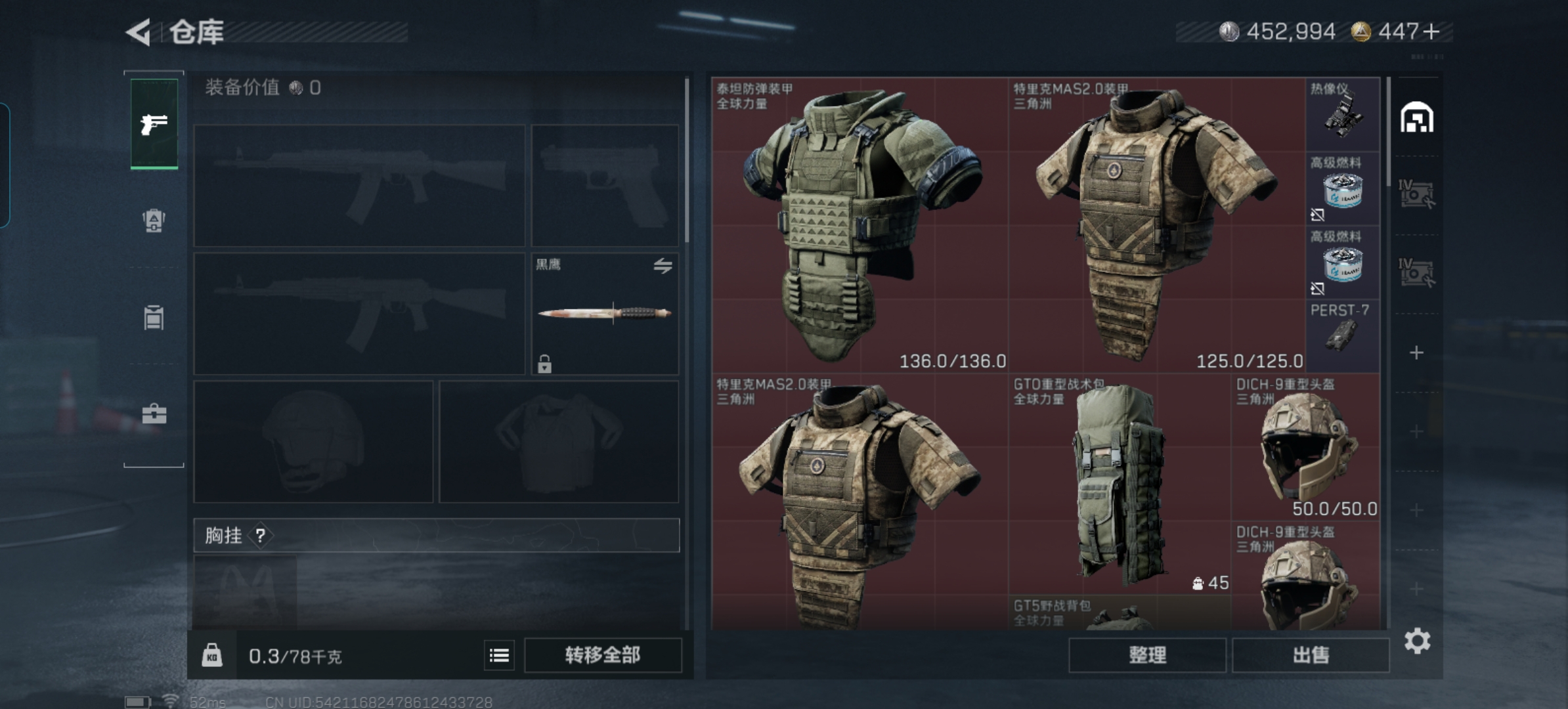 【总资产(M)】44.67【哈夫币】452k【行动等级】58