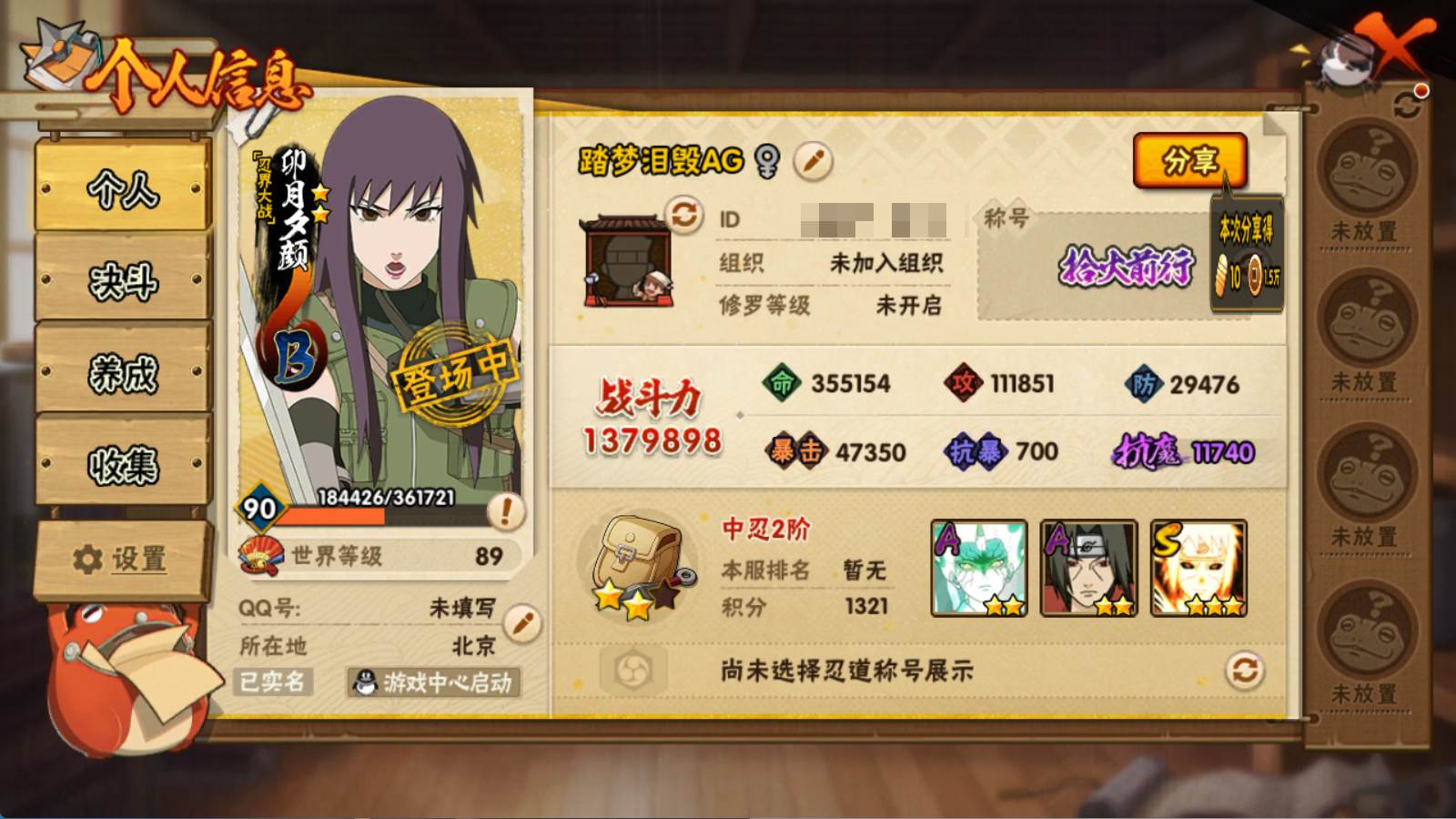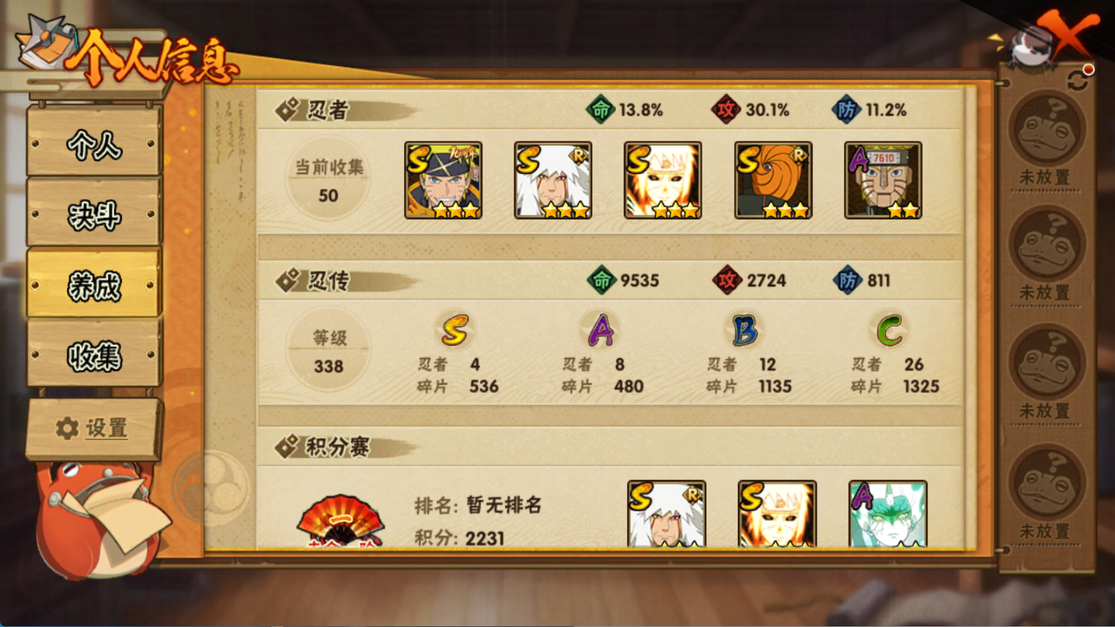 137W战力五影斑金水4S+泳装鼬8A战力137忍者总数50