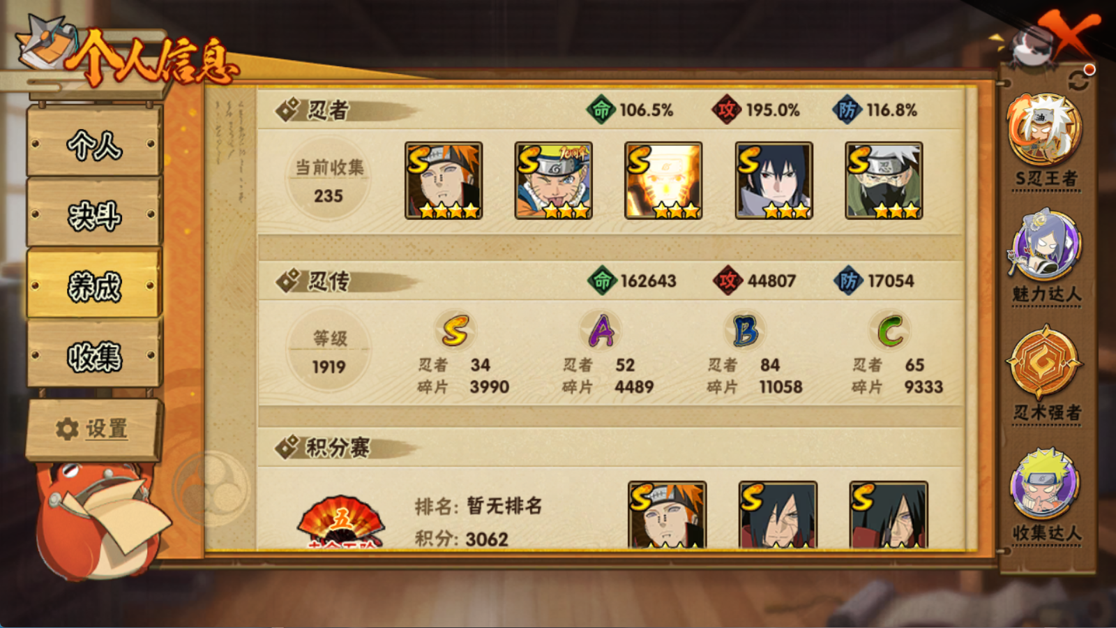 1209W战力 白破超 死水 五影斑34S+298点券小孩 鸡翅+盾狗 飘带6个198直购52A+熊猫通灵+1.8W金币