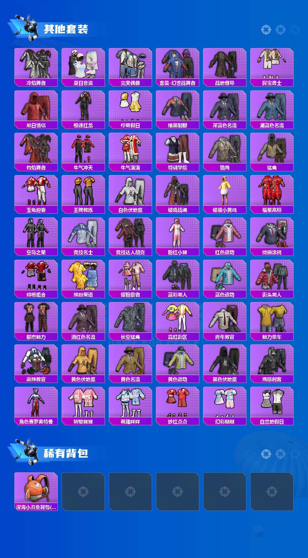【粉色套装】:粉装-傲雪凌霜,粉装-霓裳武神,角色-异瞳寒姬