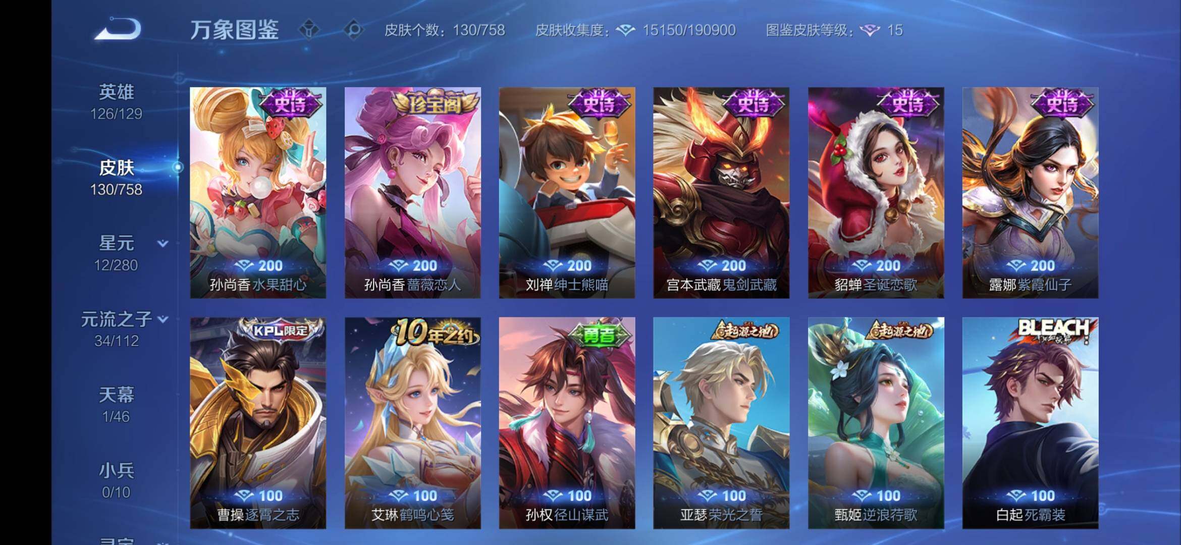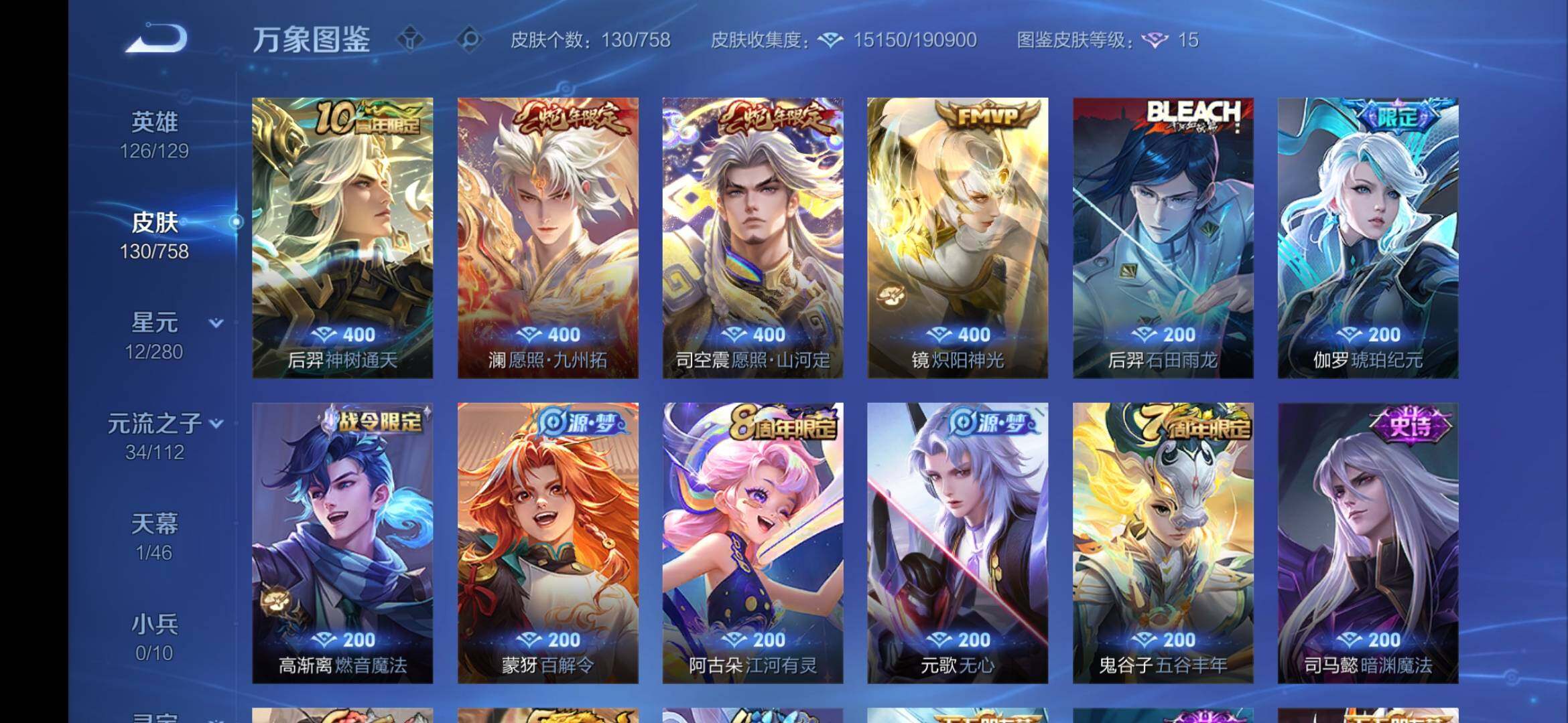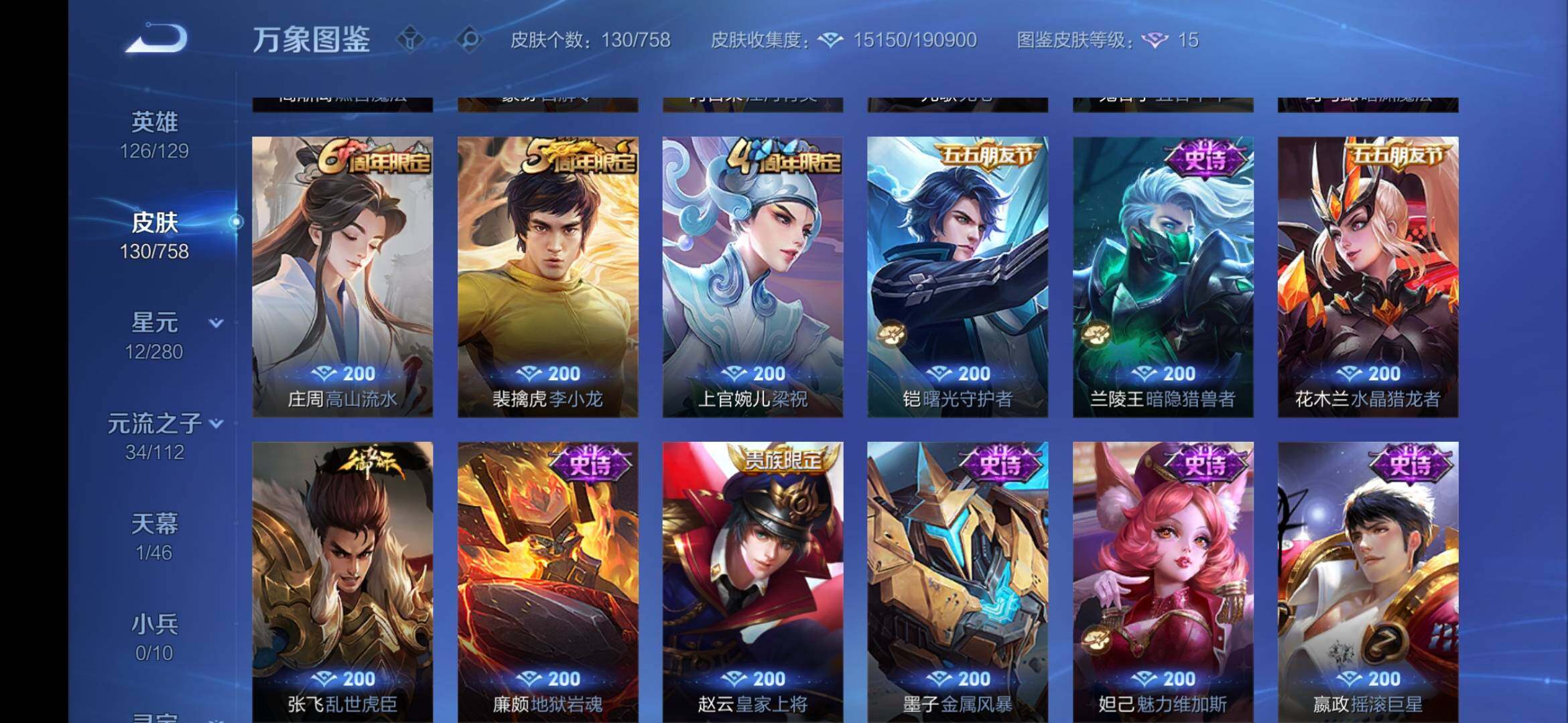 安卓Q-V5-126英雄-130皮-4传说-27史诗