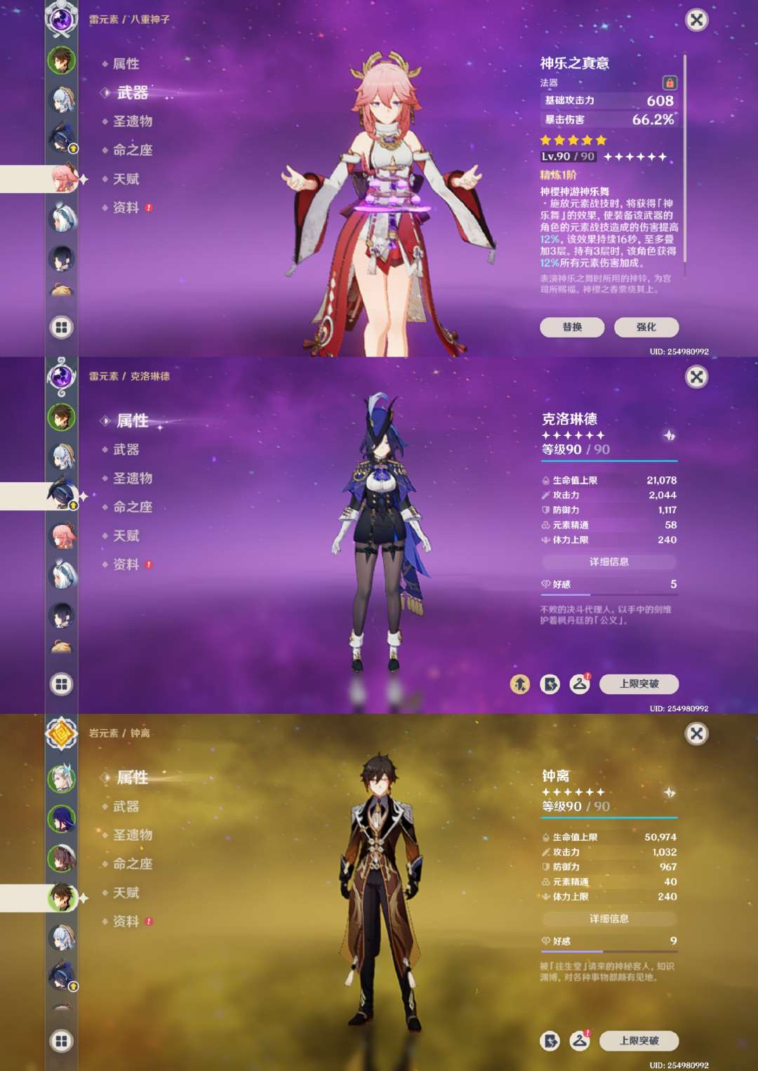 邮箱没有绑定,号非常安全,胡桃和神里绫华都有新皮肤,雷神八重神子带专武,克洛琳德1命,号里还有龙王
