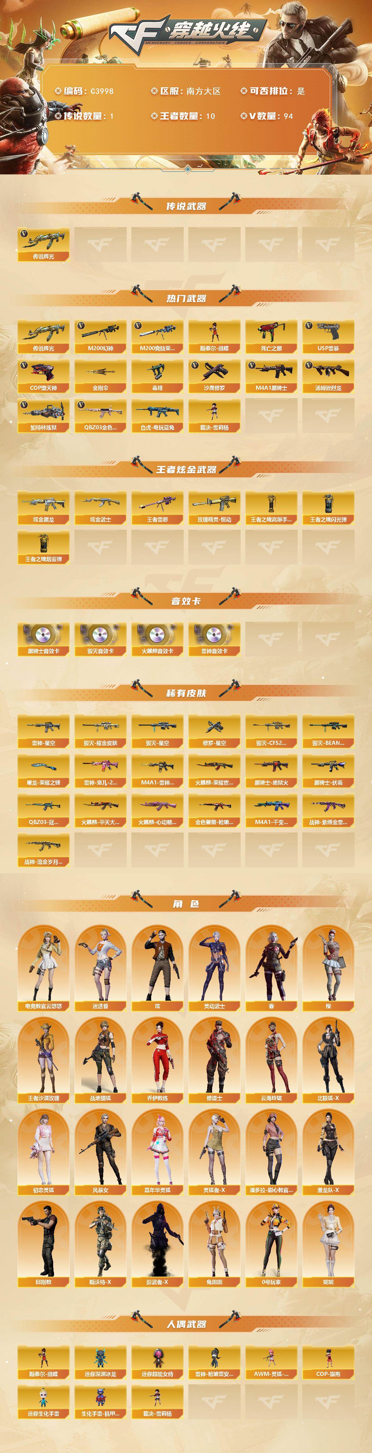 【C3998】南方大区-94V-10王者-3炫金