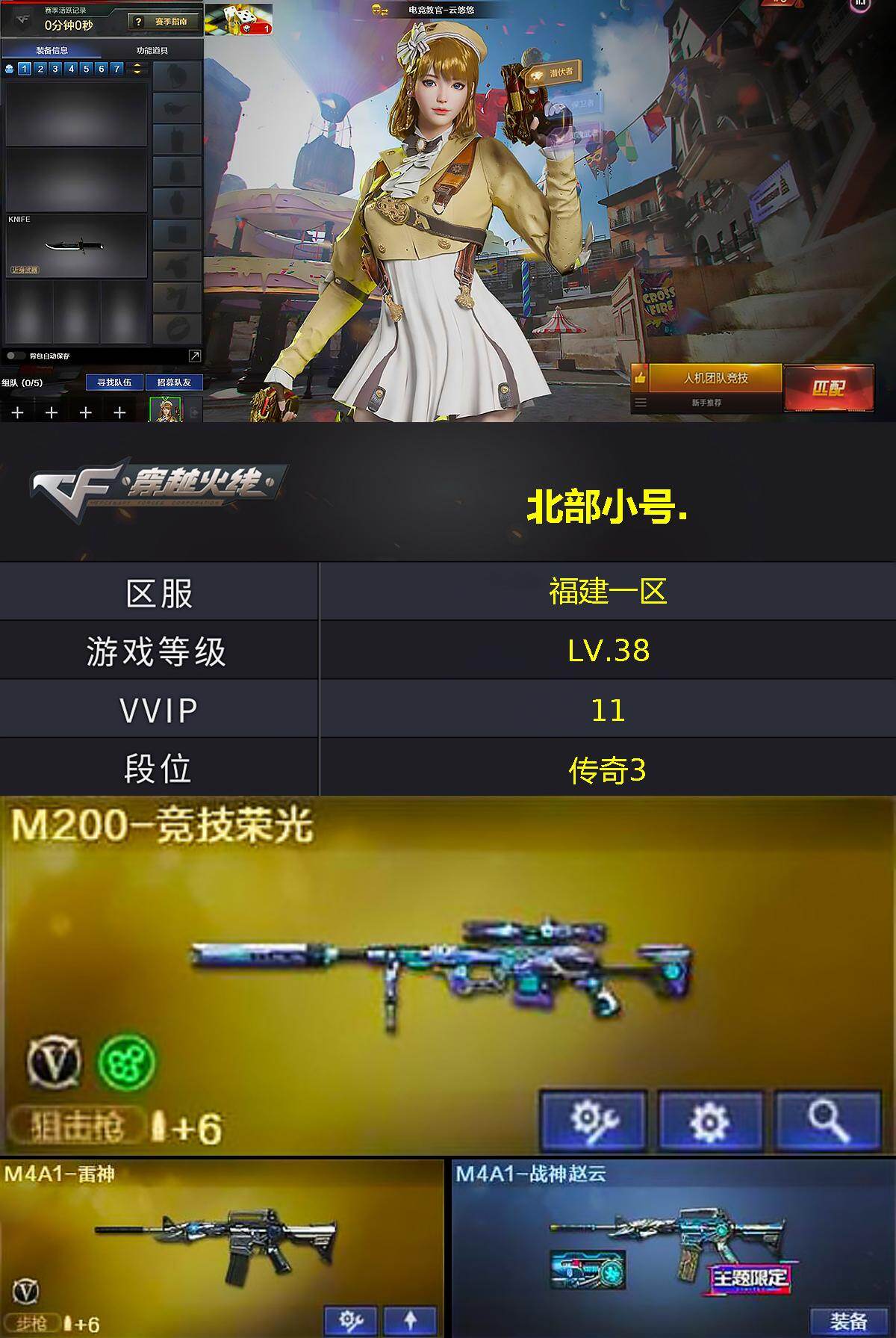 【皮肤】:M4A1-战神赵云,毁灭-暗月,毁灭-战神张飞*2