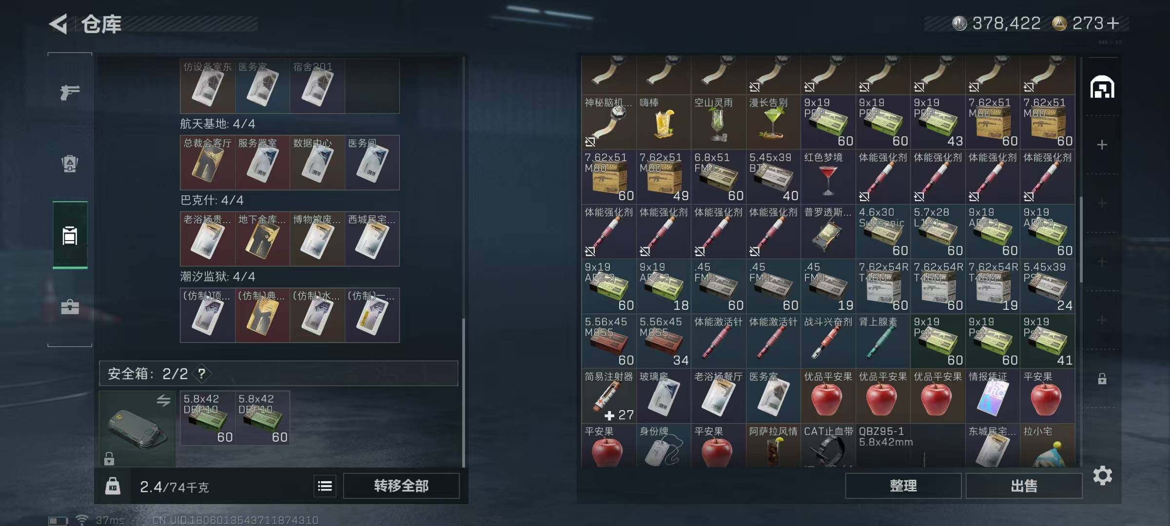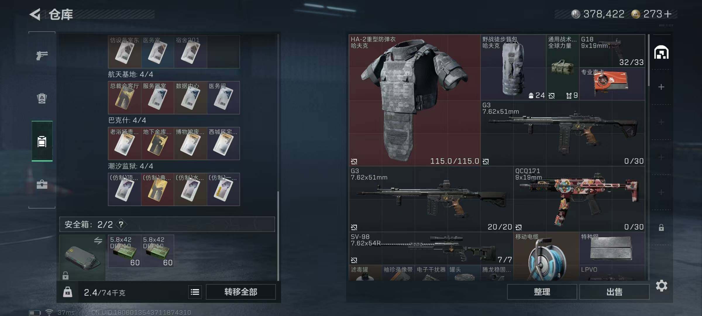 【SJZX1308】总资产(M):17M/哈夫币(K):378K/哈夫币(K):378K/传说枪皮数:9/全面战场等级:1_段位:无段位/烽火地带等级:52_段位:白银/红狼-蚀金玫瑰/露娜-黑·天际线/近战-黑鹰/M4A1突击步枪-蚀金玫瑰/AK-12突击步枪-特斯拉线圈/SCAR-H战斗步枪-启航/KC17突击步枪-电锯惊魂/UZI冲锋枪-特斯拉线圈/SR-3M紧凑突击步枪-特斯拉线圈/勇士冲锋枪-能天使-午夜邮差/SR-25射手步枪-水墨云图/复合弓-黑·天际线/SCAR-H战斗步枪-囚徒