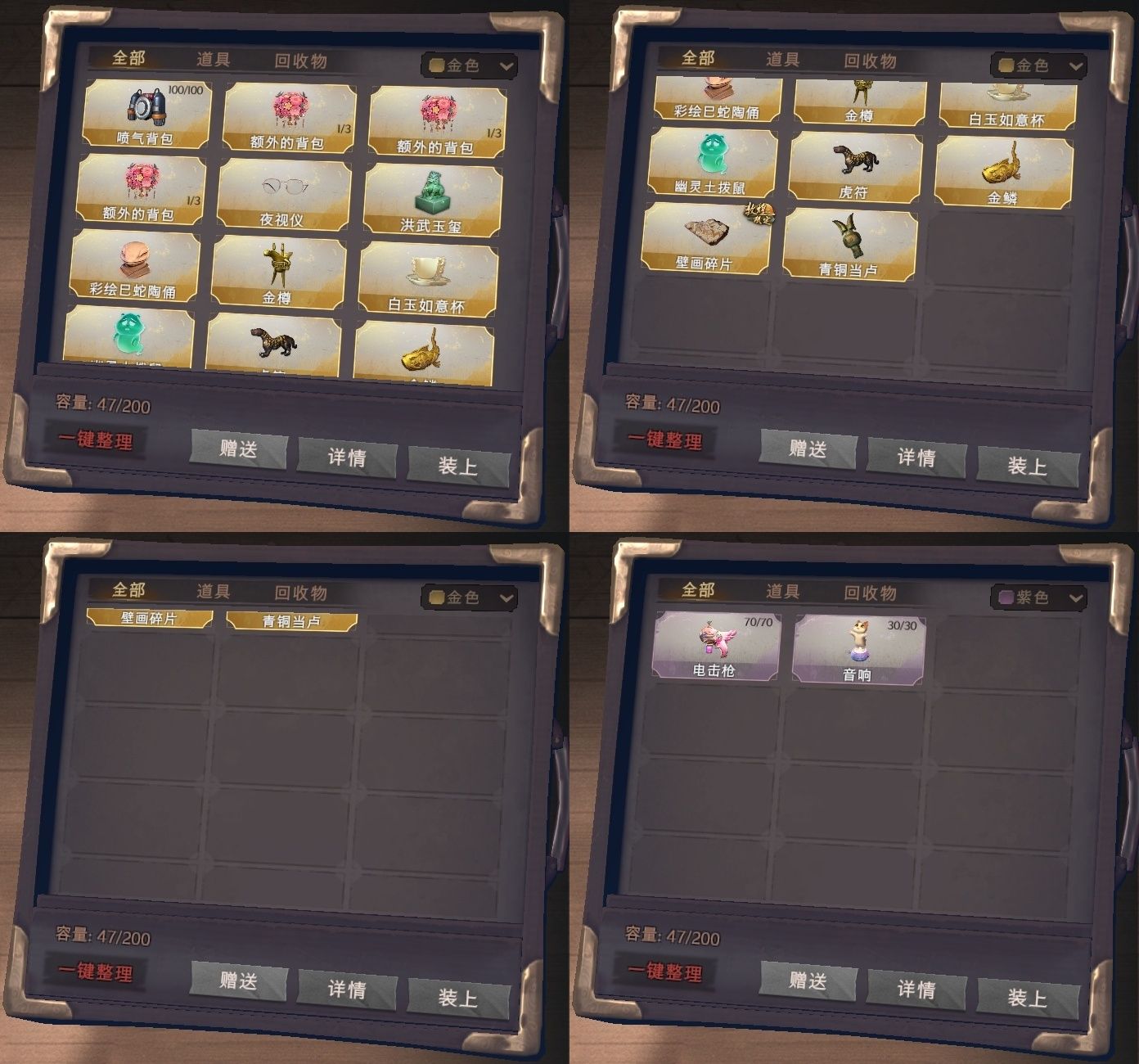 ZR144,红皮:0,金皮:4,紫皮:3,道具皮:18,铲铲币:85w,累充:17720金砖,幻梦皮肤:,金色皮肤:逍遥-莲华渡、薇薇安-圣光之谕、小黄-遗失的童话、巫铃儿-镜花辞,紫色皮肤:莉莉-情公主、爱丽丝-丝缕哀歌、小黄-呱呱雨衣,员工:小黄、爱丽丝、零、逍遥、薇薇安、巫铃儿、莉莉、艾伦、爱德华、兰,赛季魔盒:普通魔盒,腰包-惊魂娃娃、转轮手枪-新星时代、传送按钮-幻宠之门、专业手电-云端