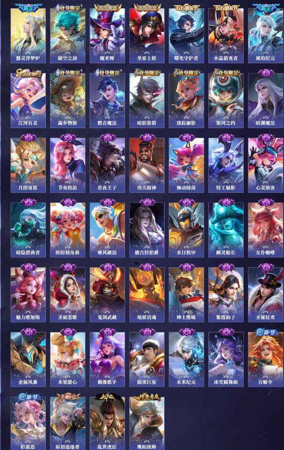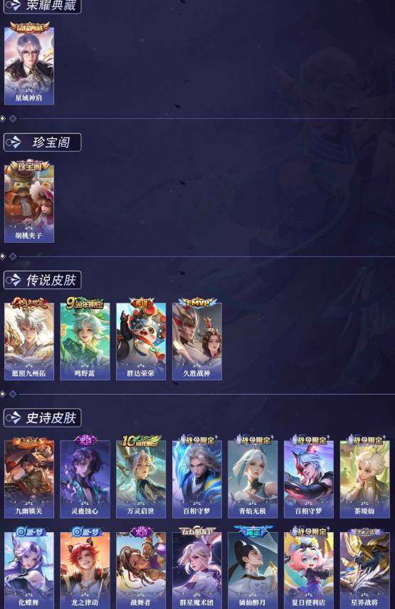 【传说皮肤】:澜愿照九州拓,桑启鸣野蒿,干将莫邪久胜战神,梦奇胖达荣荣
