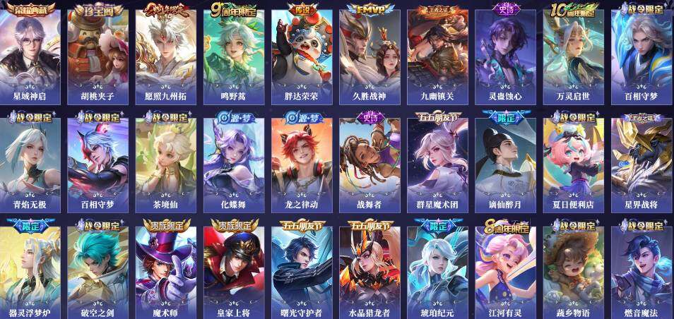 【限定皮肤】:蔡文姬夏日便利店,大乔绒语心约,虞姬夏日便利店,姜子牙天穹之誓,杨戬破阵退雄兵,李白谪仙醉月,狄仁杰阴阳师,赵云皇家上将,高渐离死亡摇