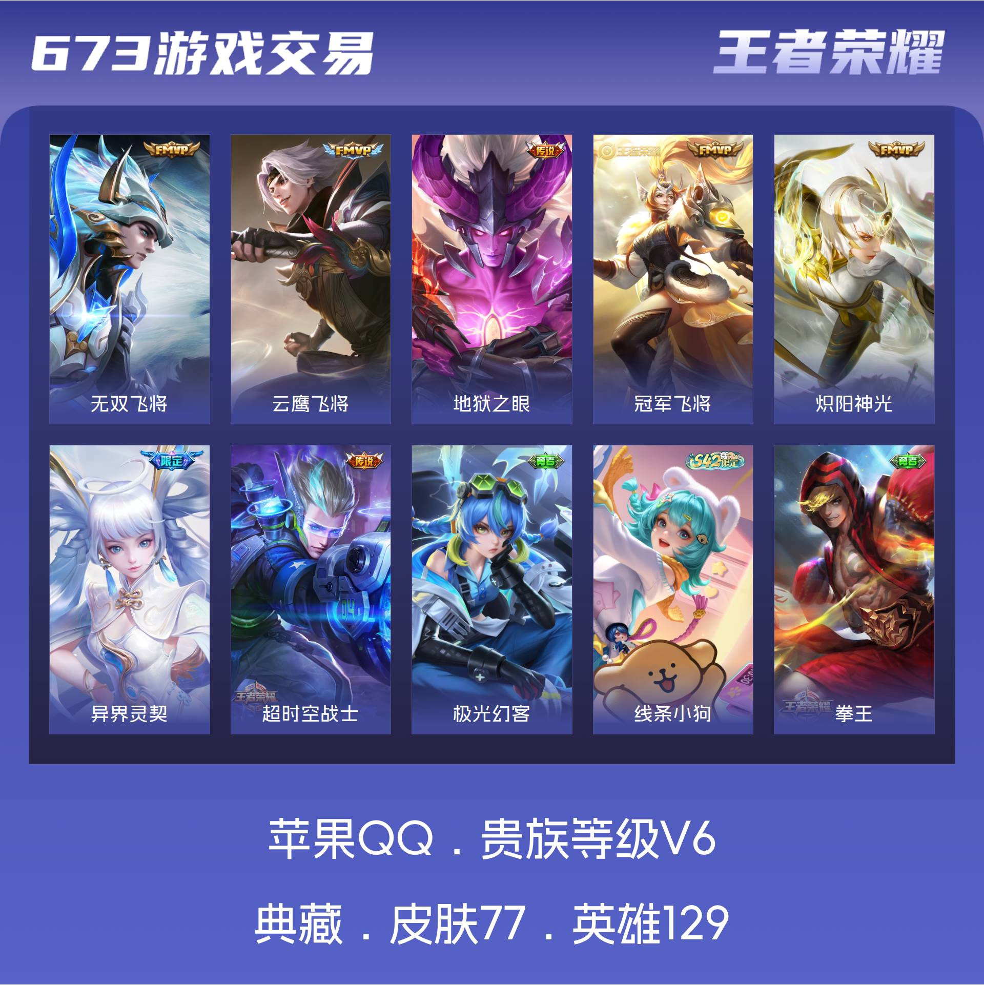 V6 皮肤77 英雄129 最强王者 传说7 其他皮肤76
