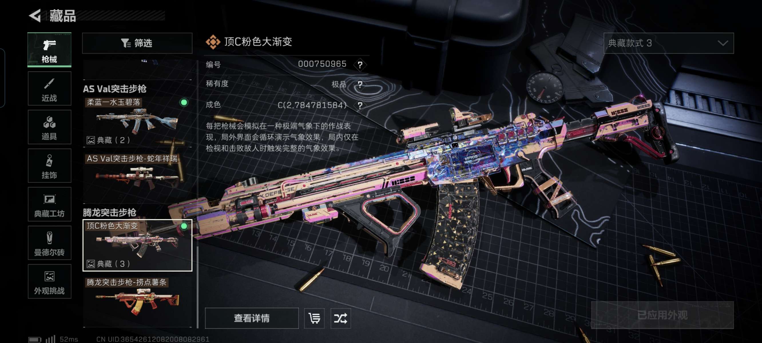 粉钻m7 银粉k416 金粉渐变巨浪 三属性腾龙 美杜莎加电玩高手 双红皮加双刀皮 两个影藏挂饰