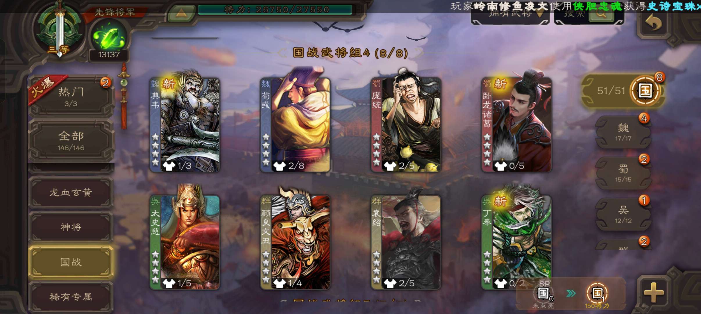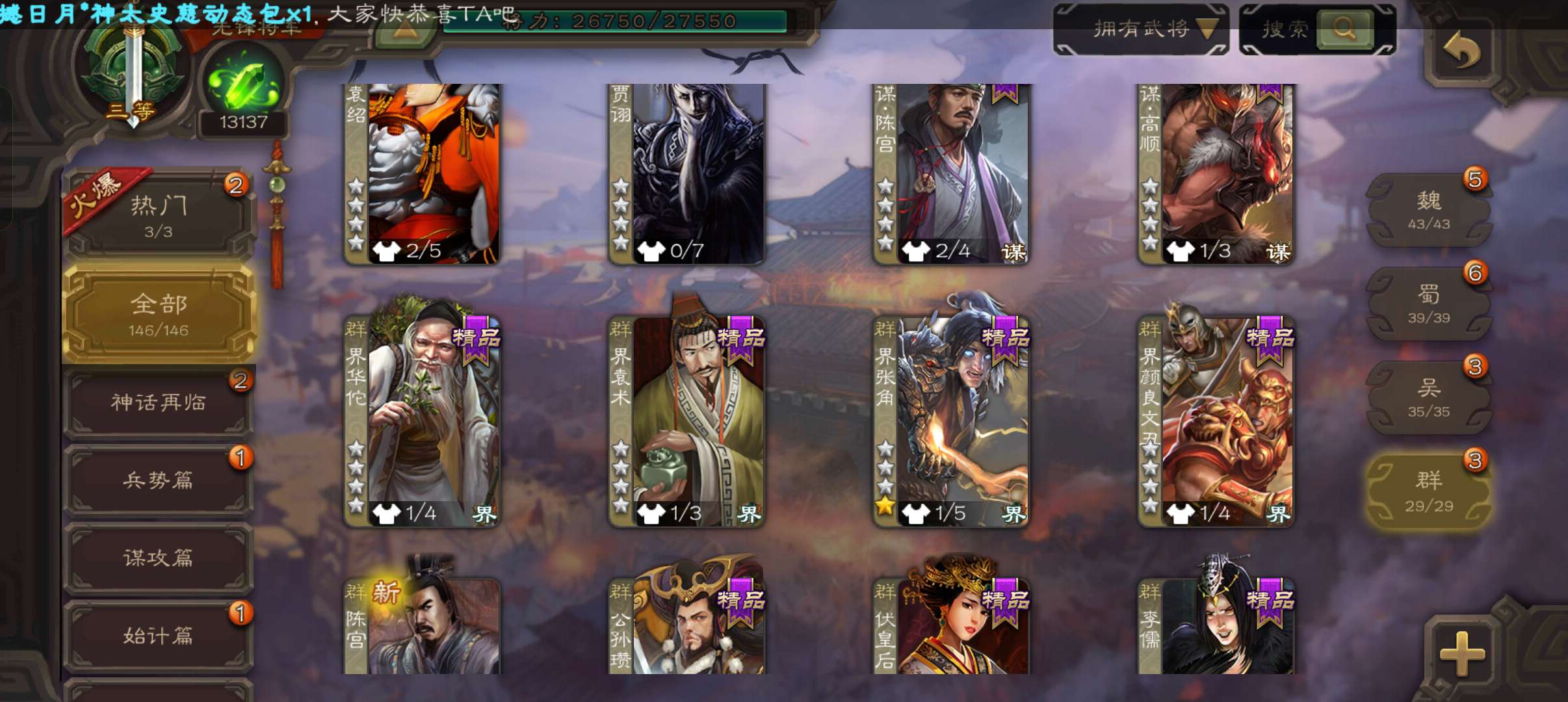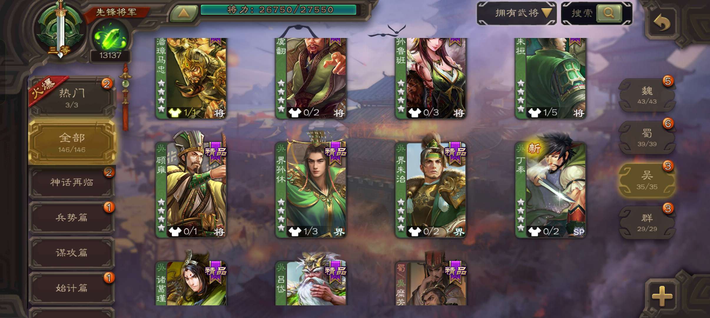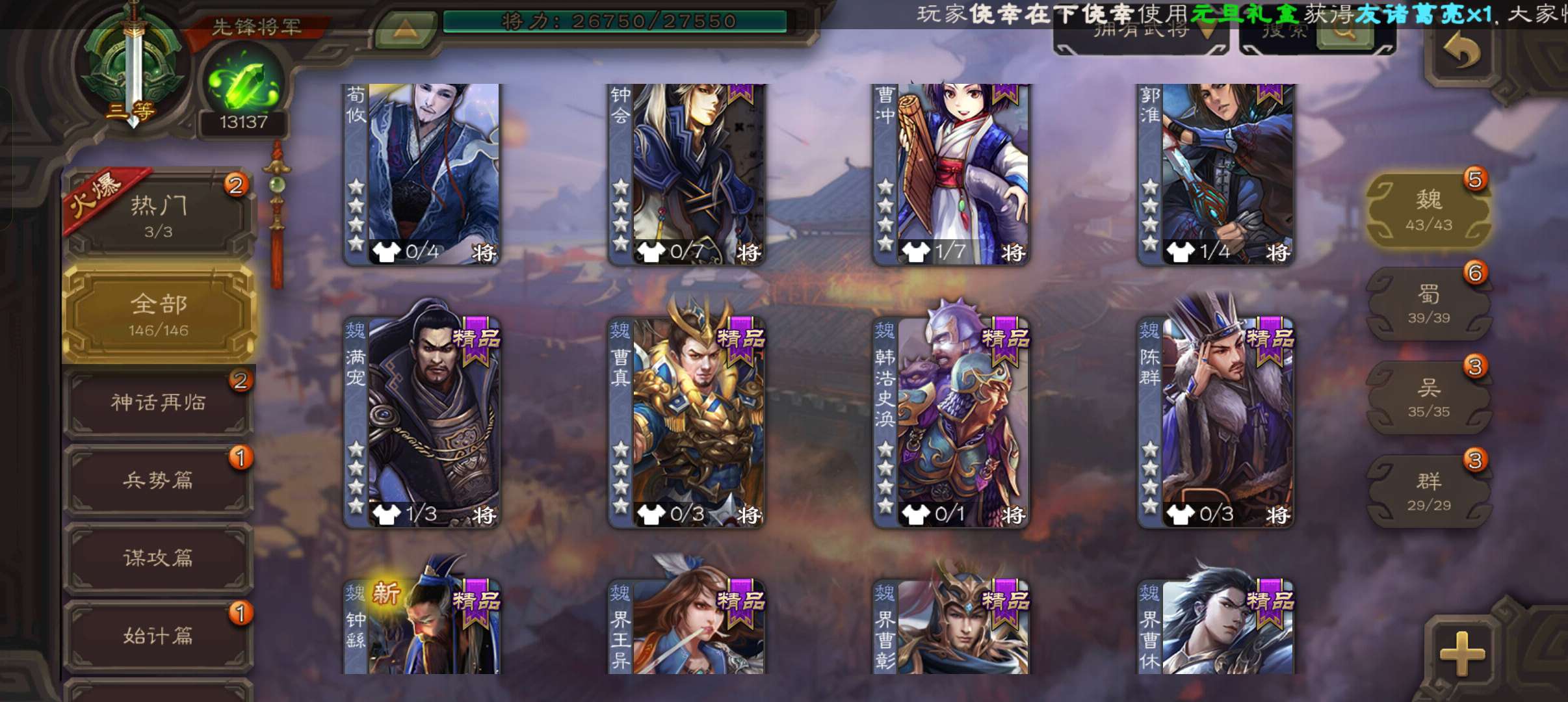 大材料先锋,38.4珠9万羽毛1.3万将魂,天工友徐庶,神太史慈谯周,谋高顺谋韩当动界大乔146将