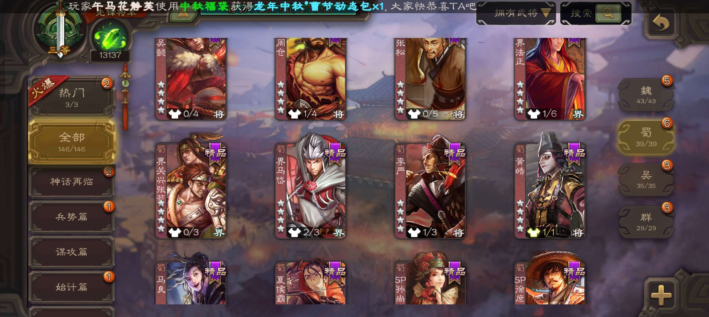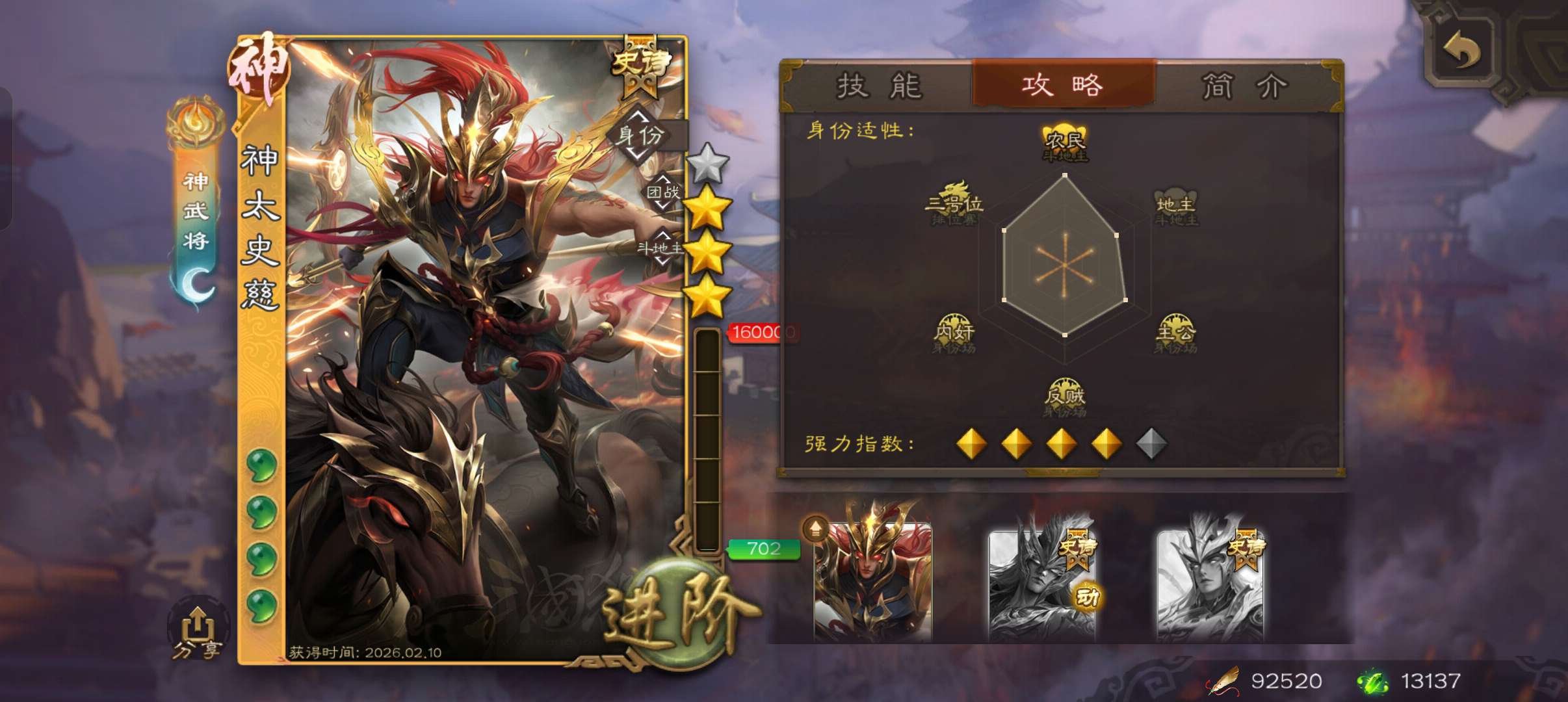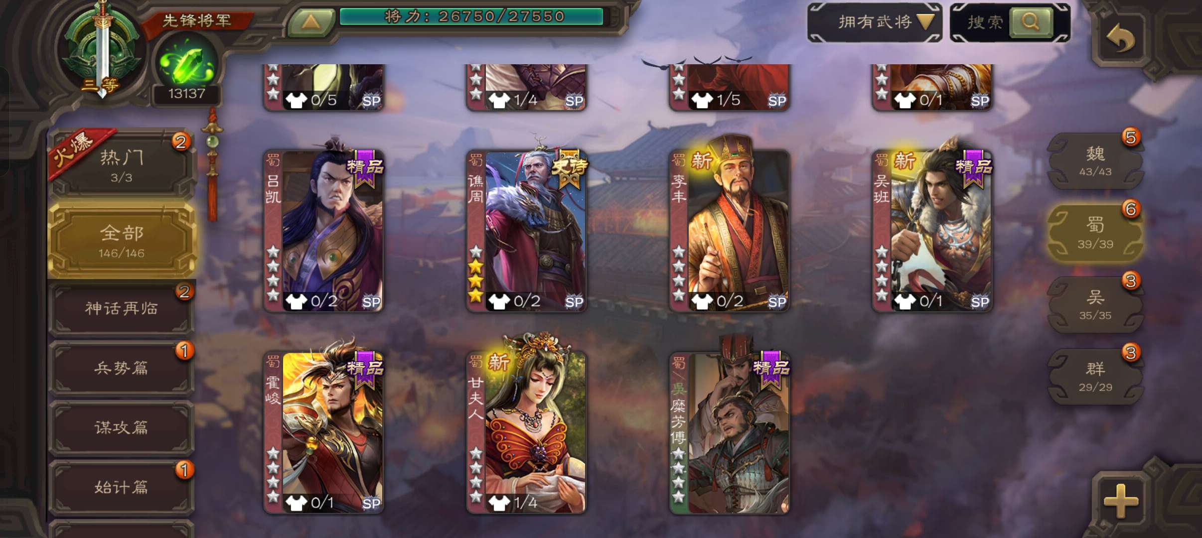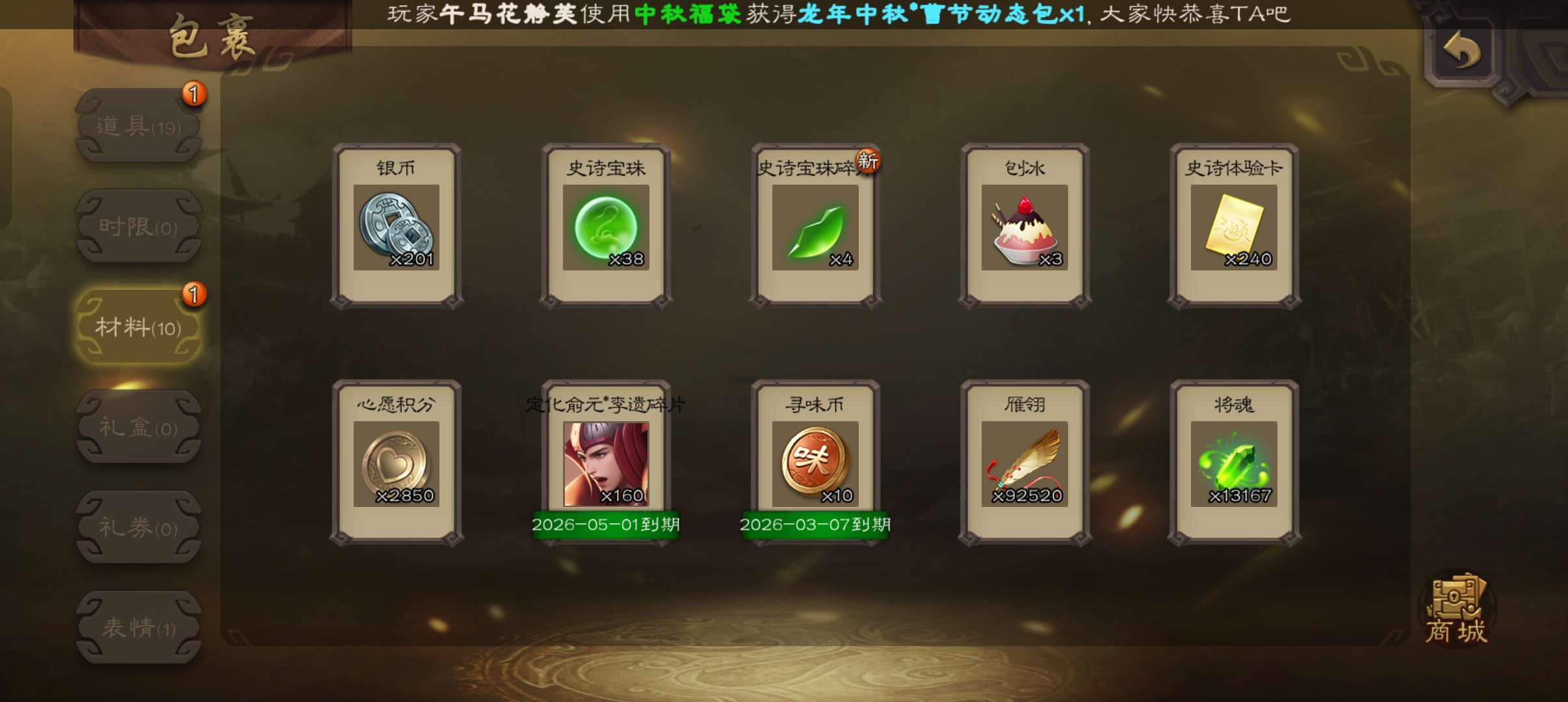 大材料先锋,38.4珠9万羽毛1.3万将魂,天工友徐庶,神太史慈谯周,谋高顺谋韩当动界大乔146将