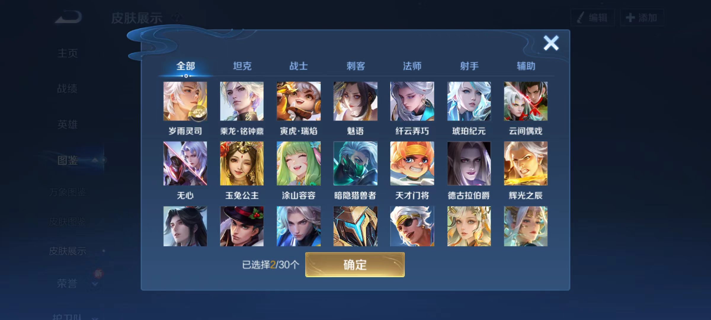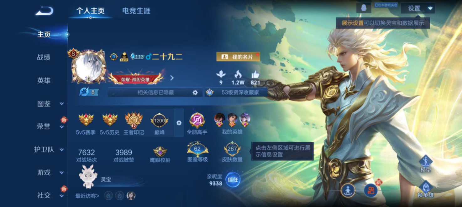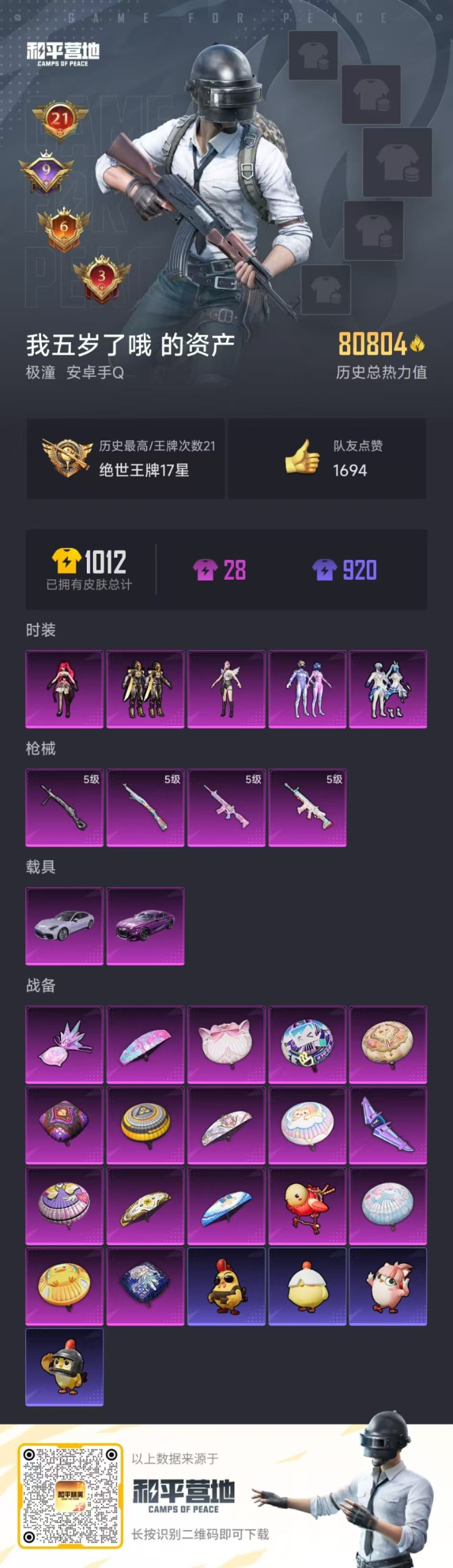 安卓QQ/荣耀王者/270皮肤/127英雄/1典藏/0珍品无双/1无双/0珍品传说/20传说/81史诗/9稀有英雄