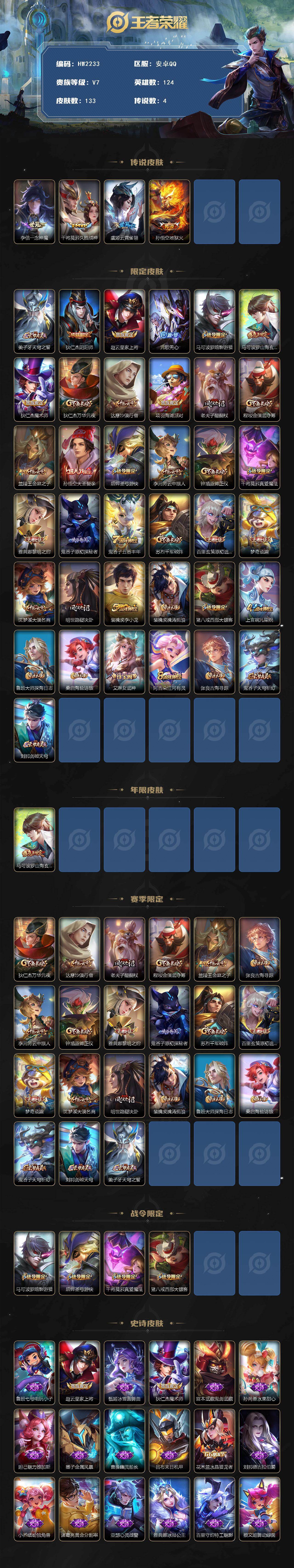/V7-133皮肤4传说34史诗*大圣娶亲*山海玄木吟*一念神魔*久胜战神*云霓雀翎*地狱火