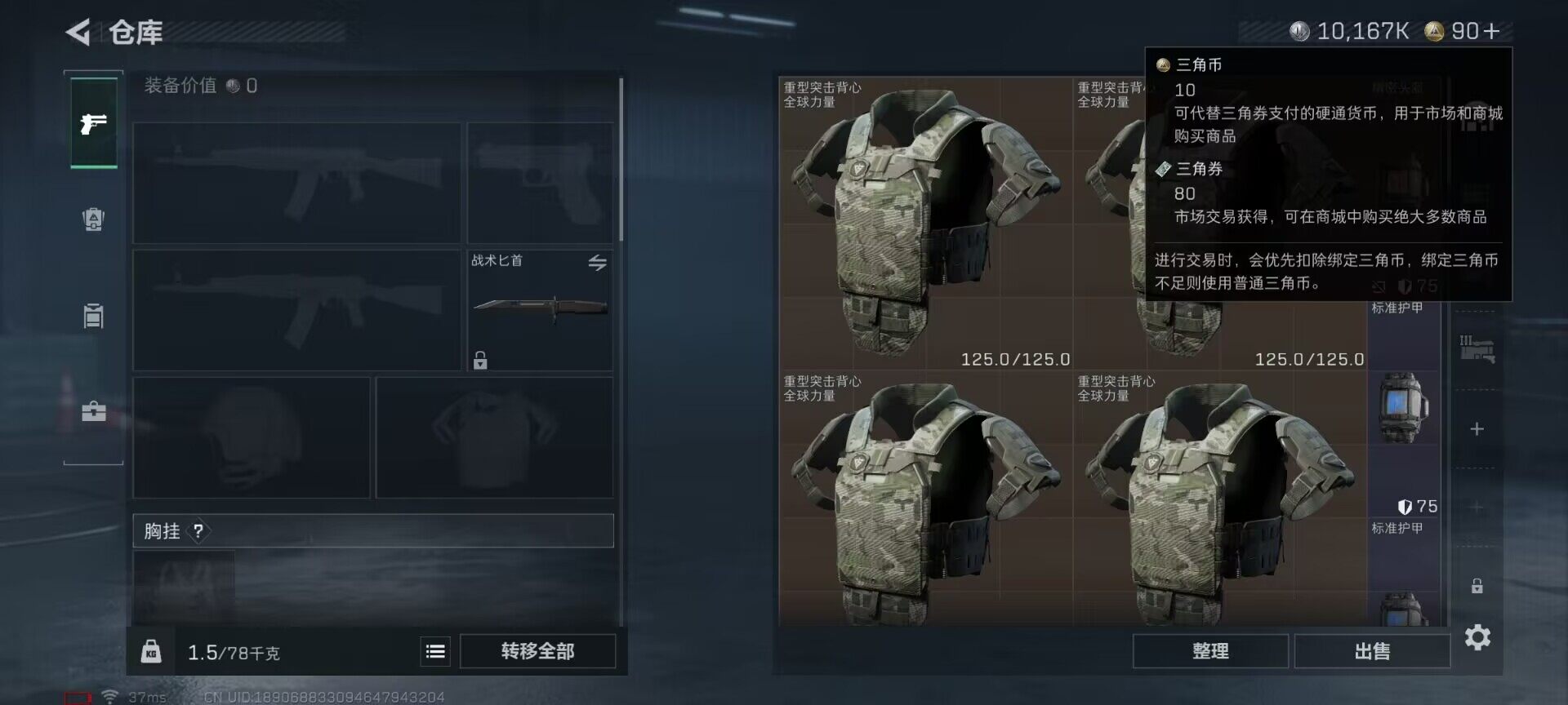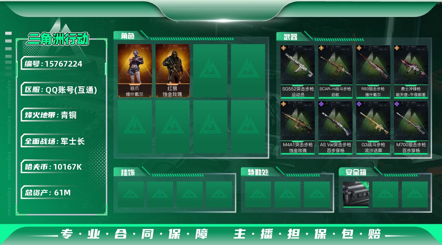总资产(M):61M/哈夫币(K):10167K/哈夫币(K):10167K/全面战场等级:23_段