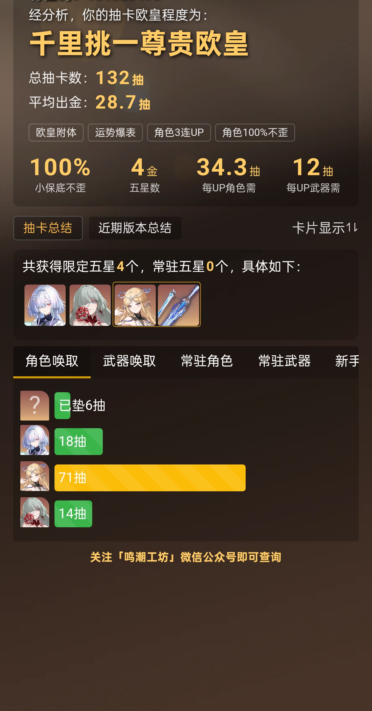 鸣潮官服欧皇纯手工个人小号