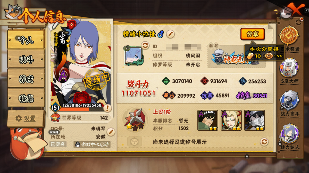 1100w战力破超创柱26s+盾狗4个198直购a共48A+岩隐幕布