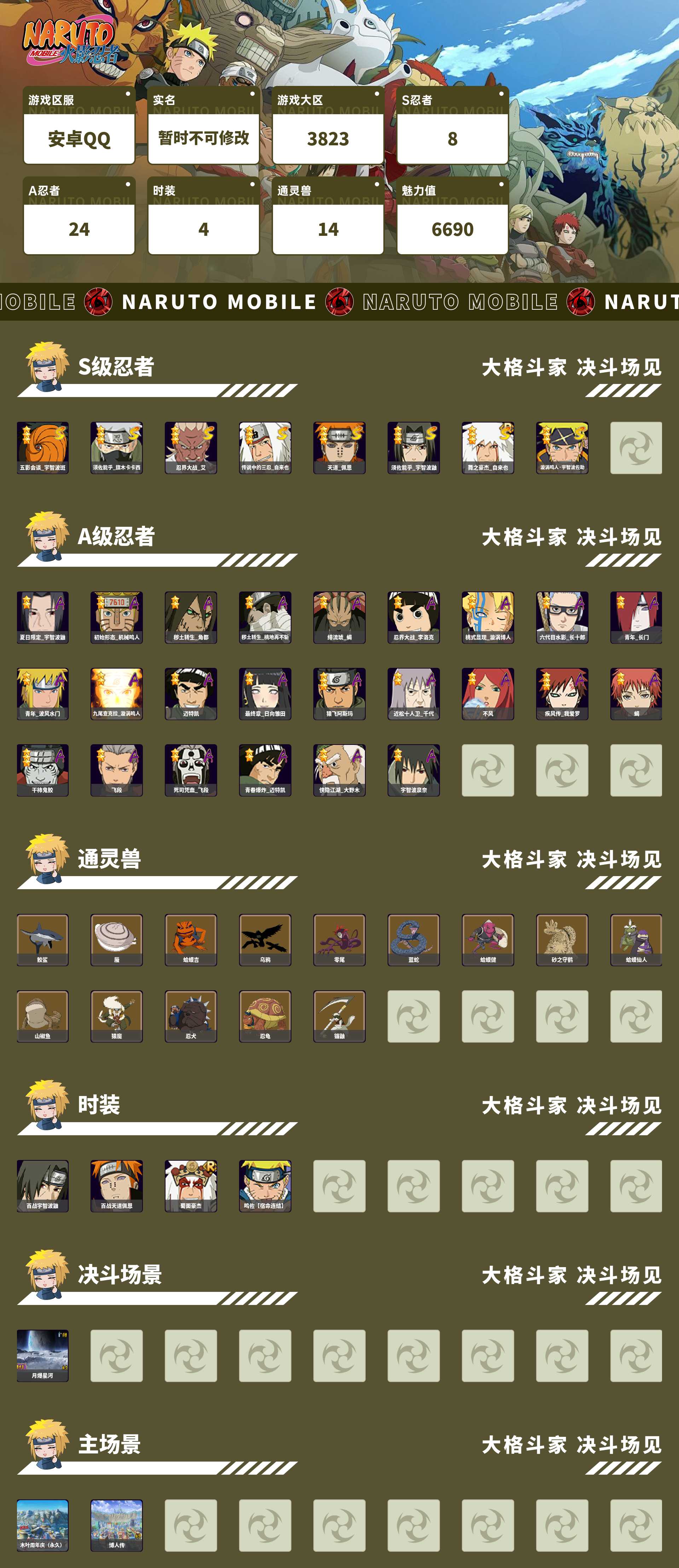 518w战力五影斑+须卡8S+198直购泳装鼬24A+80舍人碎片