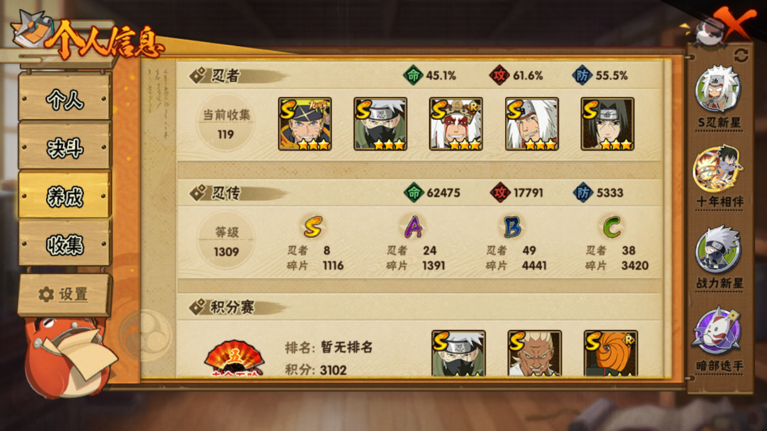 5星S忍者数:
