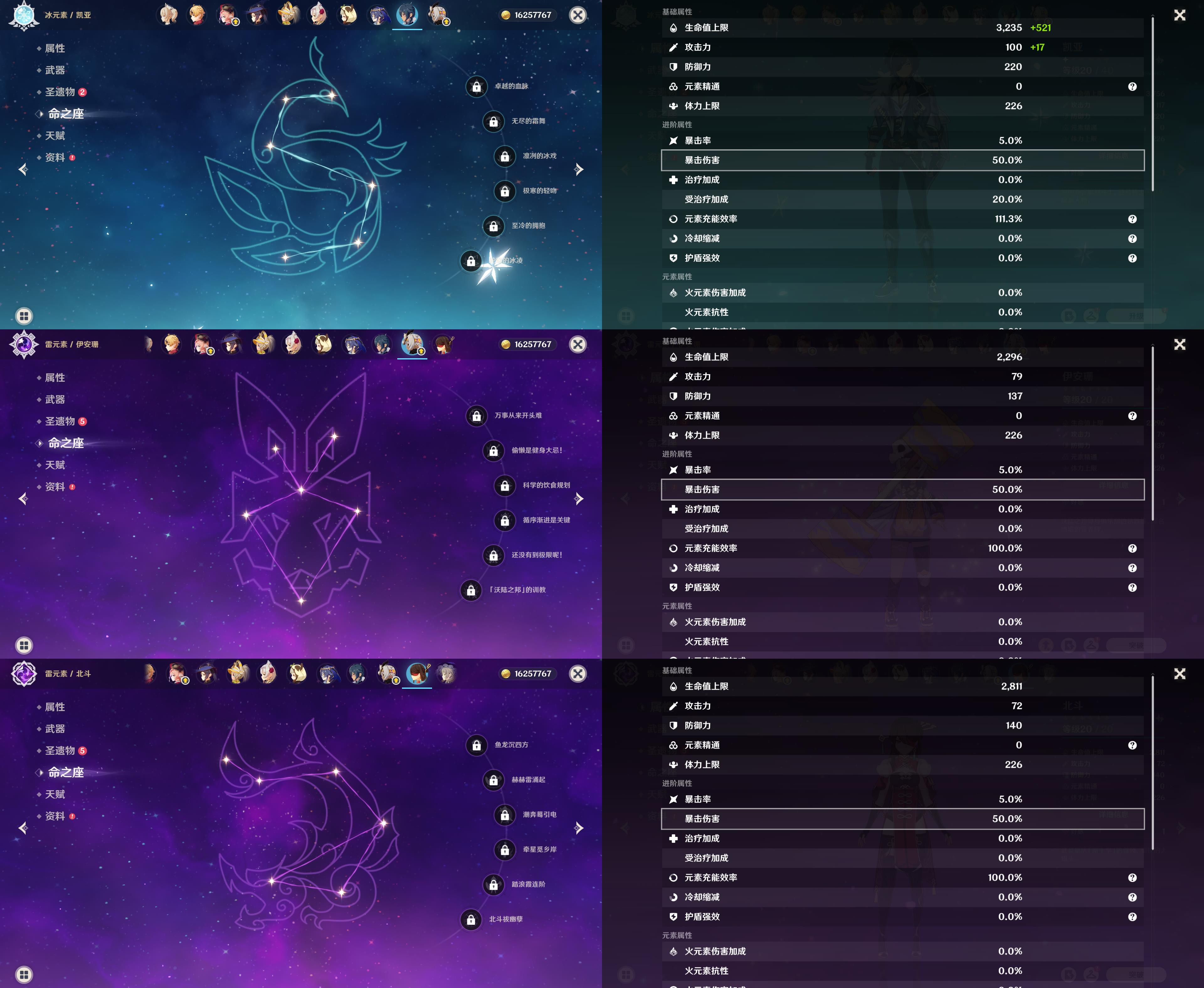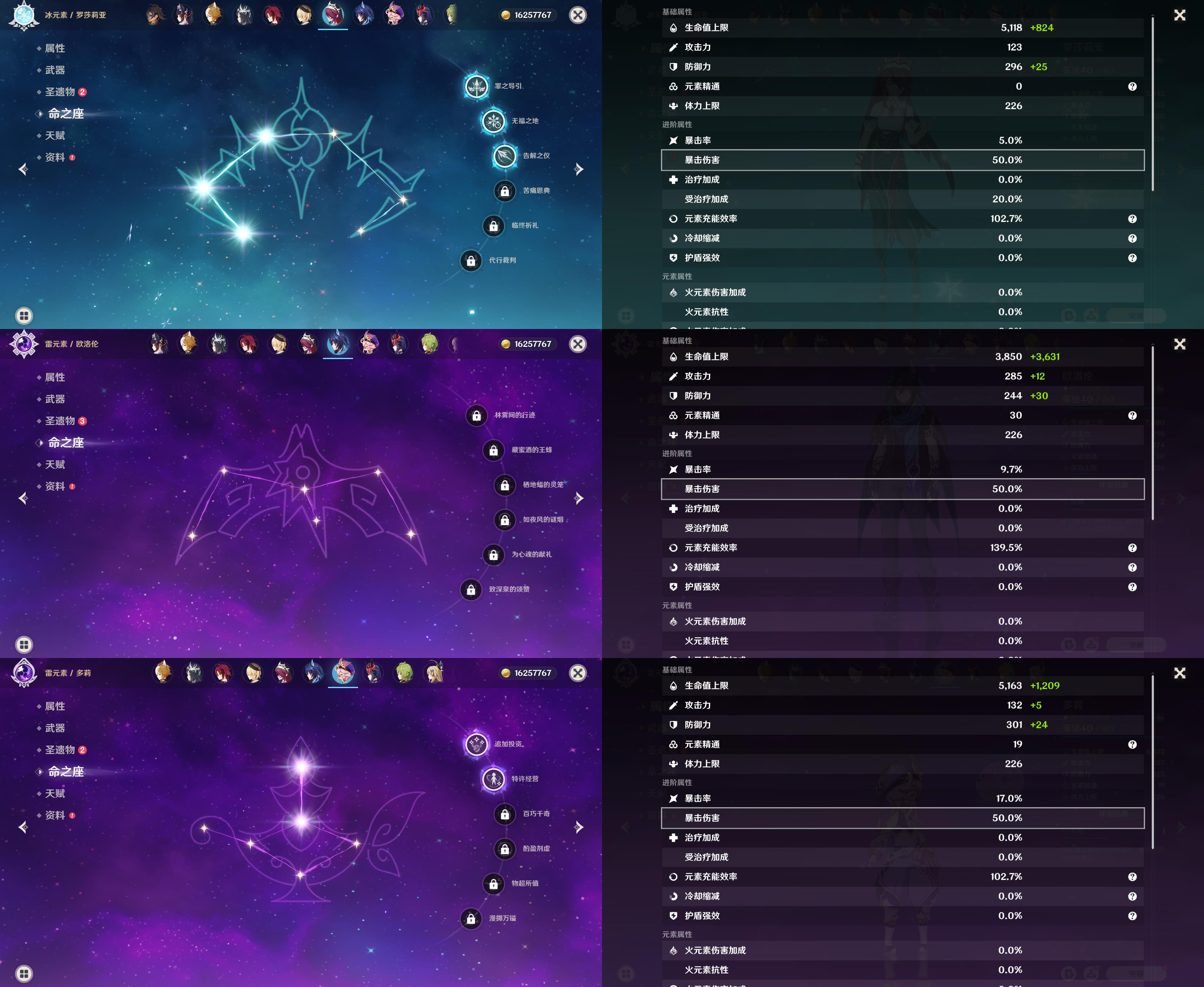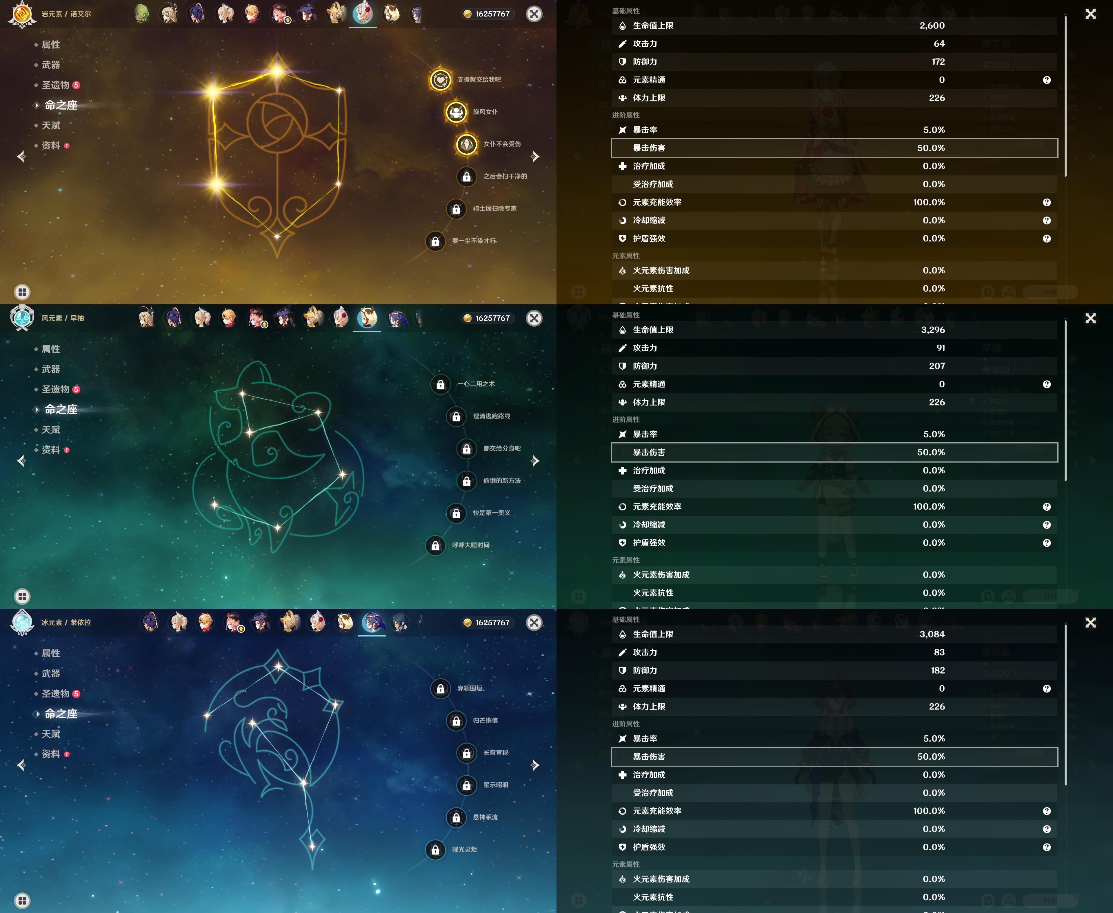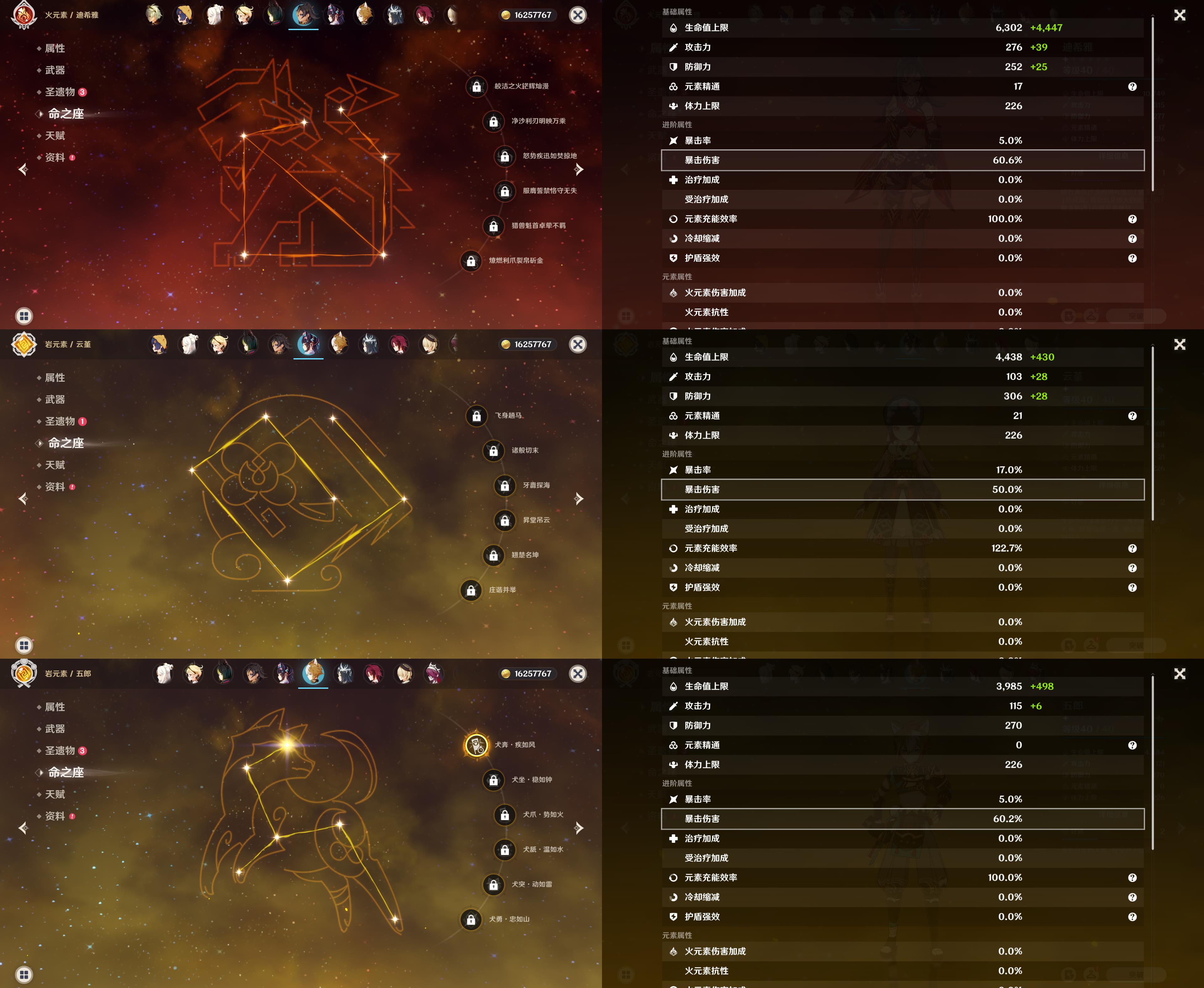 55级/16黄/女主/14个五星角色/