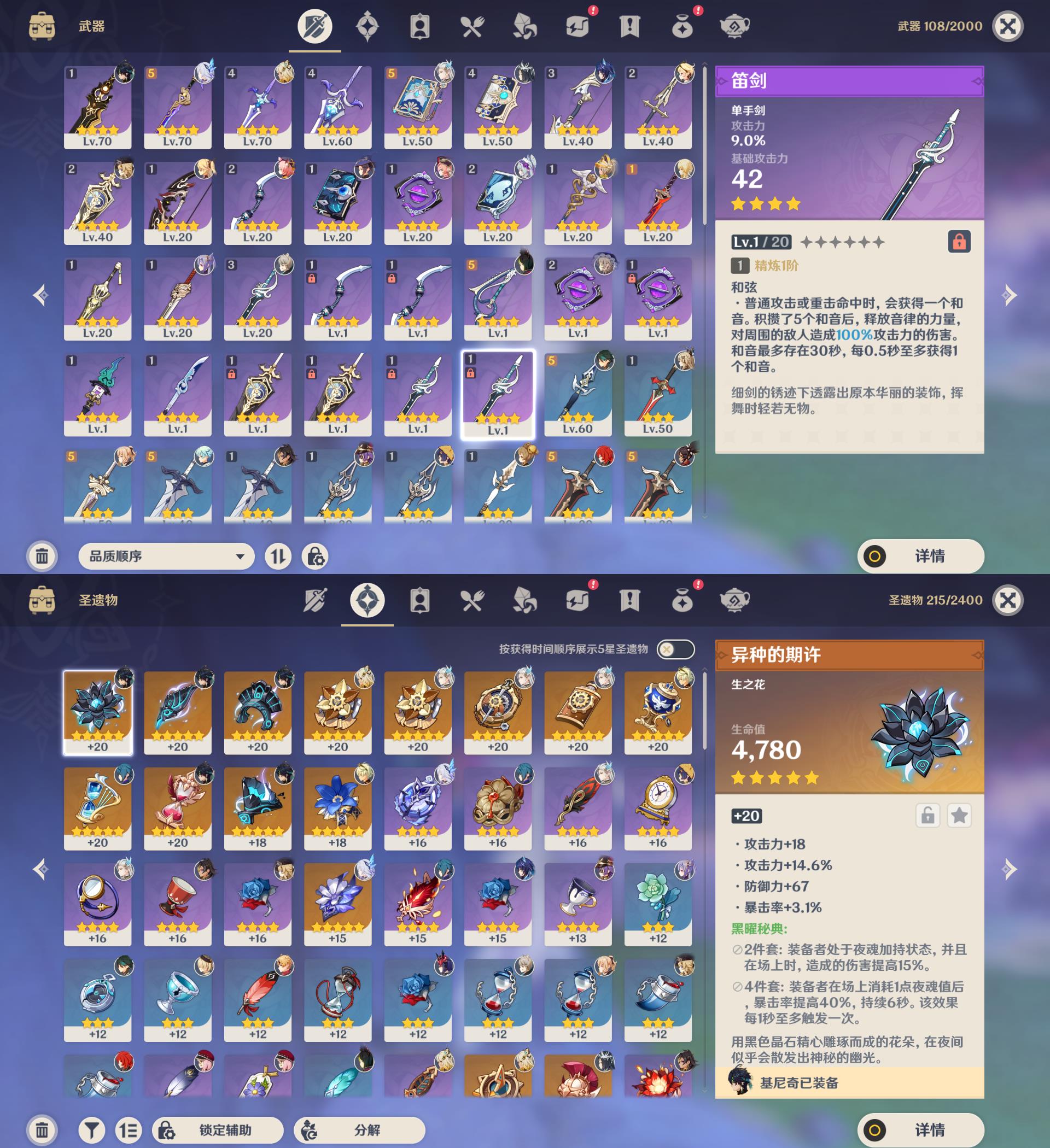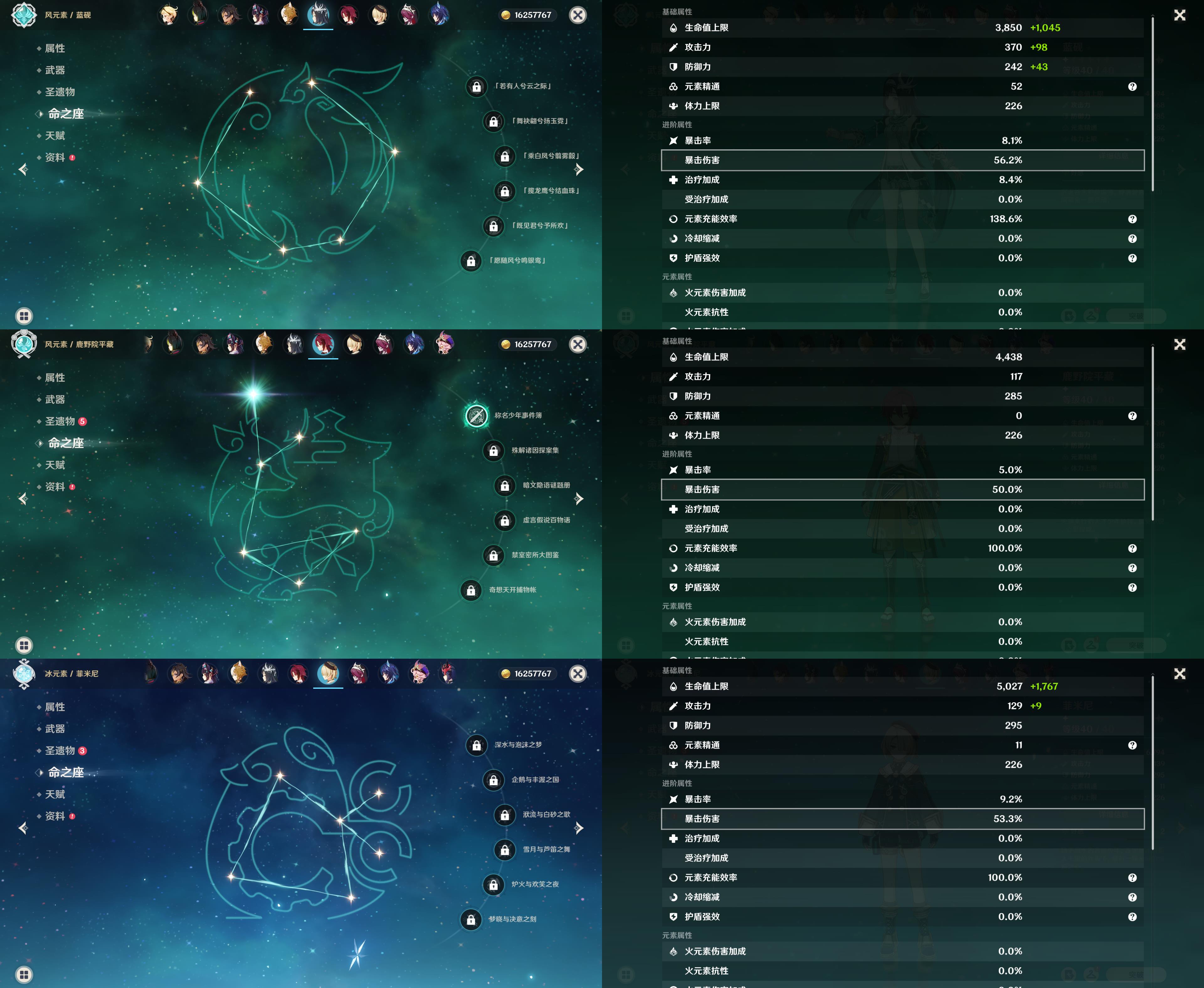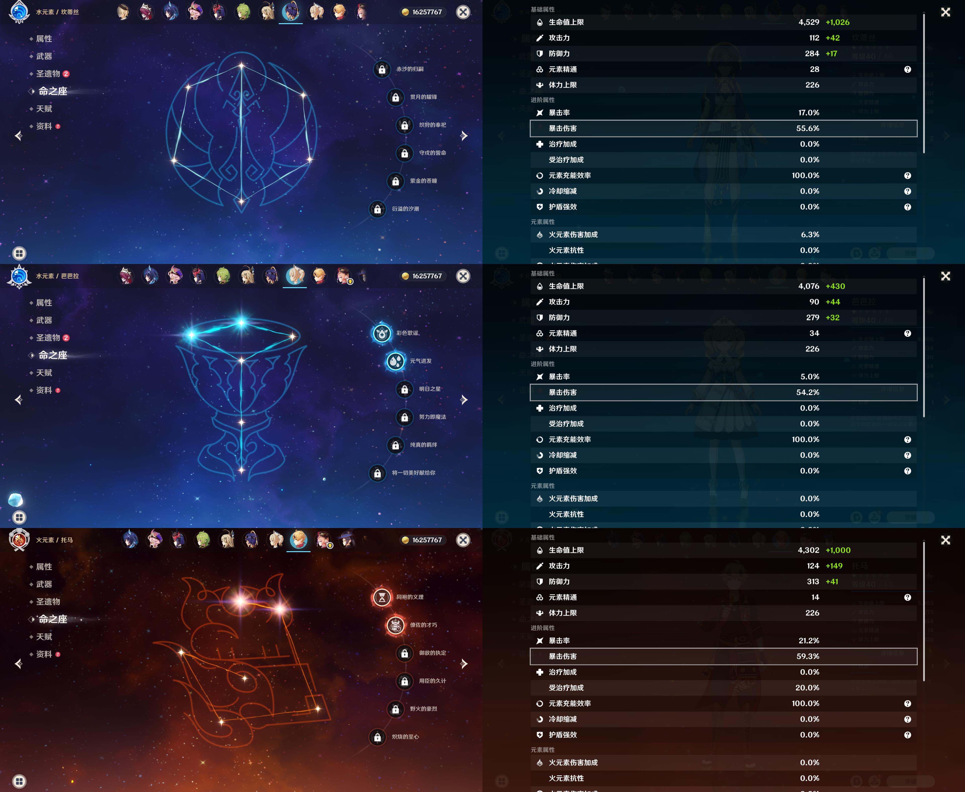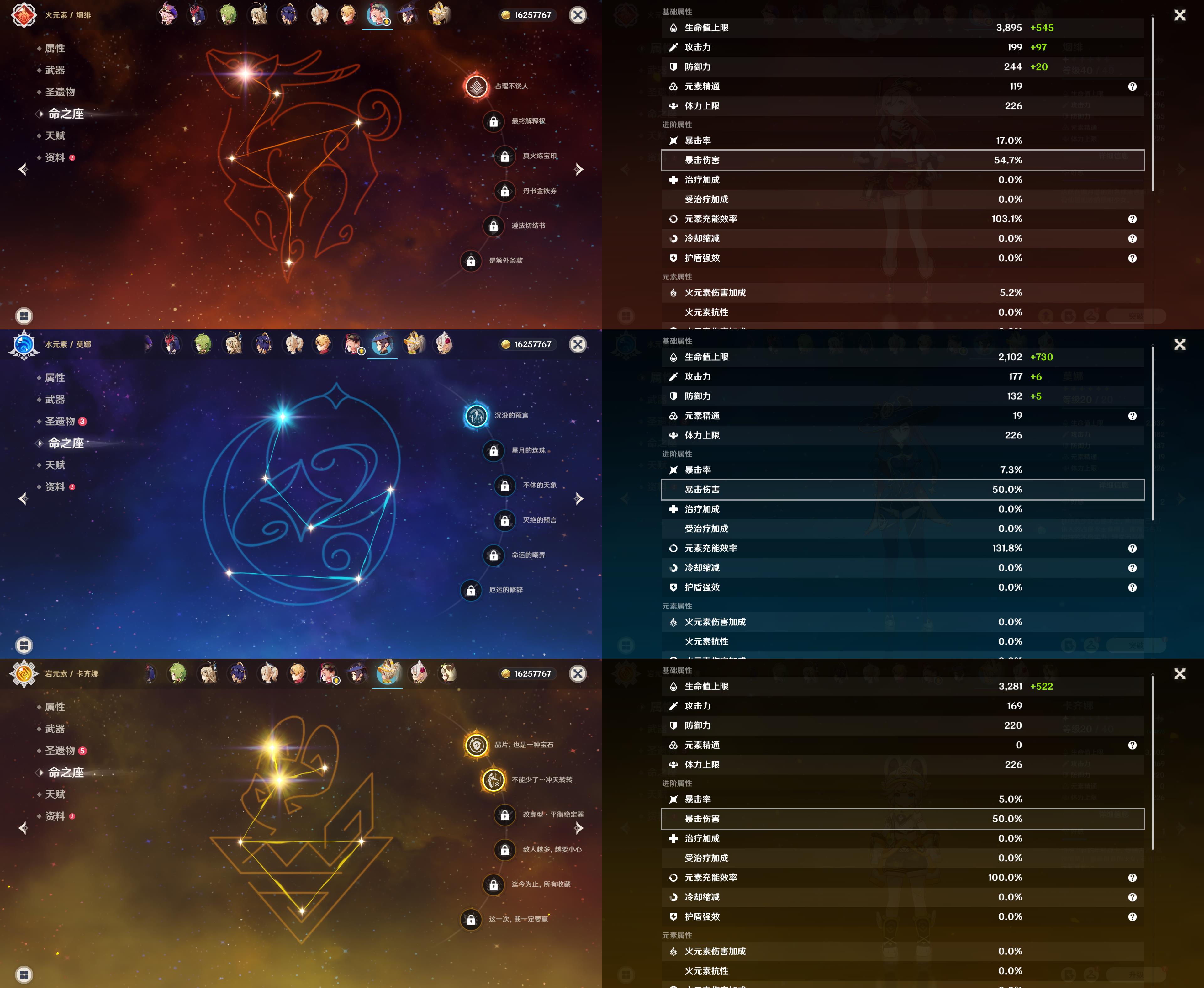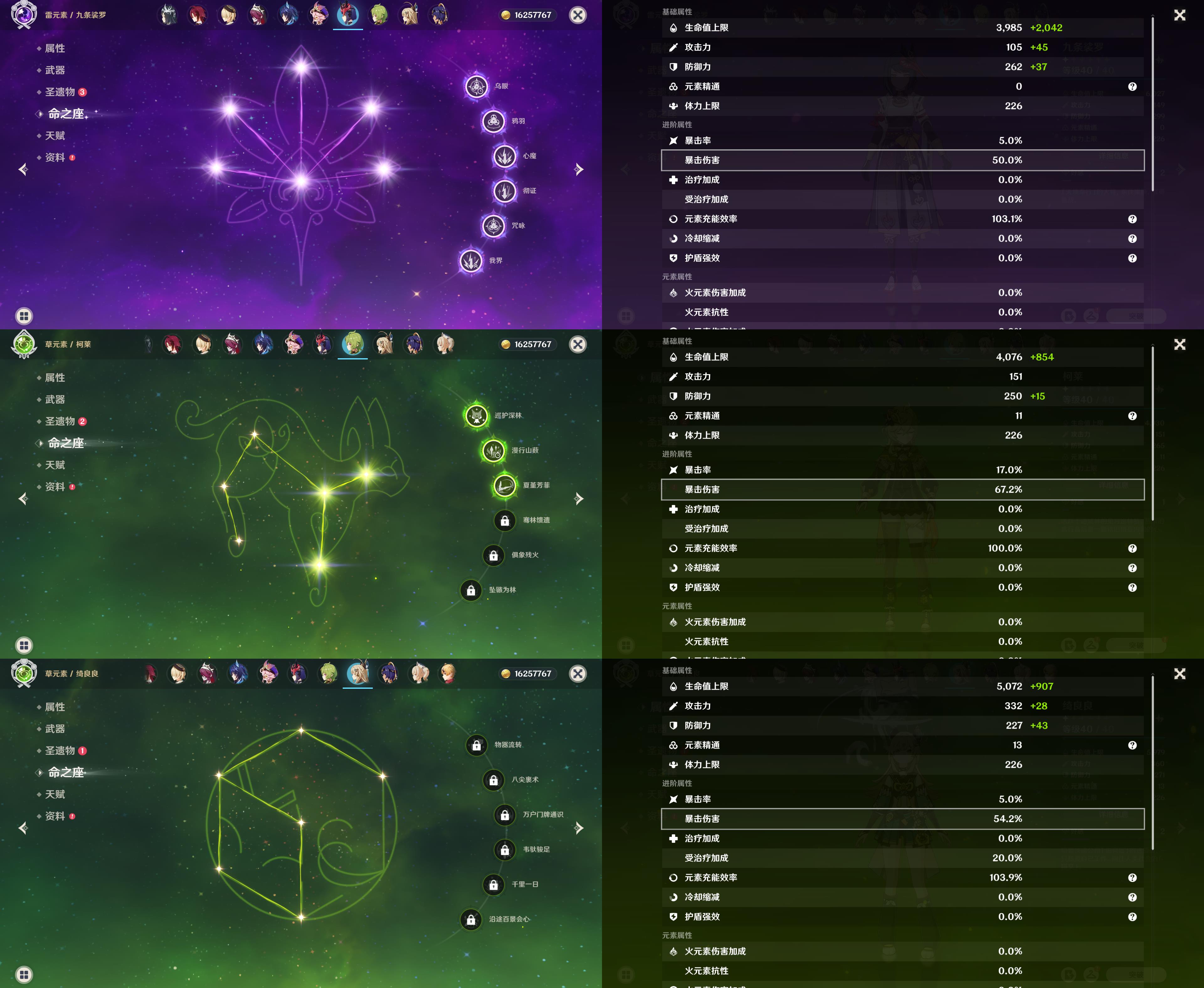 55级/16黄/女主/14个五星角色/