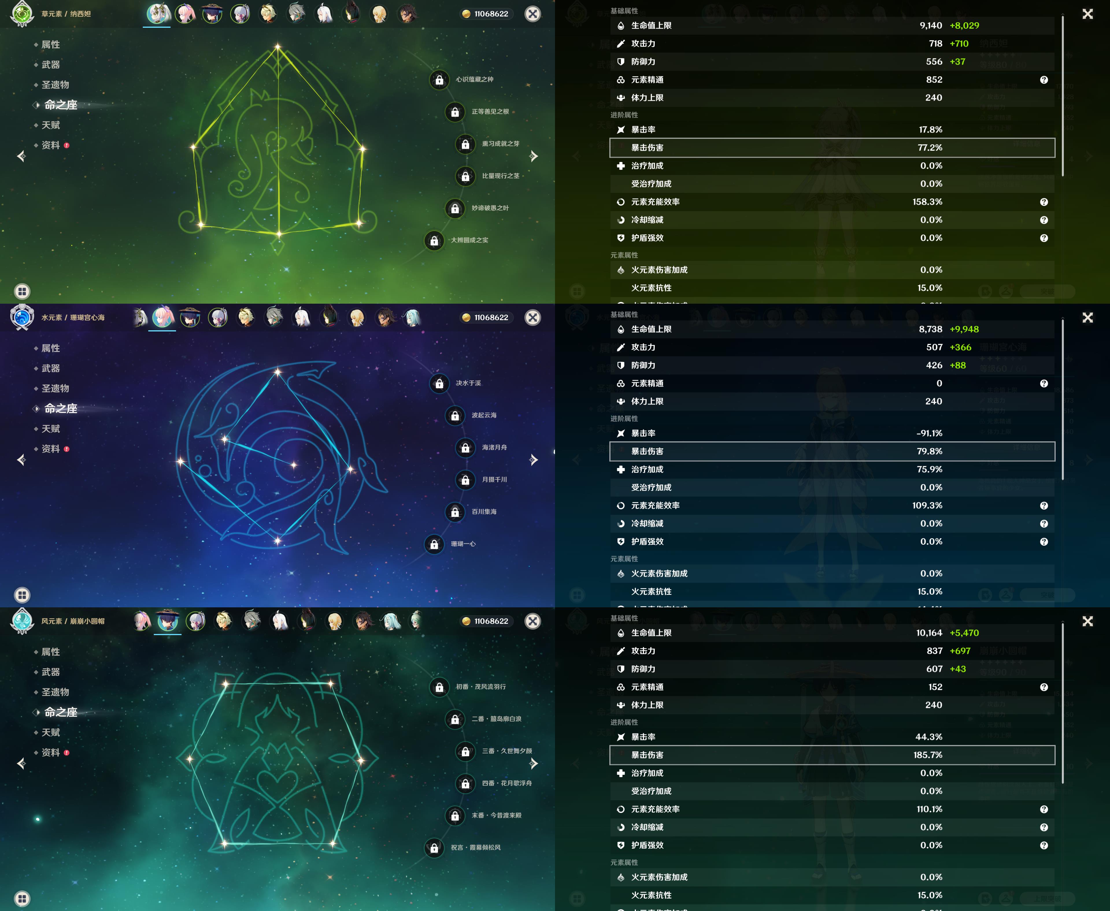 【YS1101】55级/12黄/女主/9个五星角色/2个五星武器/纳西妲/珊瑚宫心海/神里绫华/艾尔海森/申鹤/提纳里/迪希雅/1命莫娜/那维莱特/雾切之回光/风鹰剑