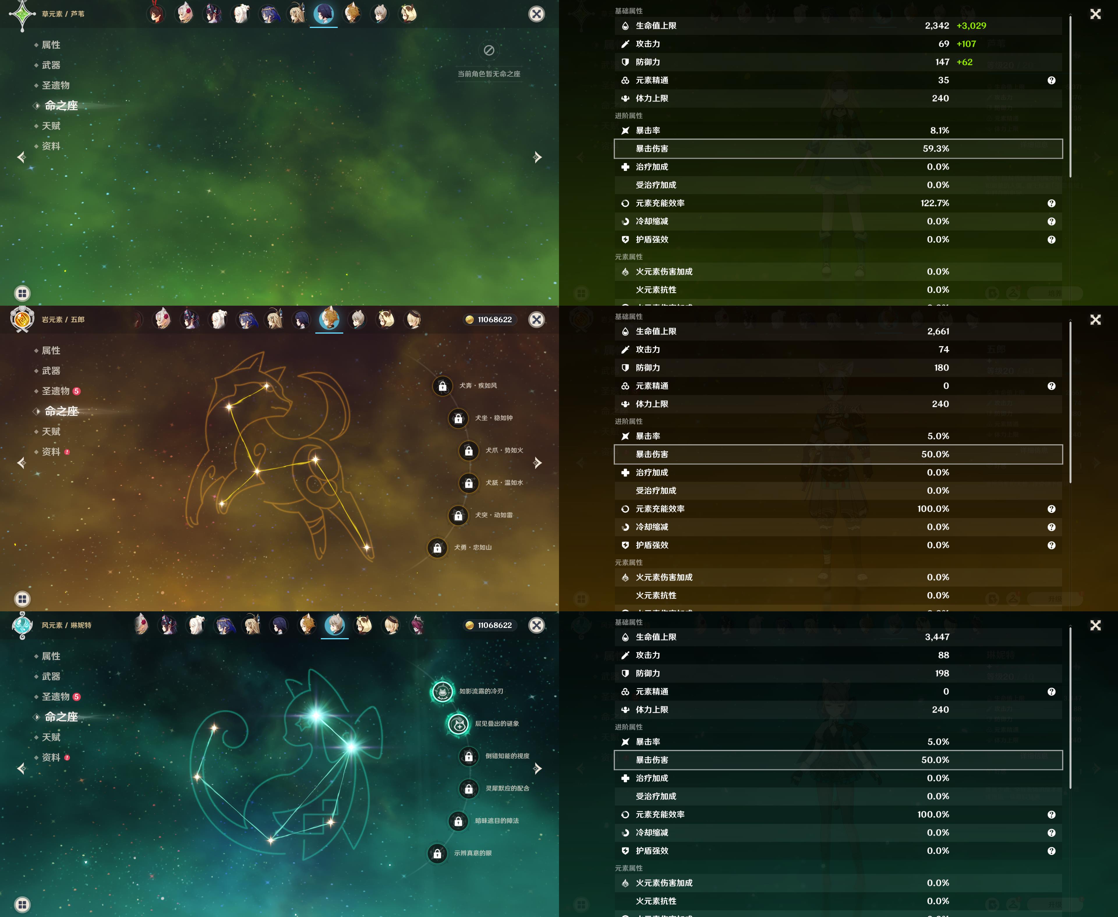 55级/12黄/女主/9个五星角色/2个五星武器/
