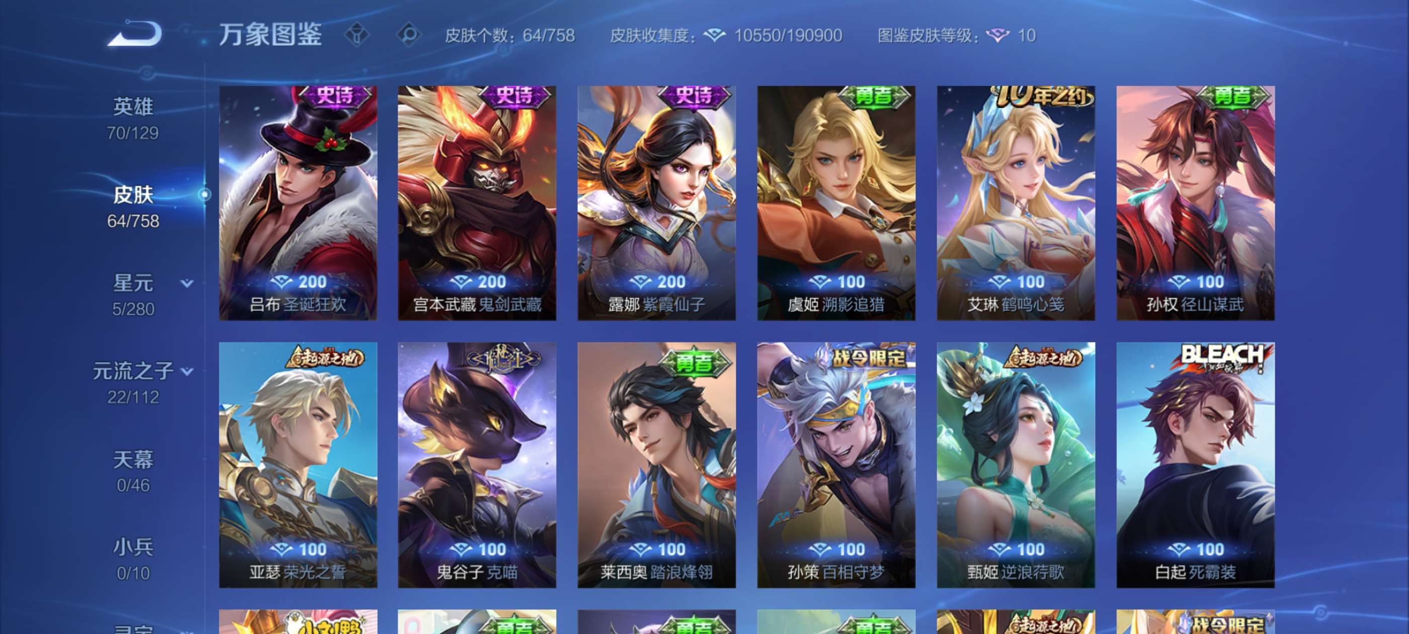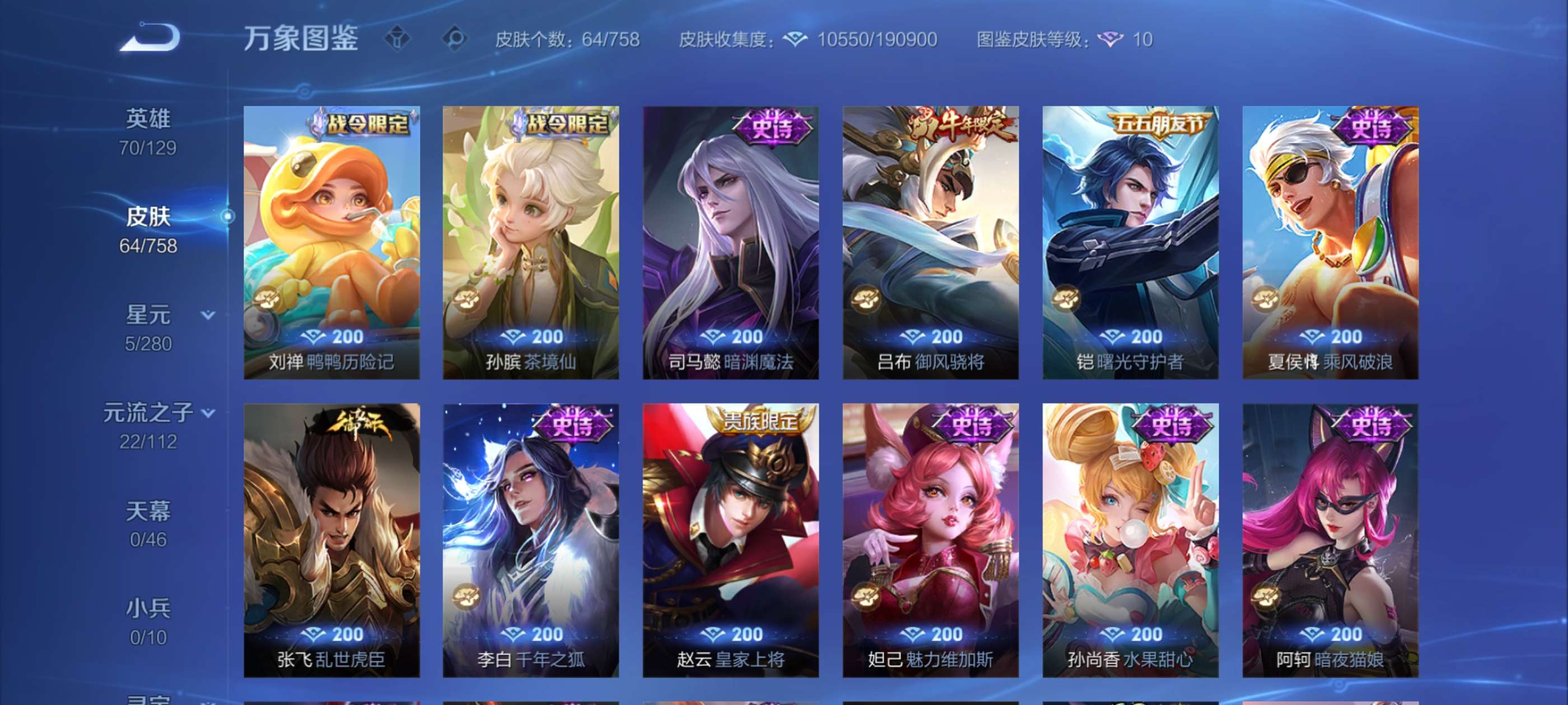奉先加皮,王迹,一套王者雷,仲康,盖,仲达45片有烽火连城皮,还有无双枪线,还有一个王者号有无双