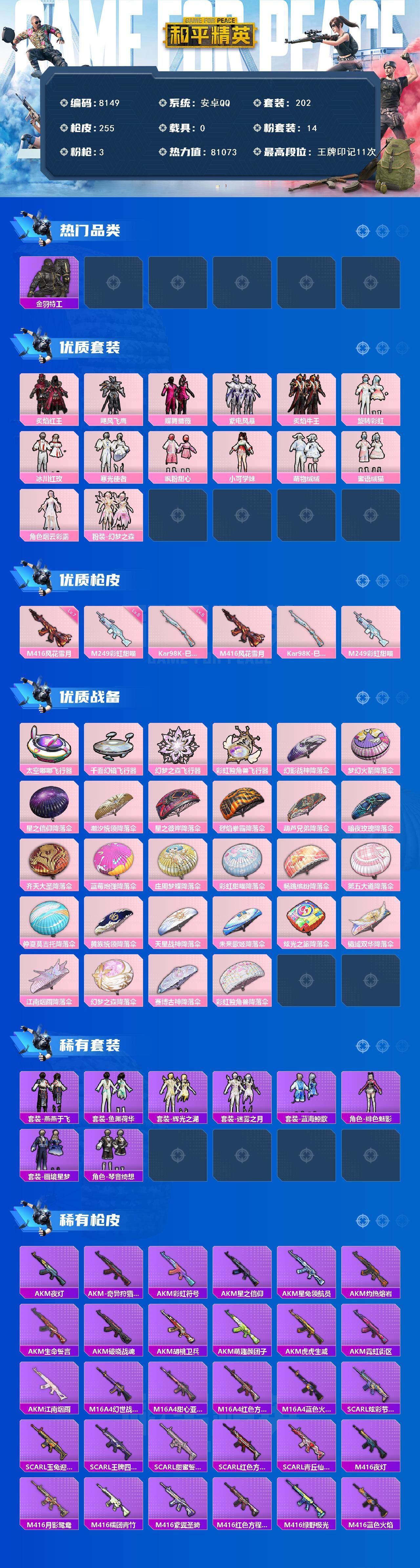 【8149】14粉装-3特效枪-0载具-4粉色飞行器-81073热力值-11王牌印记-202套装-255枪皮