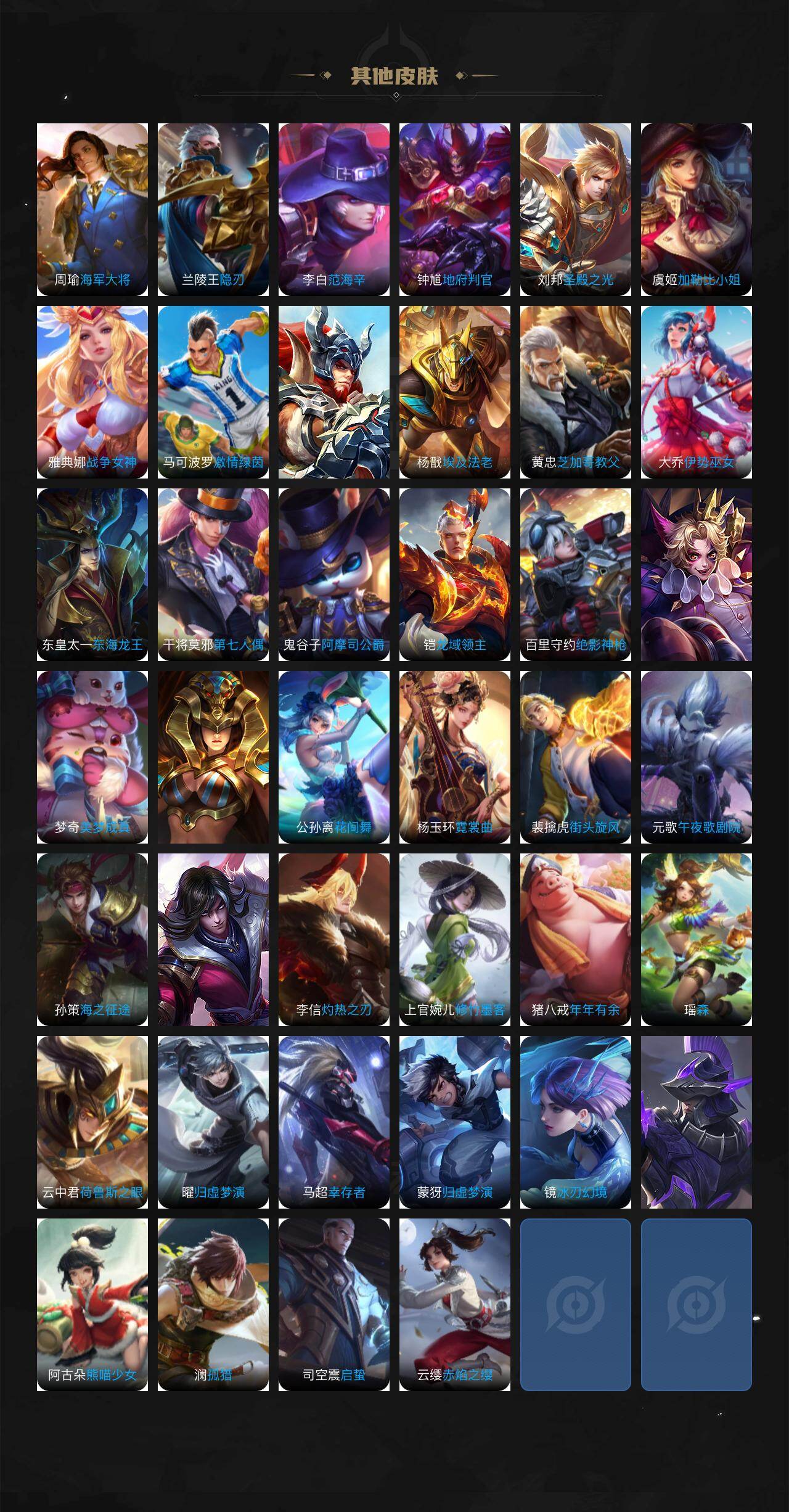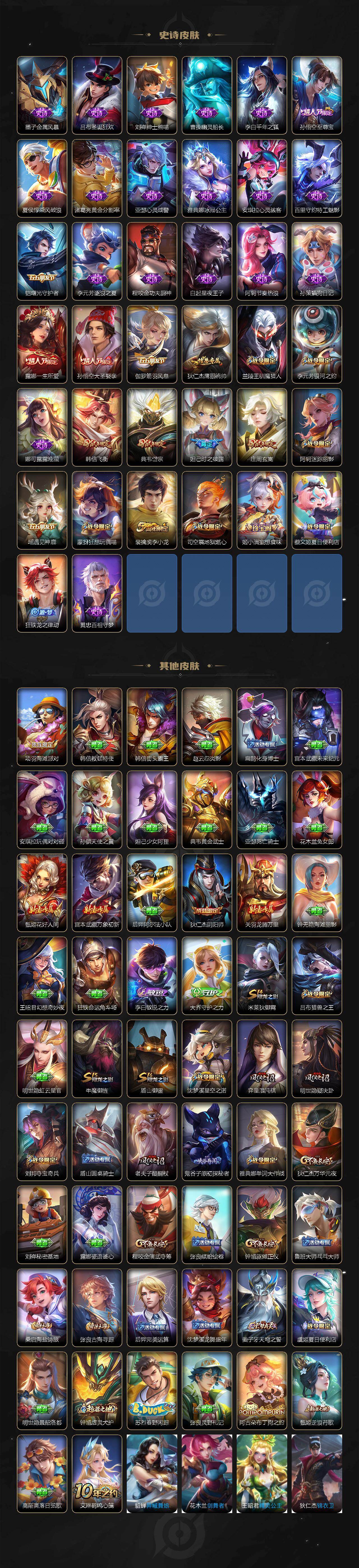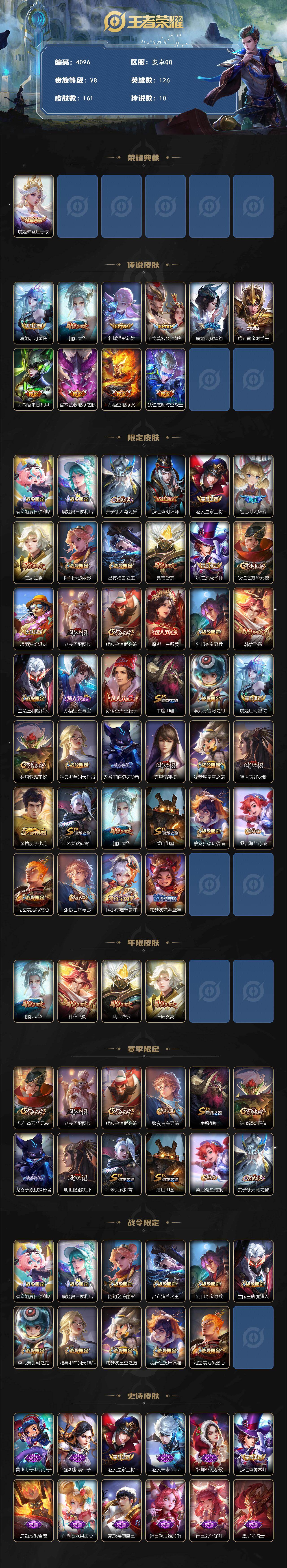 安卓Q-V3-荣耀黄金II段位-126英雄-161皮肤-1典藏皮肤-10传说-50史诗