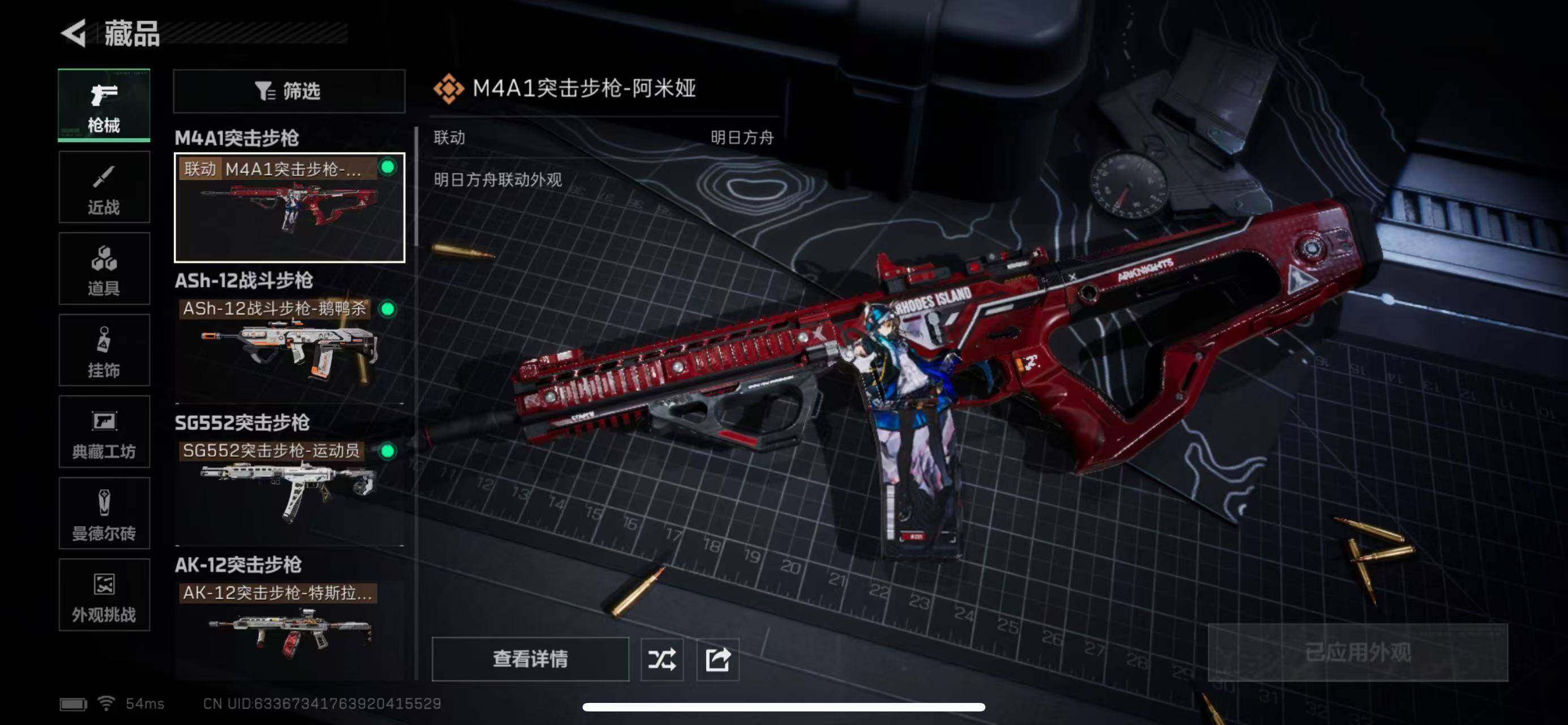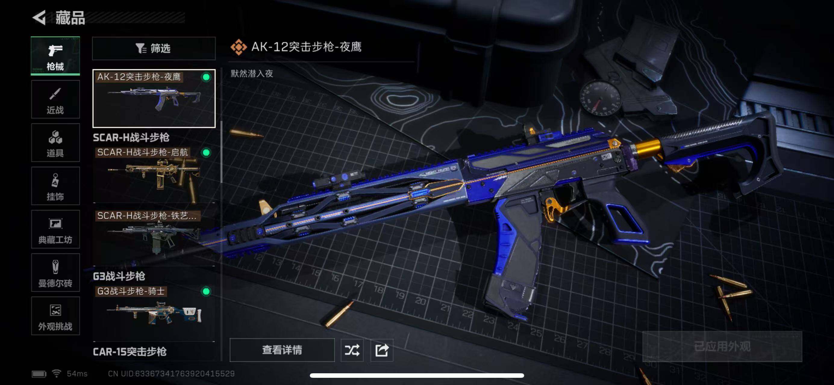 【传说外观】:M4A1突击步枪-阿米娅,ASh-12战斗步枪-鹅鸭杀,SG552突击步枪-运动员,AK-12突击步枪-夜鹰,AK-12突击步枪-特斯拉线圈,SCAR-H战斗步枪-铁艺苍穹,SCAR-H战斗步枪-启航,G3战斗