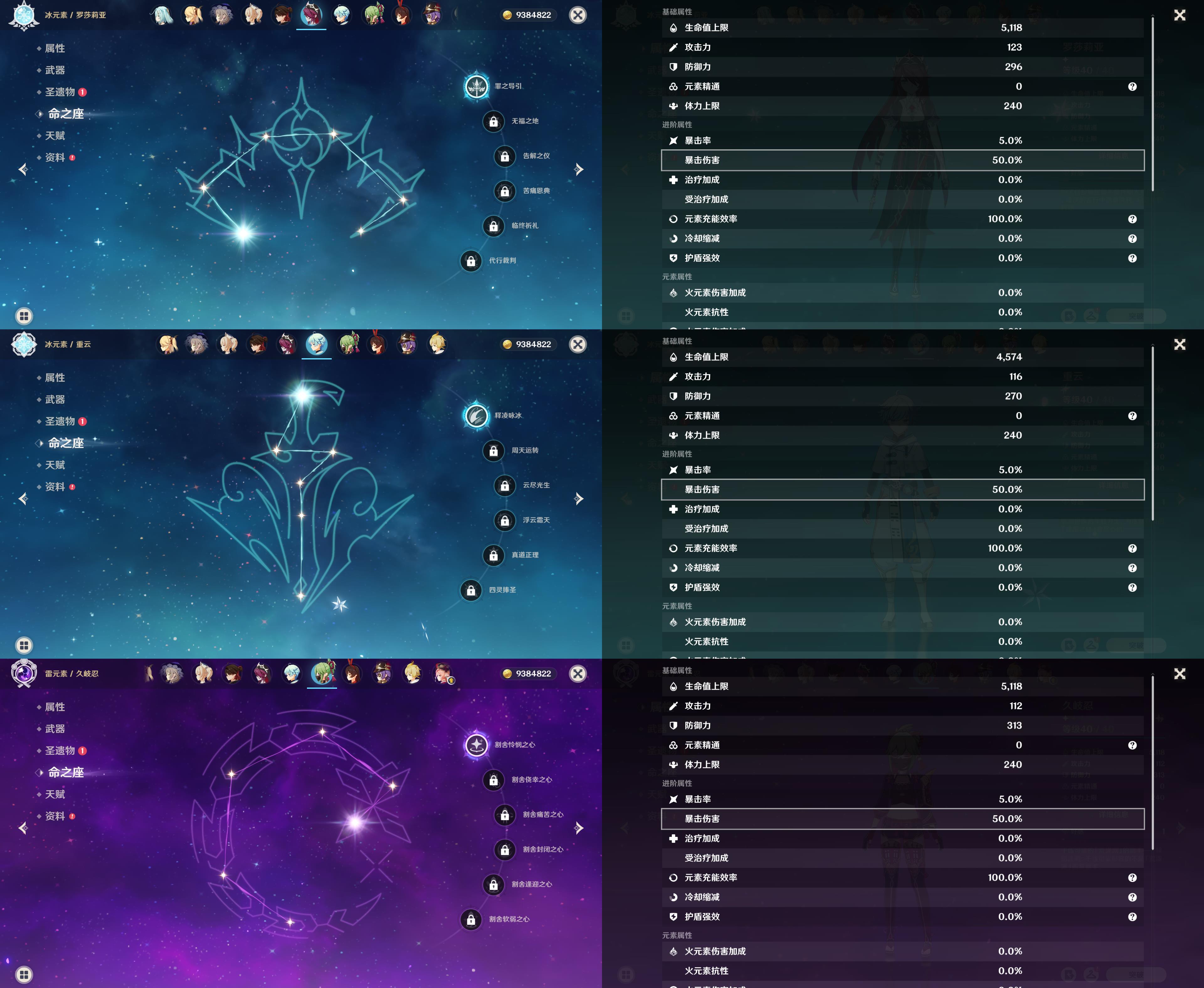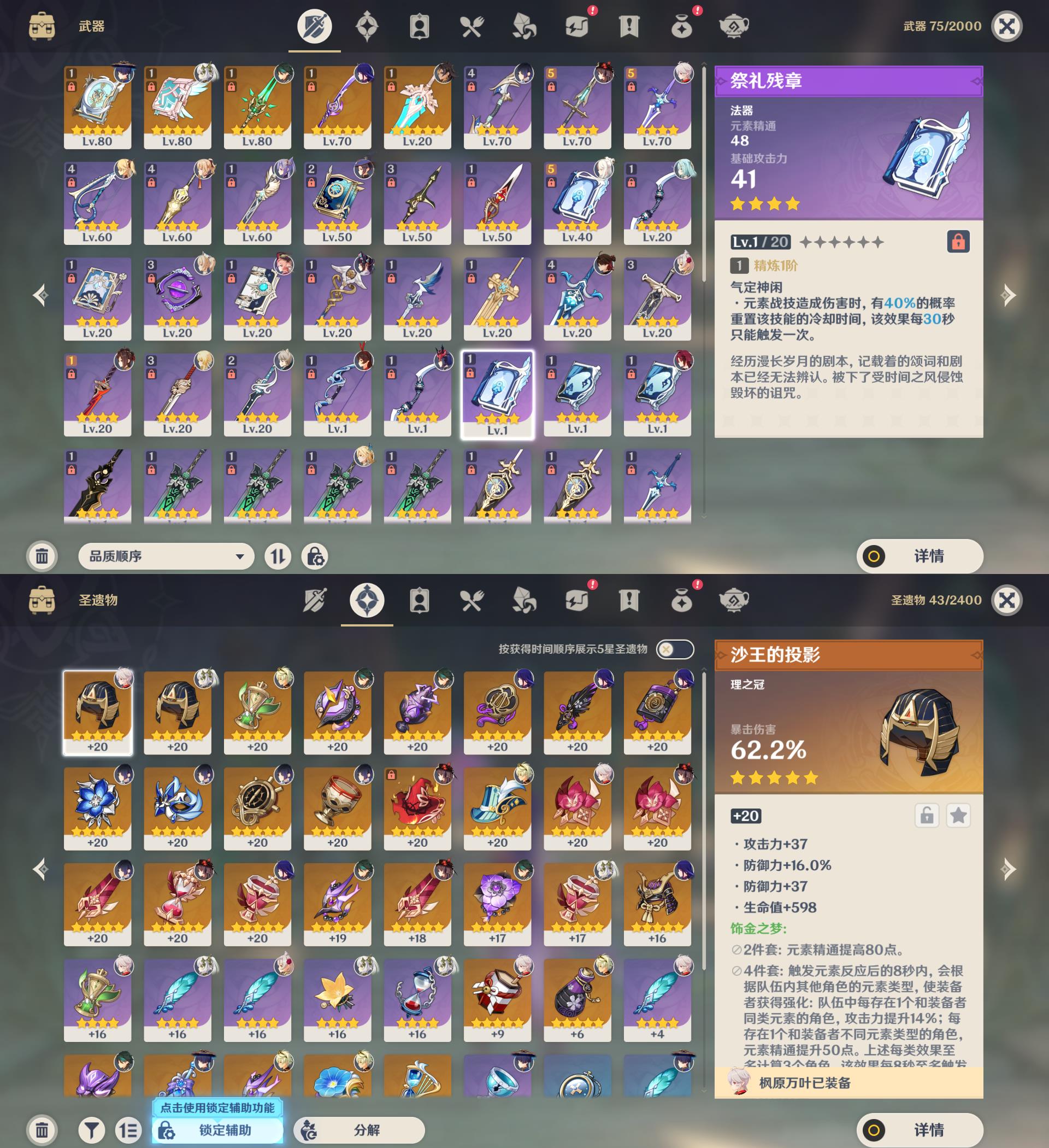 55级/18黄/女主/12个五星角色/5个五星武器/