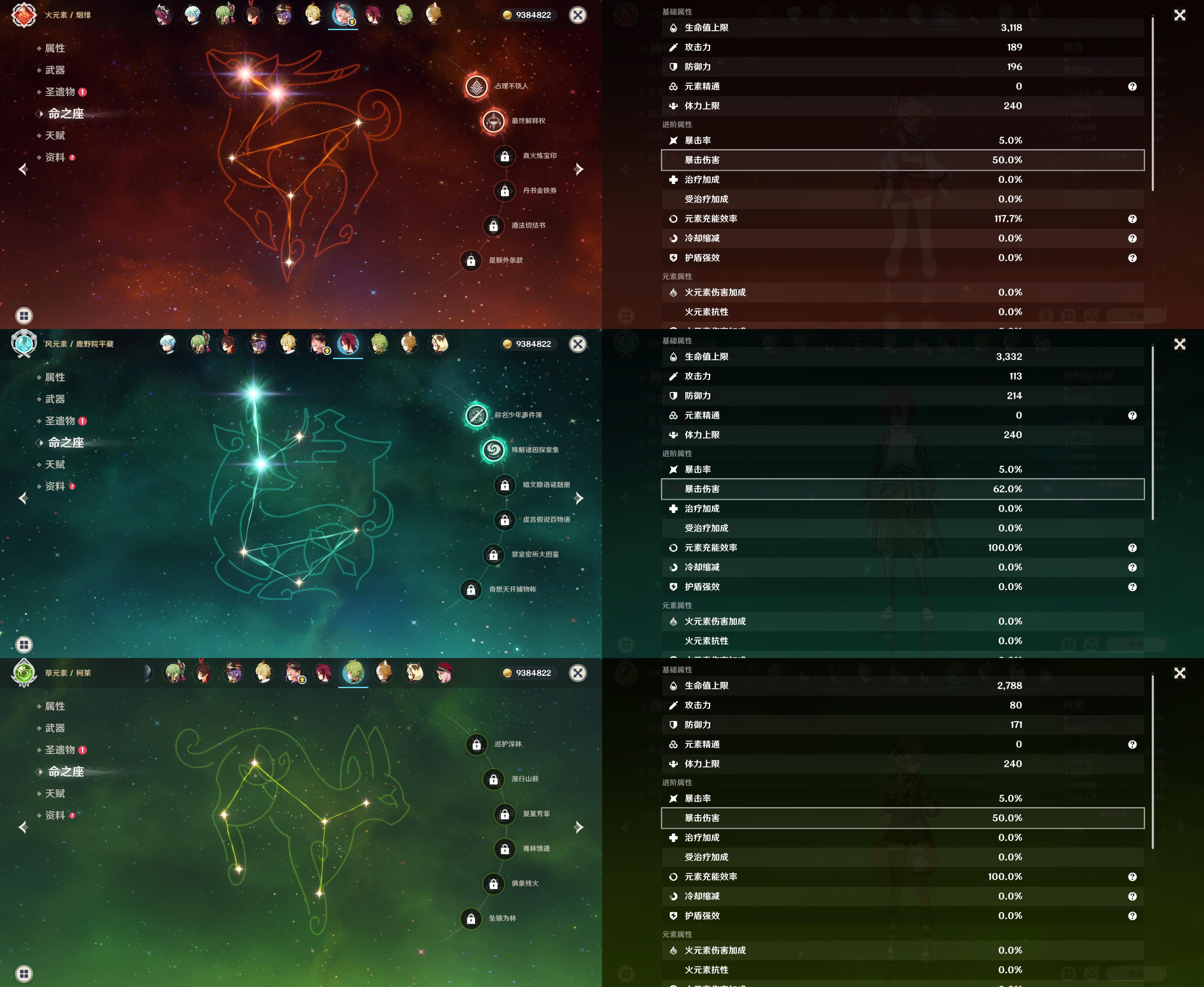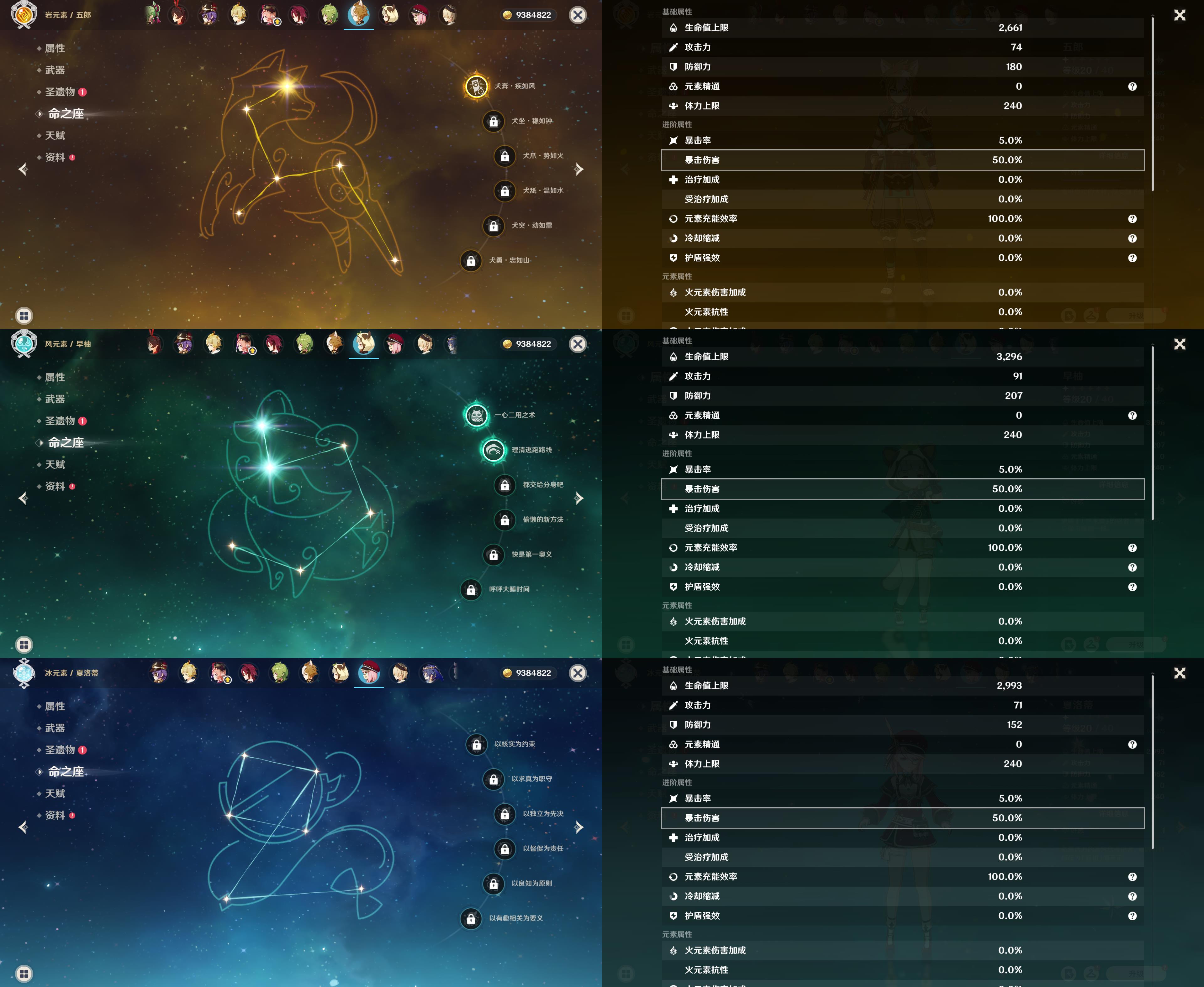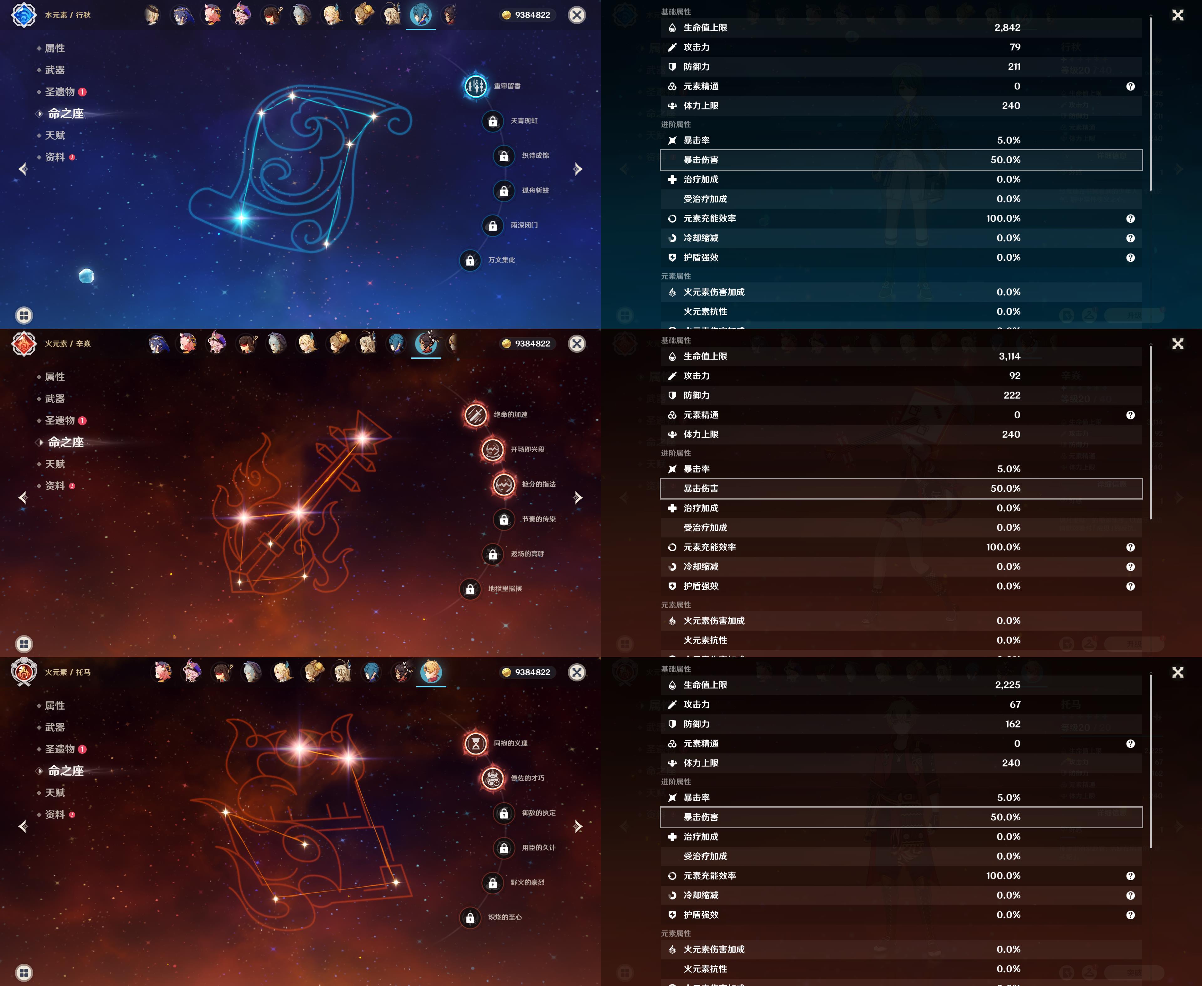 五星角色: